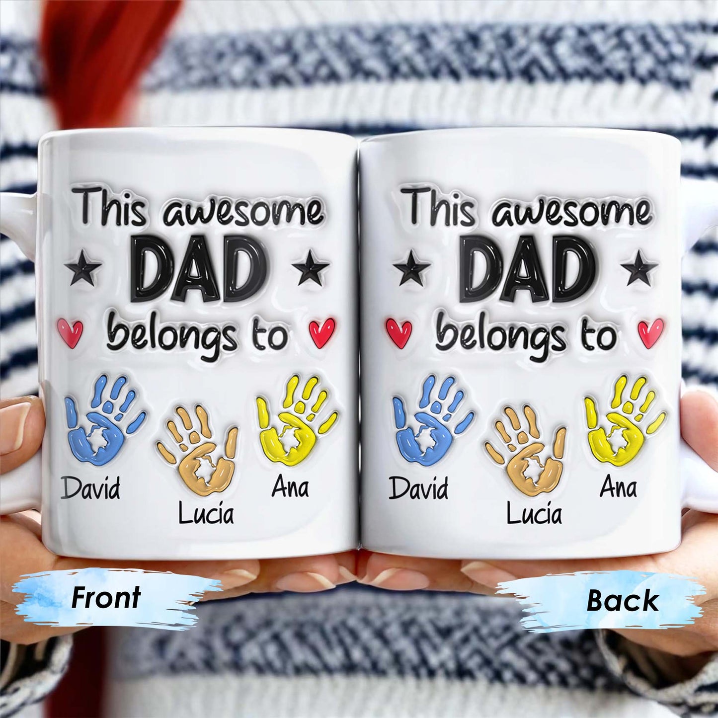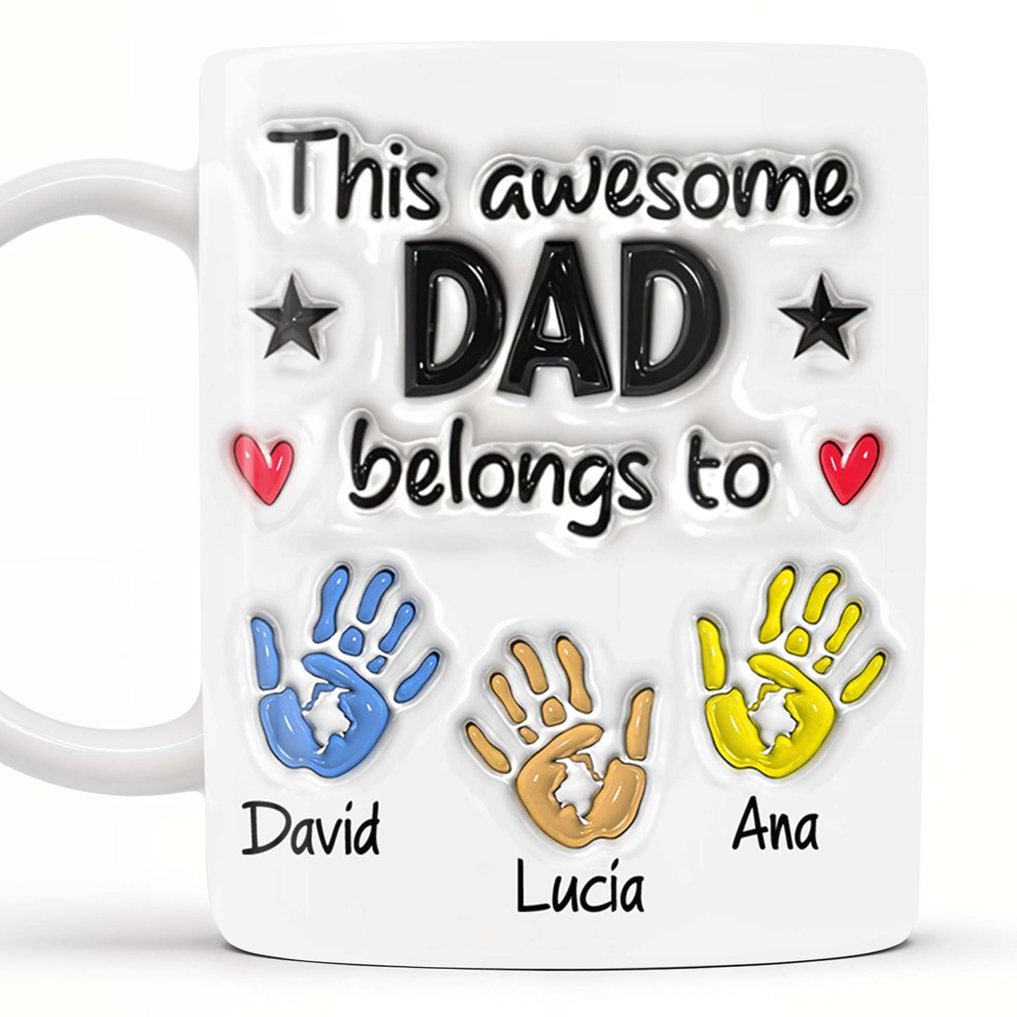 This Awesome Dad Belongs To, Hands, Heart and Star, Personalized Custom Coffee Mug, Gift For Dads