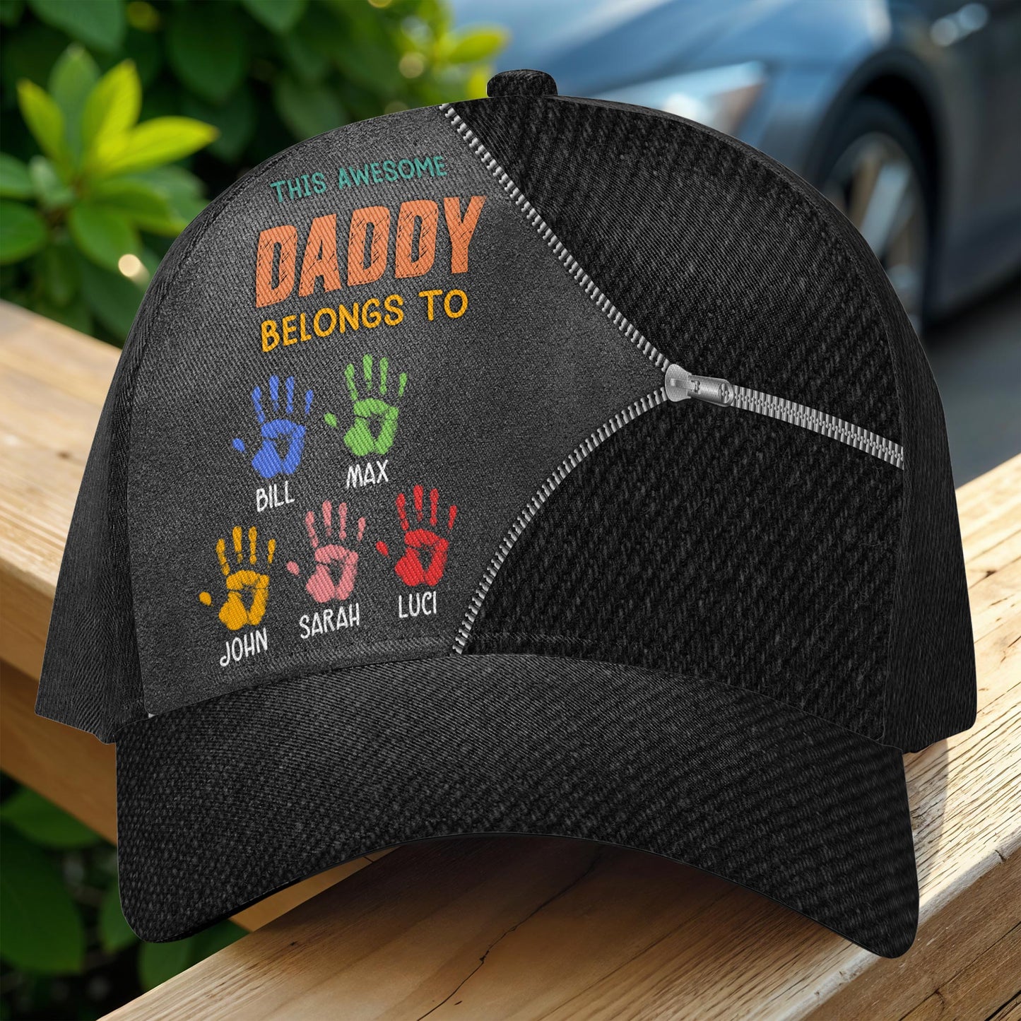 This Awesome Daddy Belongs To, Colored Handprints, Personalized Classic Cap, Gift For Dad