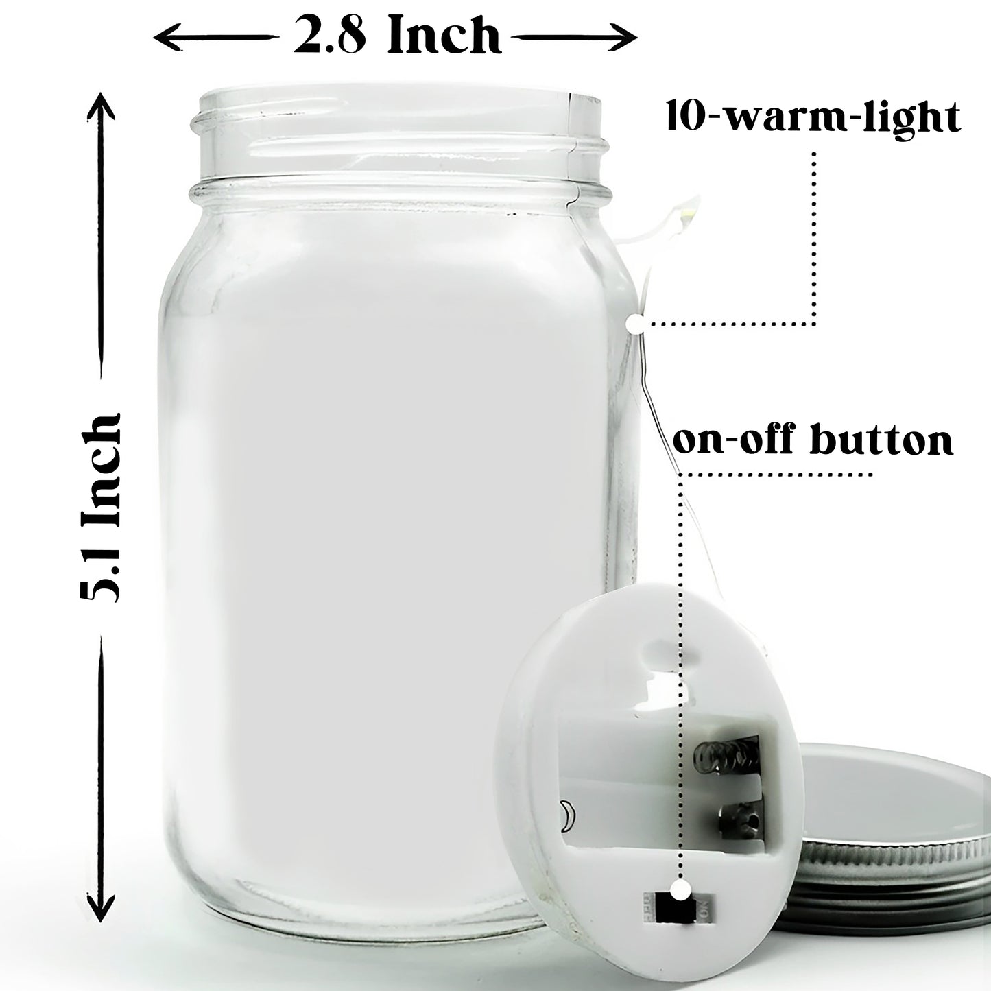 • Package: 1 mason jar, 1 light string (batteries not included), 1 special paper for starlight effect.