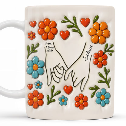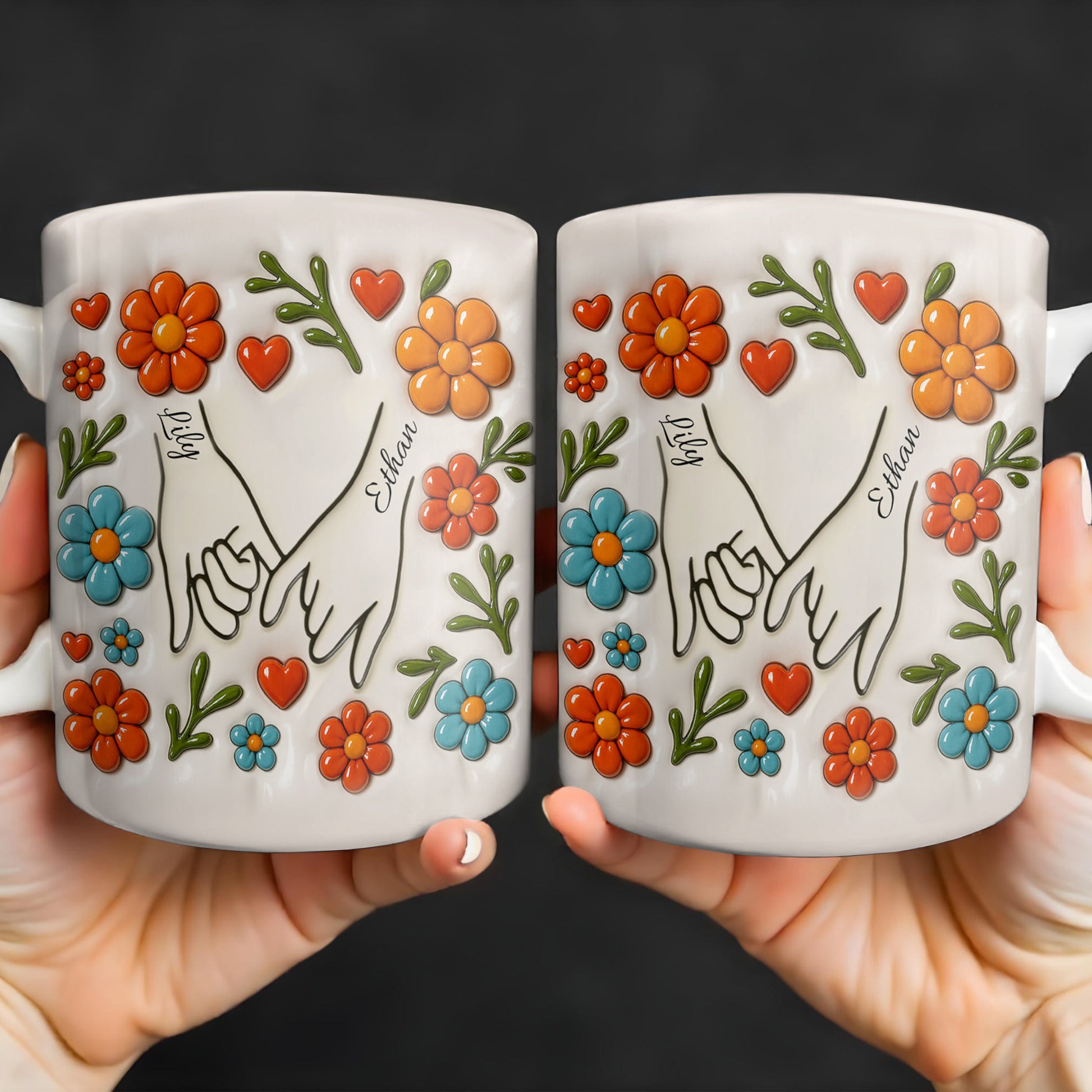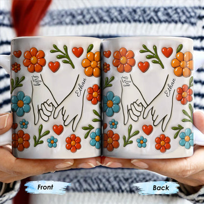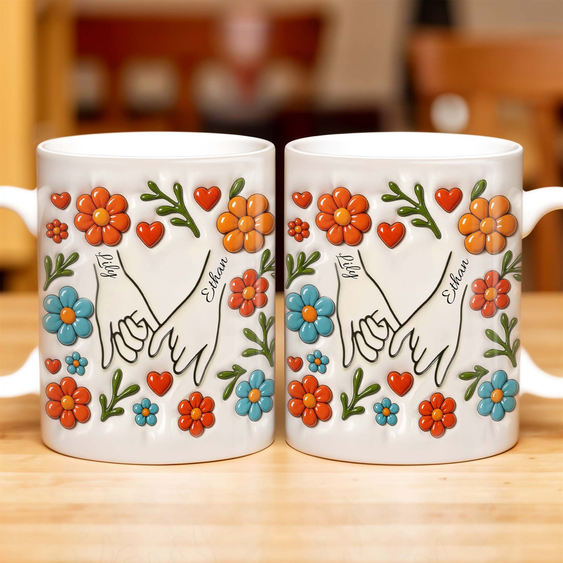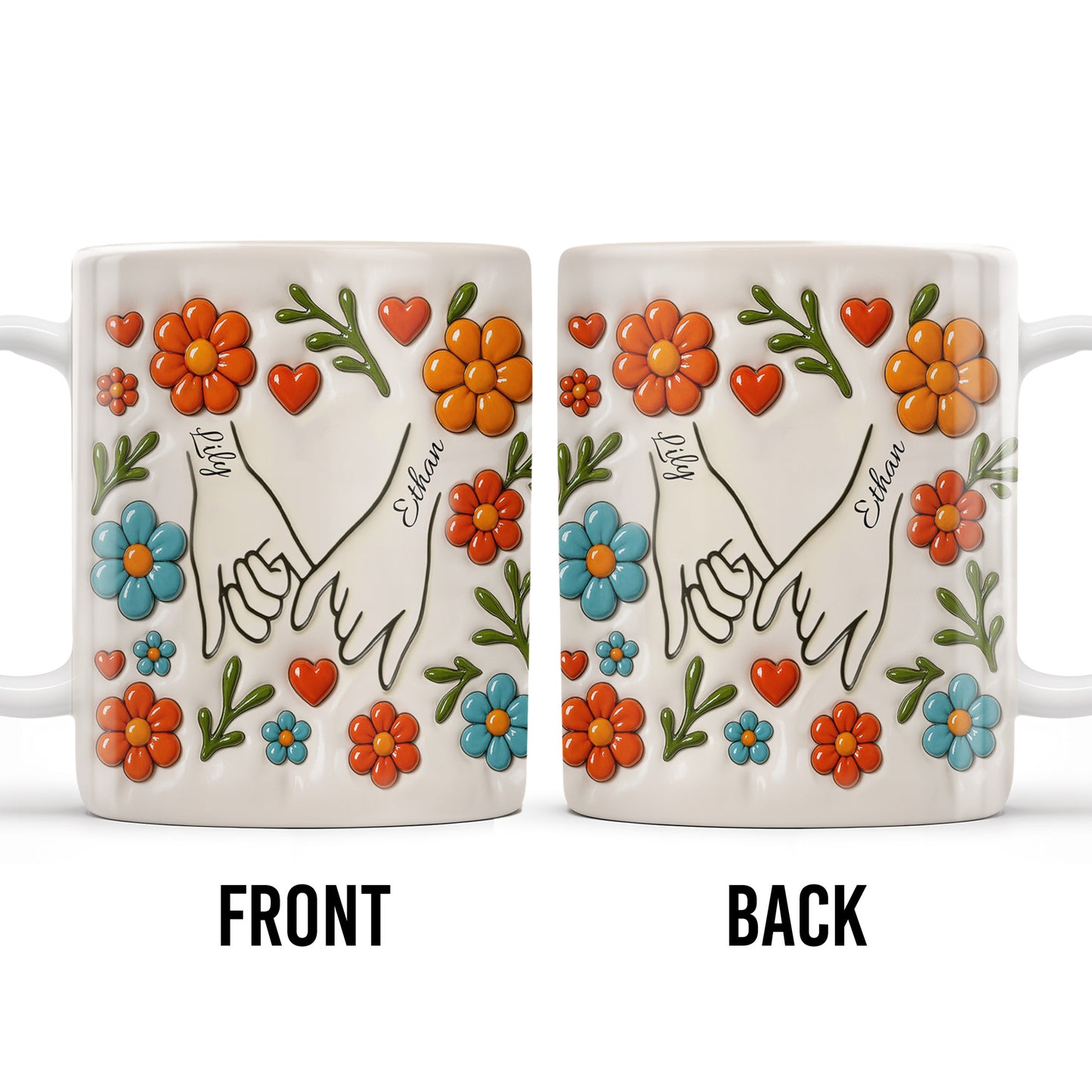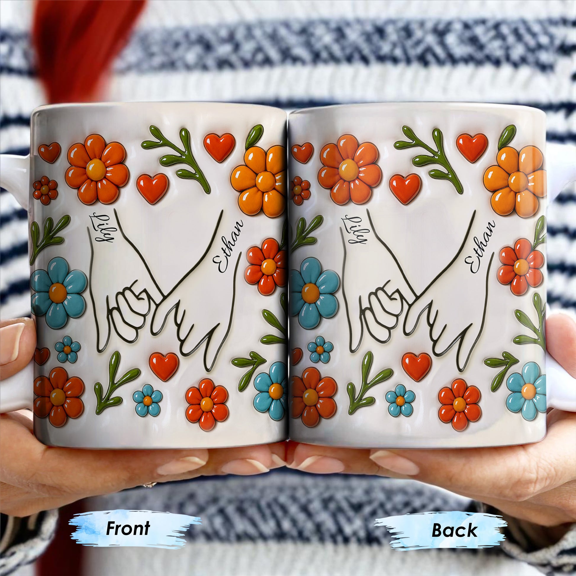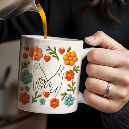 To Mom, Love Grows Here, Hands, Heart and Flowers - Personalized Custom Coffee Mug - CPL377_MG