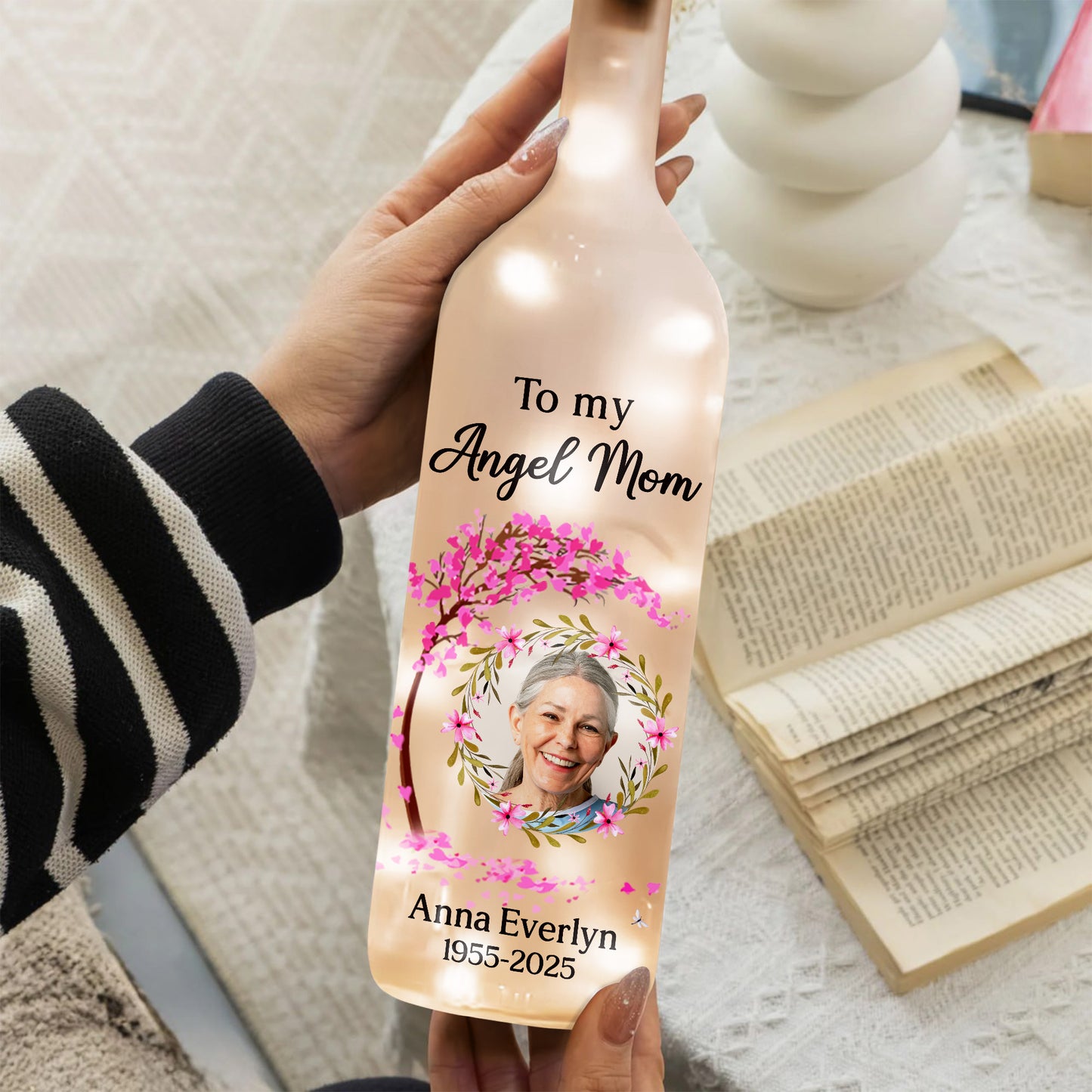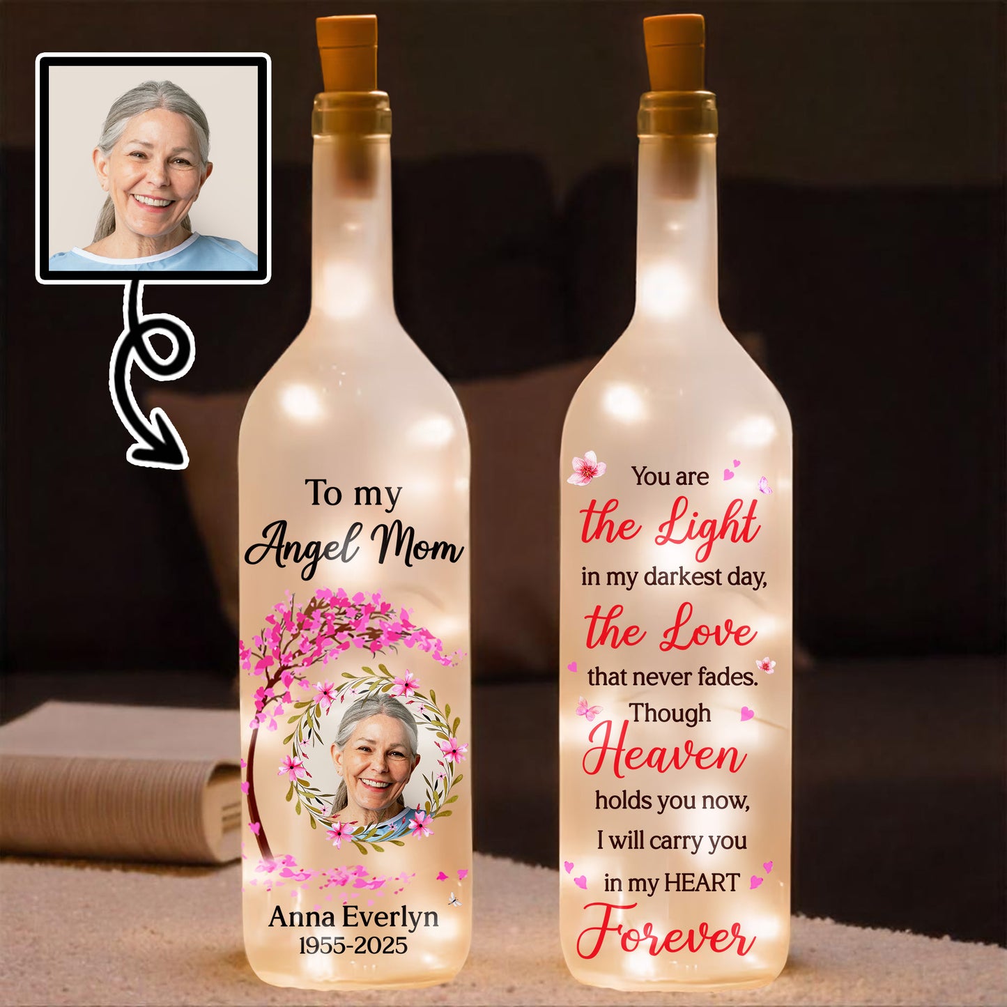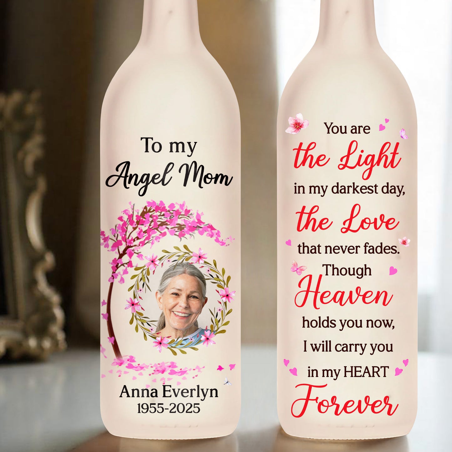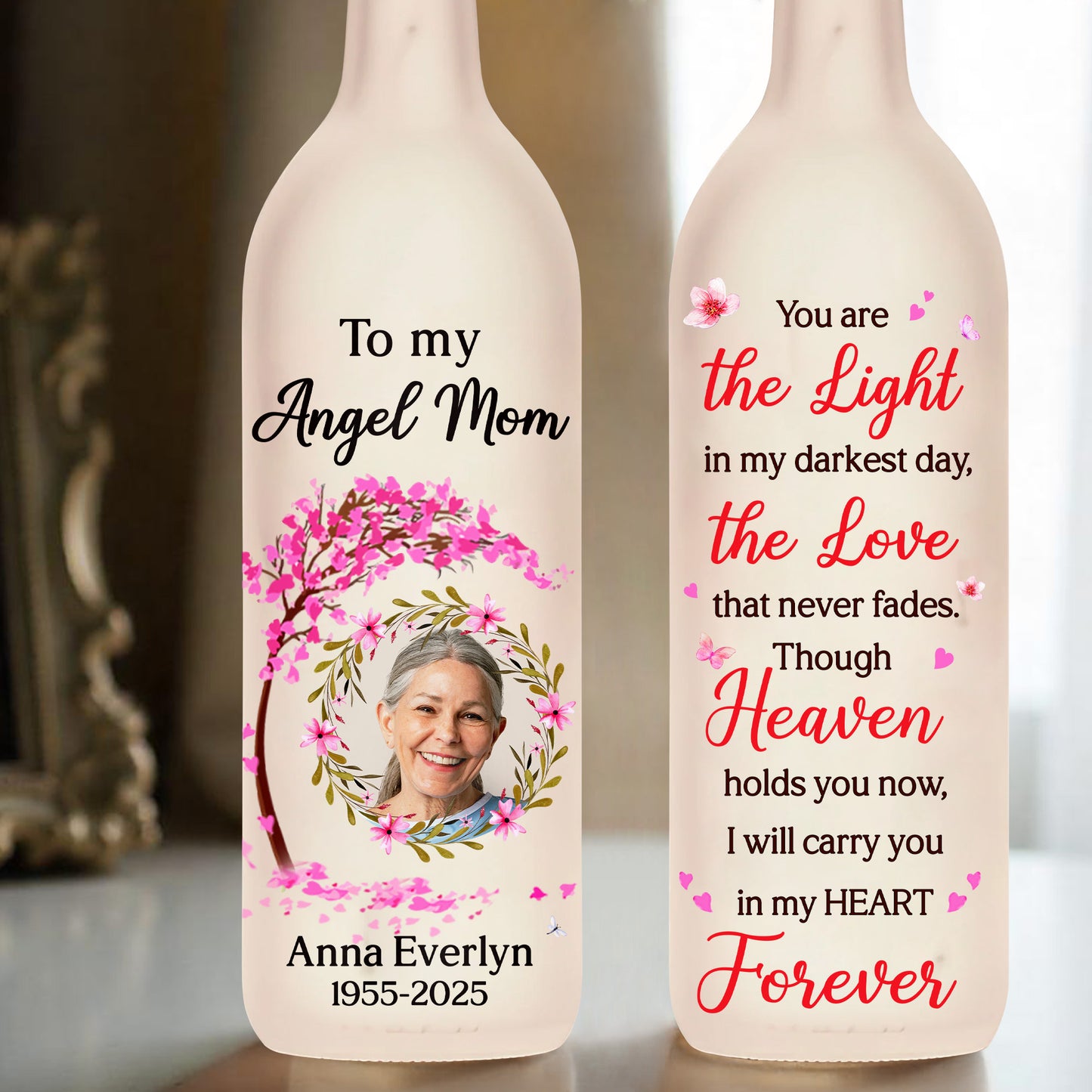 To My Angel Mom, You Are The Light In My Darkest Day, Personalized Bottle Lamp, Gift For Daughters