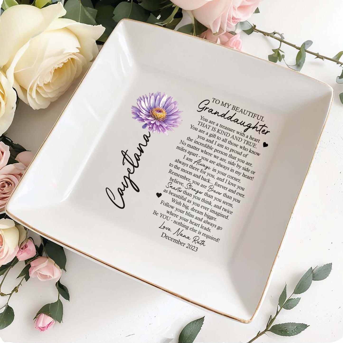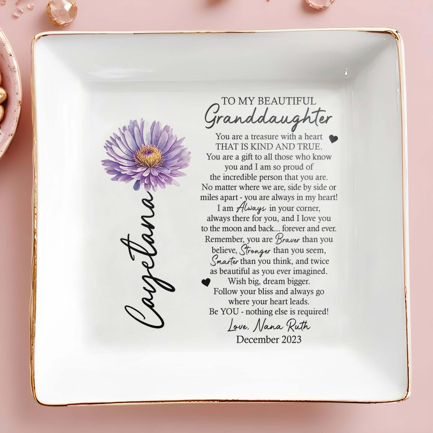 To My Beautiful Granddaughter Kind And True - Personalized Custom Jewelry Dish - Gift For Granddaughters