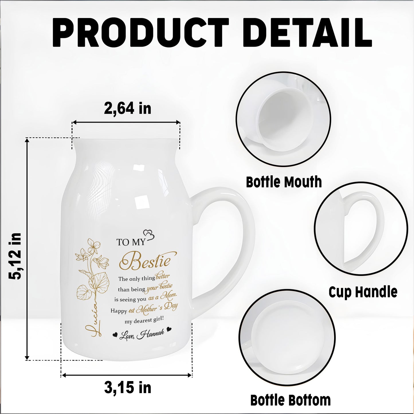 Message: To My Bestie, The only thing better than being your Bestie is seeing you as a Mom. Happy 1st Mother's Day my dearest girl! Love, Hannah