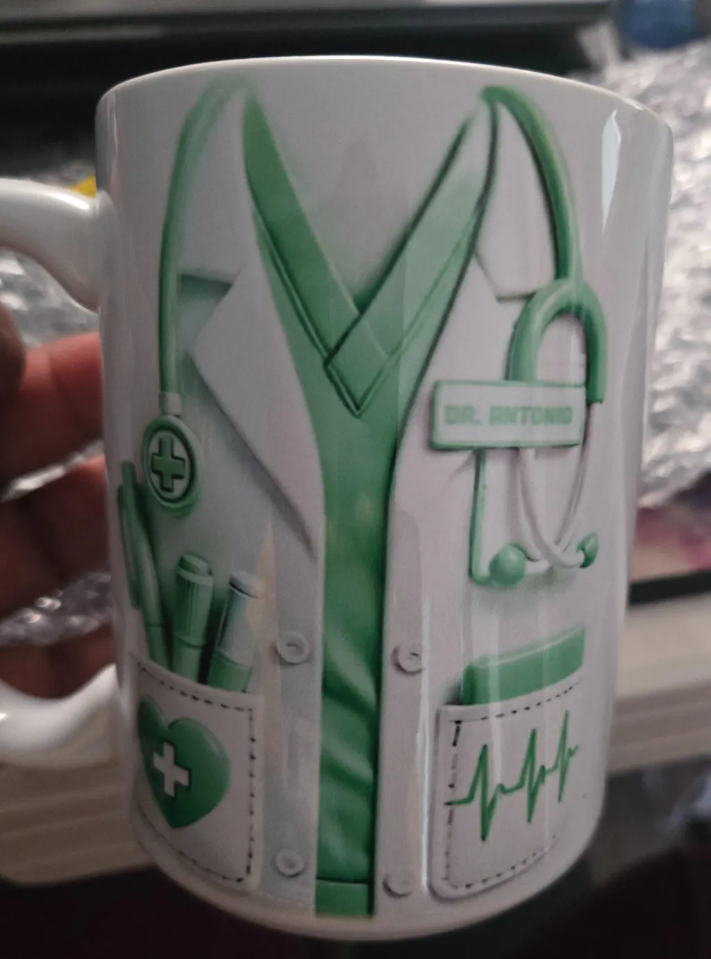 The quality and design of the cup are good. However, the name is somewhat difficult to read - it could be due to the green color.