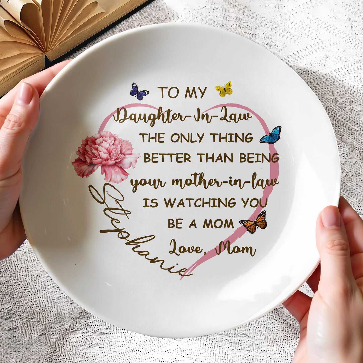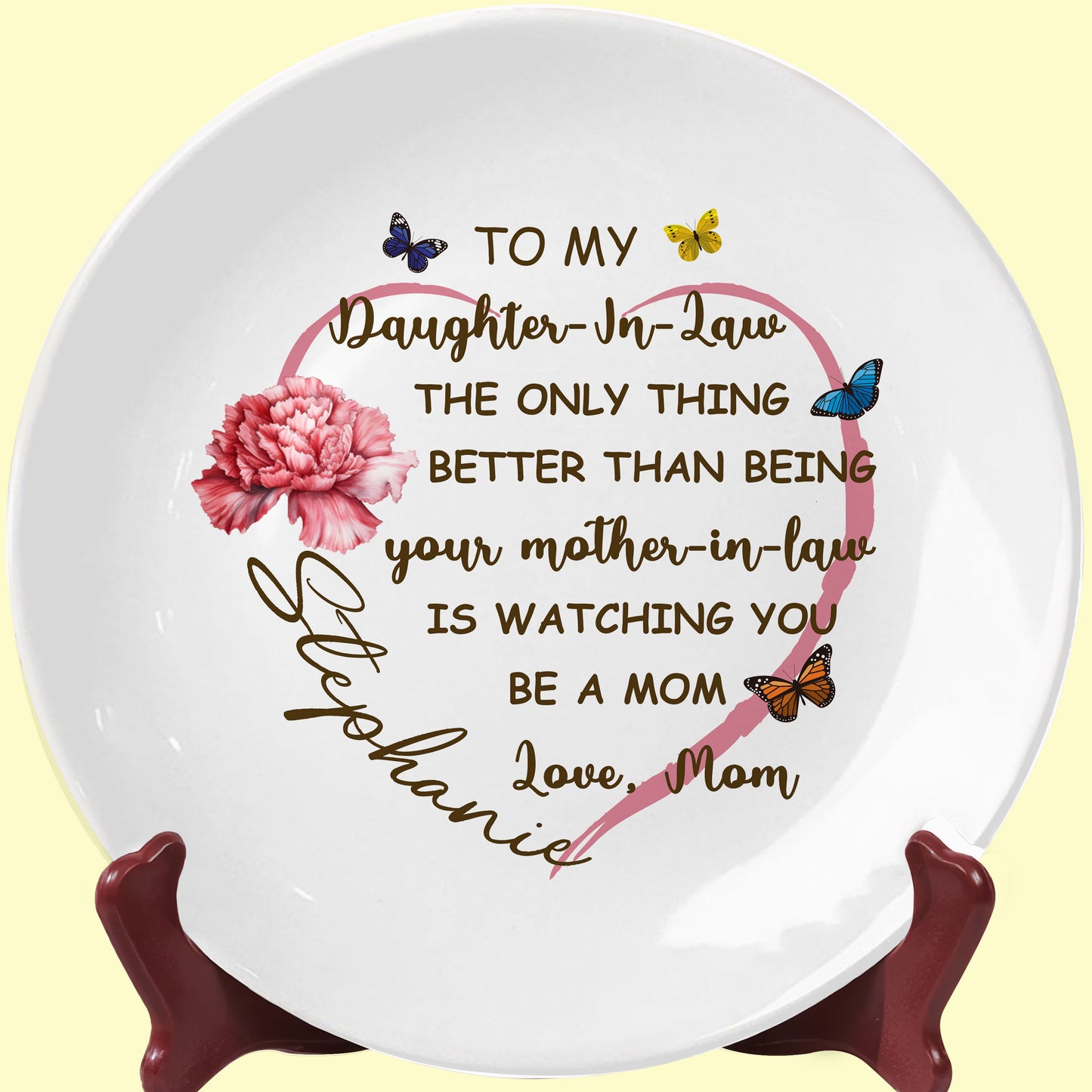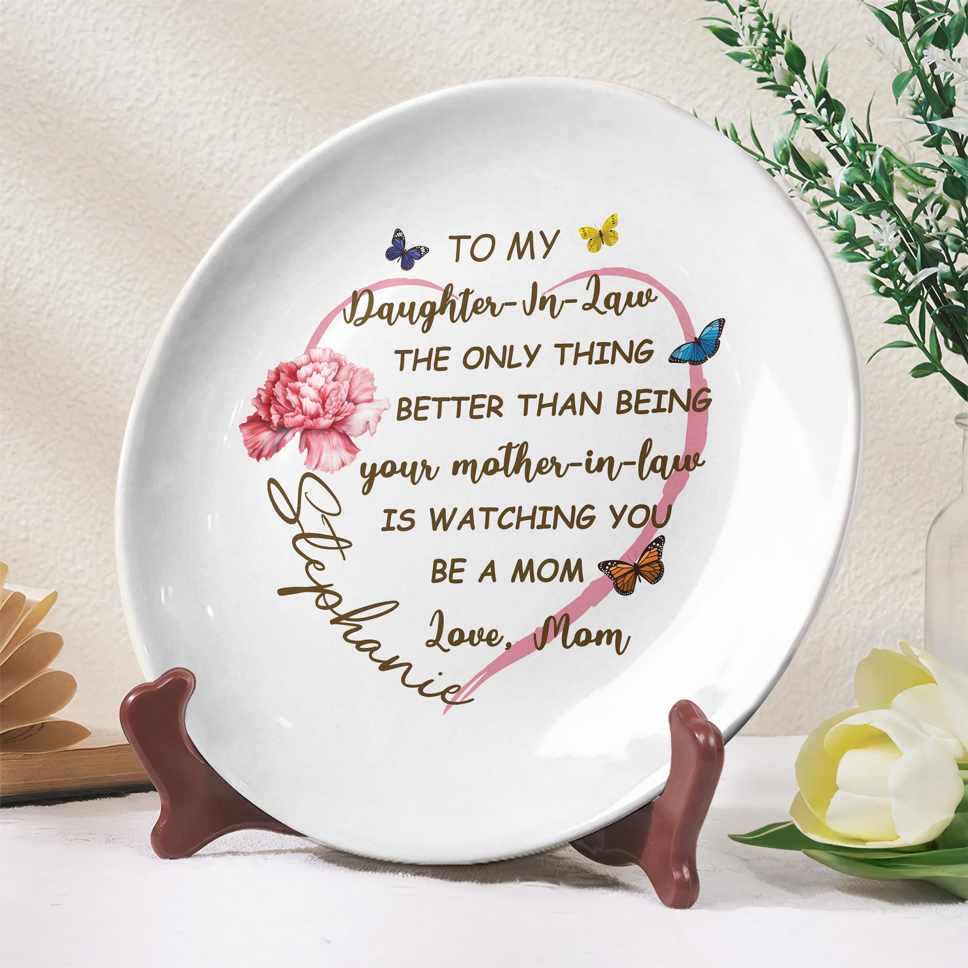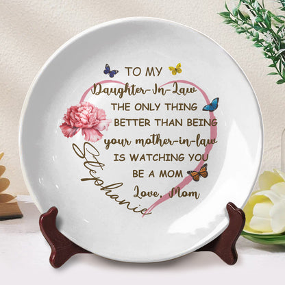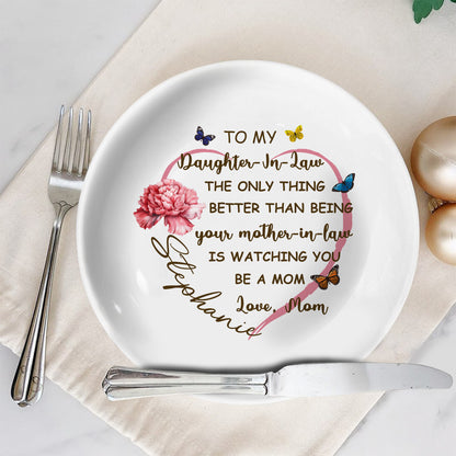 To My Daughter-In-Law, The Only Thing Better Than Being Your Mother-In-Law, Butterflies And Carnation, Personalized Ceramic Plate, Gift For Daughter-In-Law