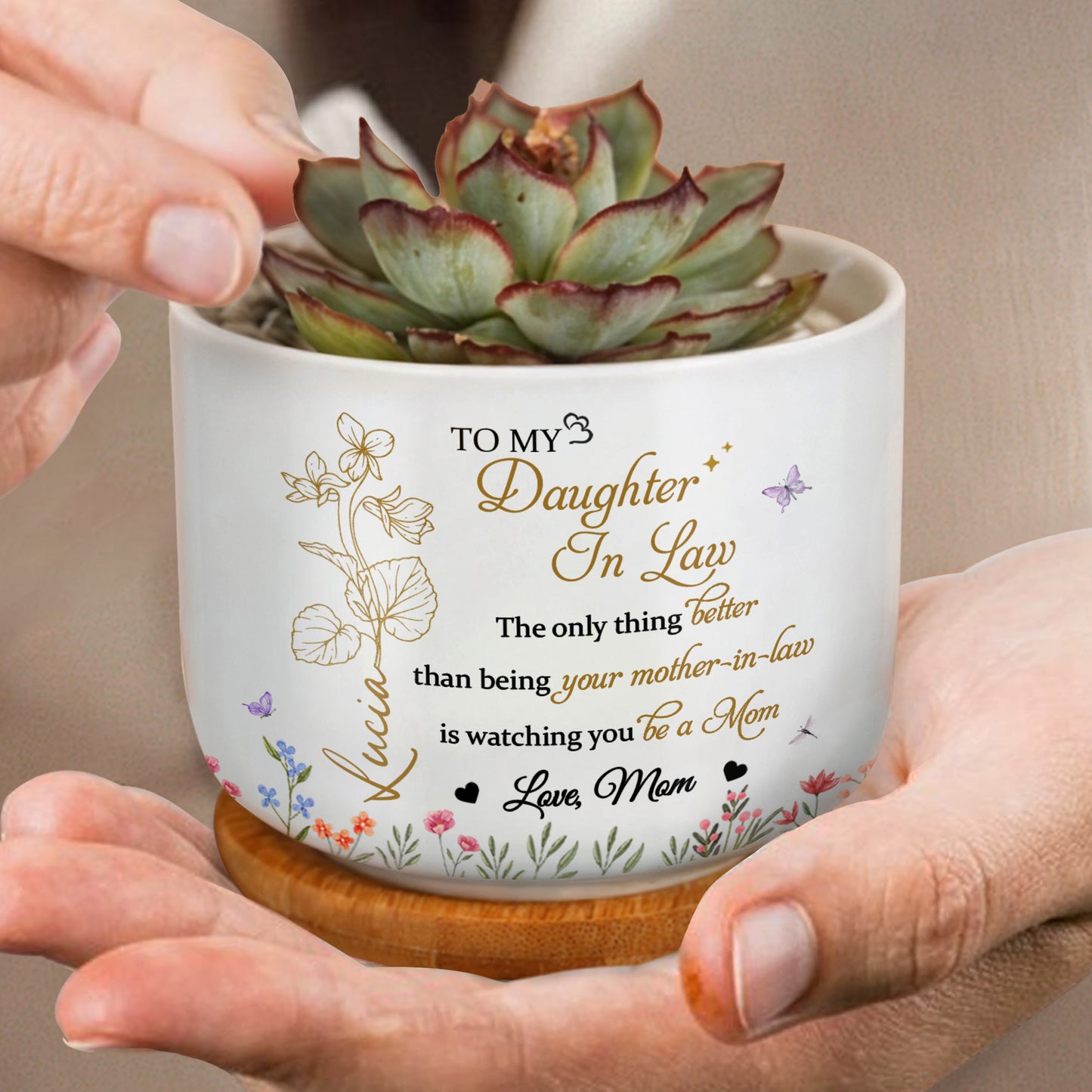 To My Daughter In Law, Watching You Be a Mom, Flowers And Hearts, Personalized Ceramic Plant Pot, Gift For Daughter-In-Laws