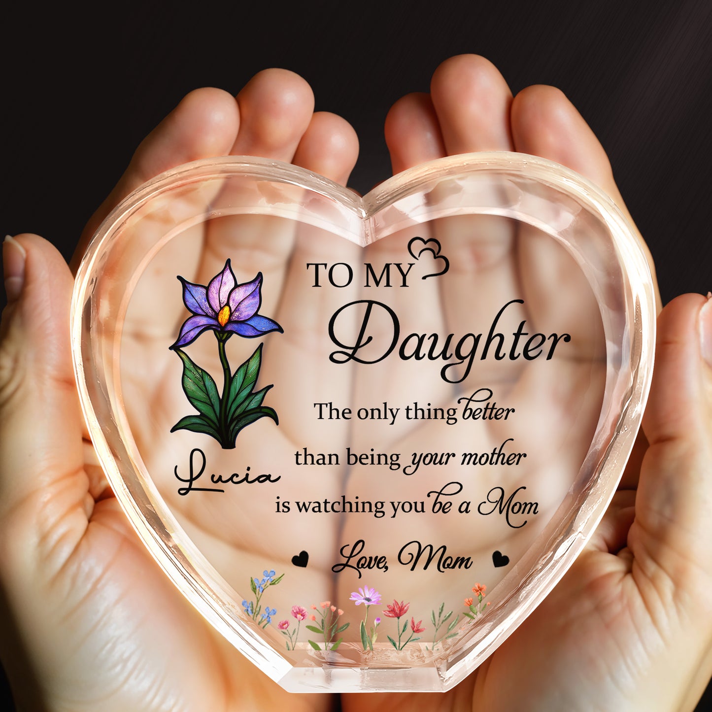 To My Daughter, The only thing better than being your mother is watching you be a Mom, Flowers and Hearts - Personalized Crystal Heart - DAU167_CHE