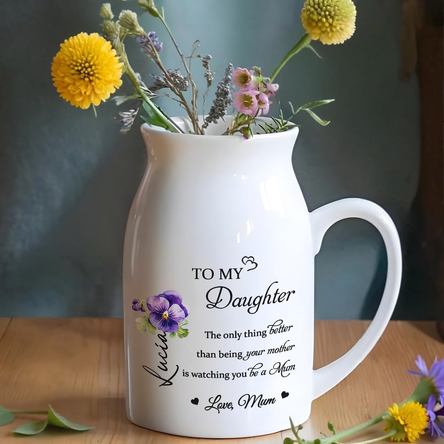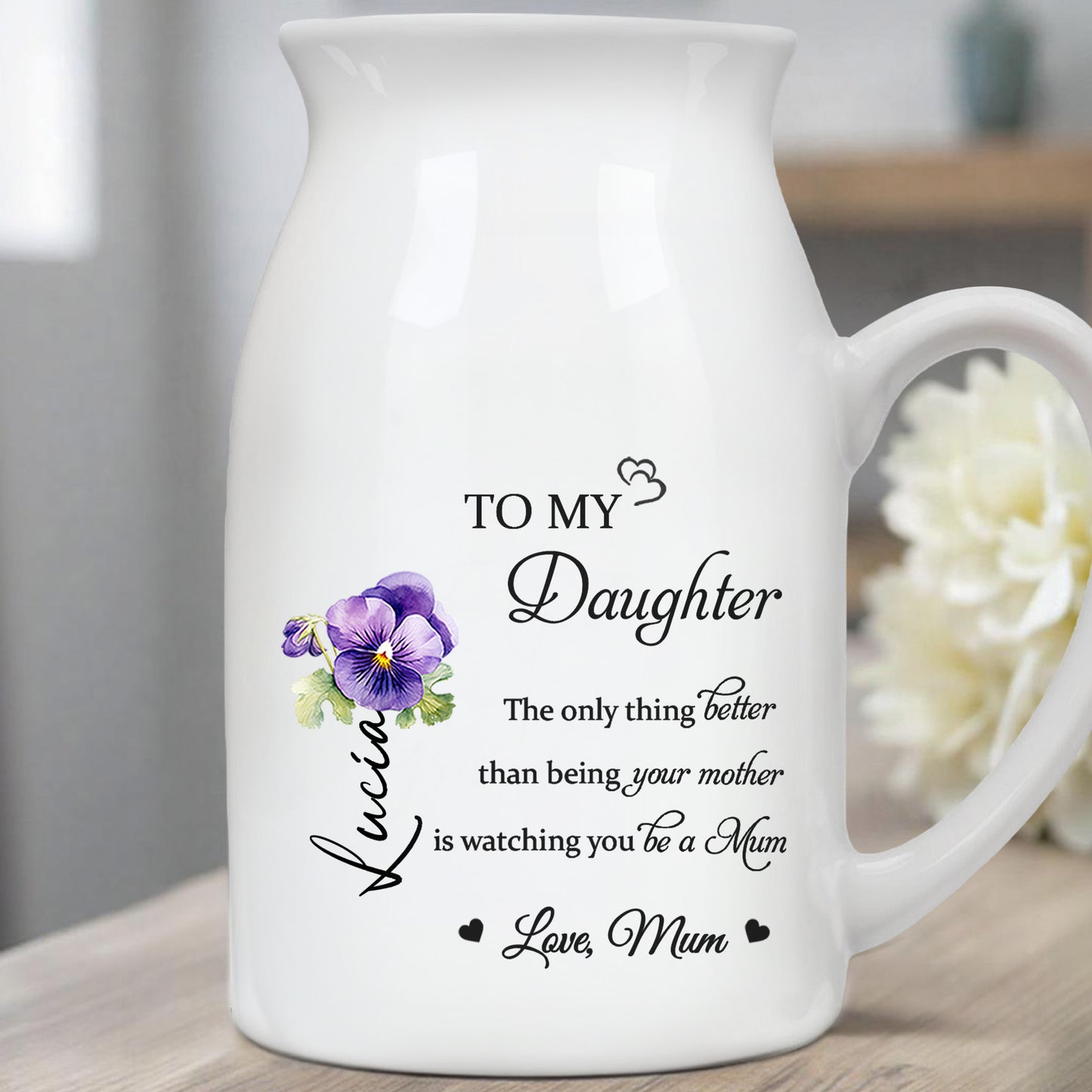 To My Daughter, The Only Thing Better Than Being Your Mother Is Watching You Be A Mum, Personalized Ceramic Flower Vase, Gift For Daughters