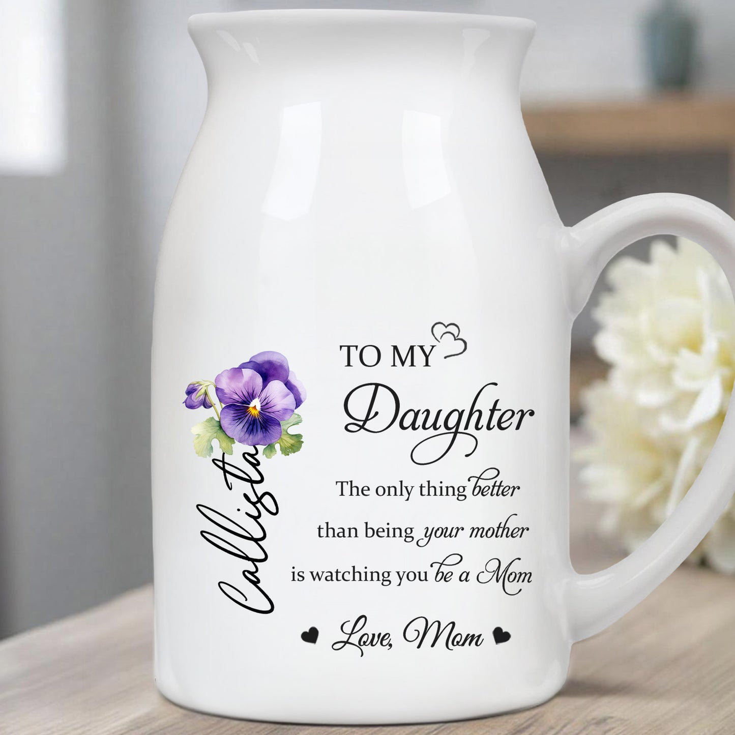 To My Daughter Watching You Be A Mom With Flowers - Personalized Ceramic Flower Vase - DAU079_CEV