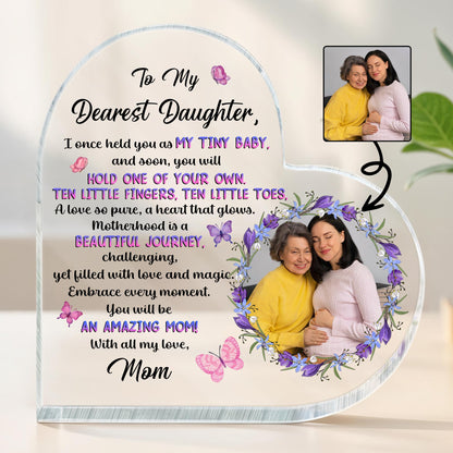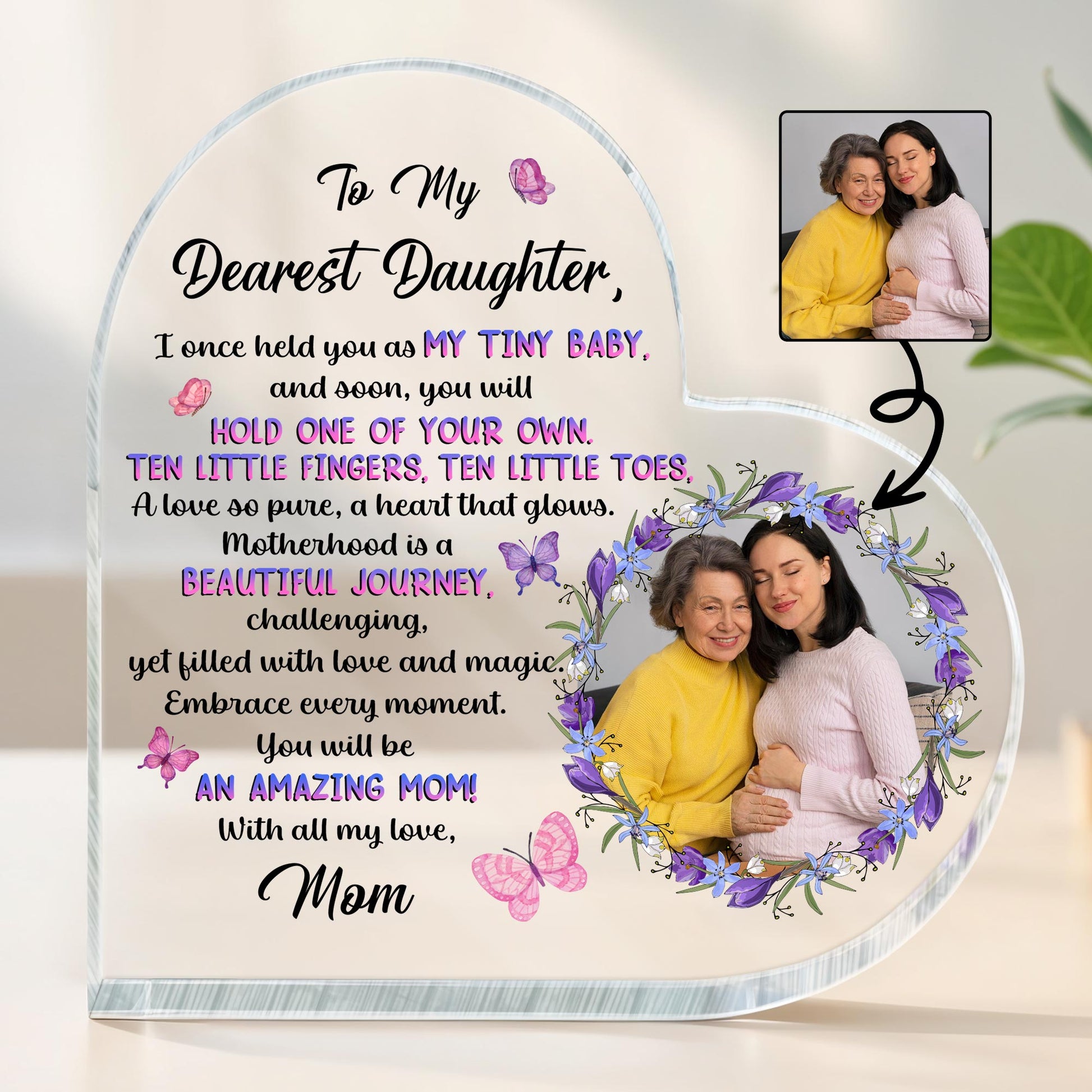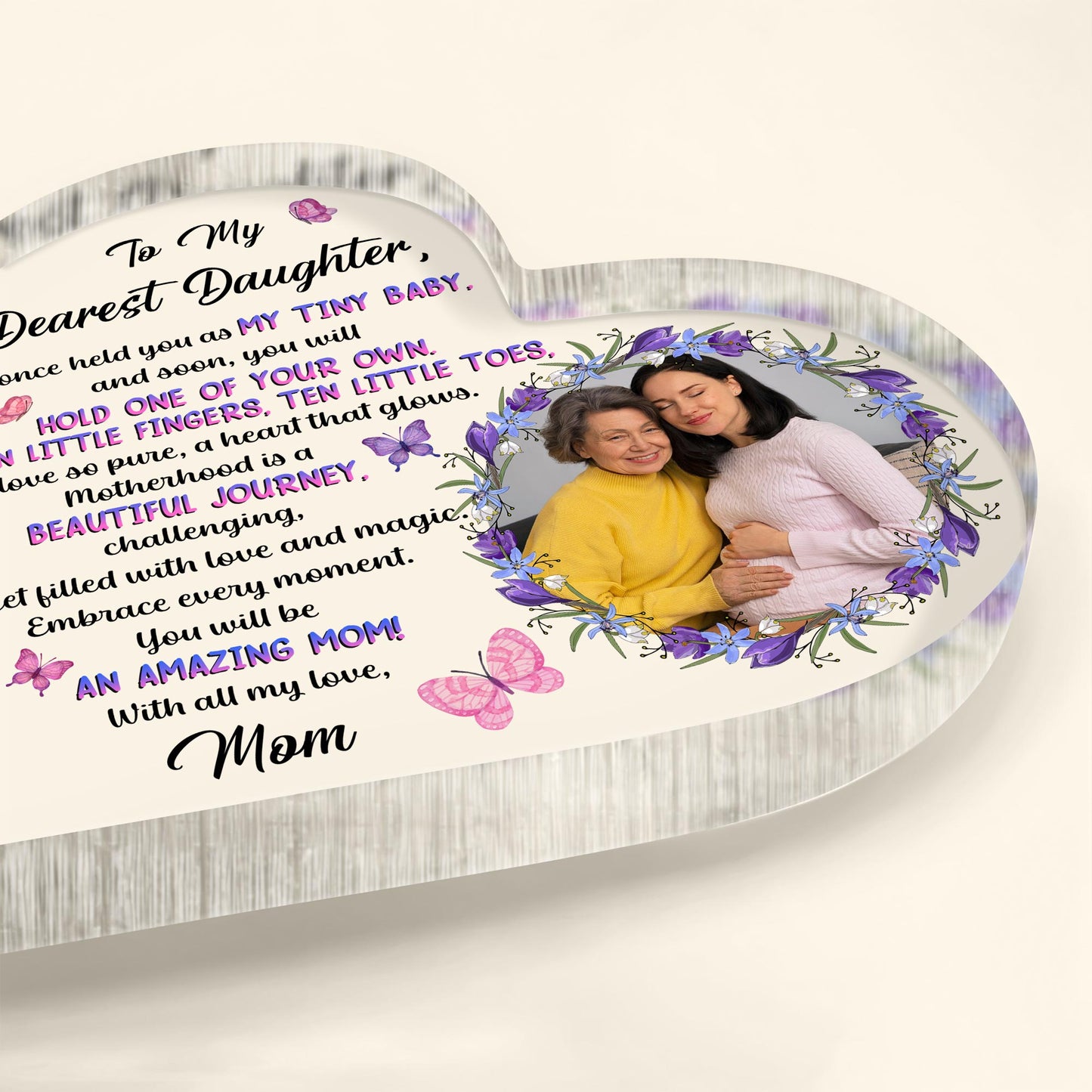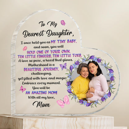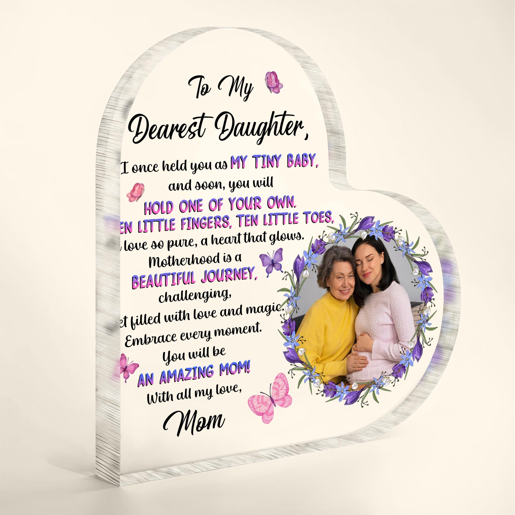 To My Dearest Daughter, You Will Be An Amazing Mom, Personalized Heart Shaped Acrylic Plaque, Gift For Daughters