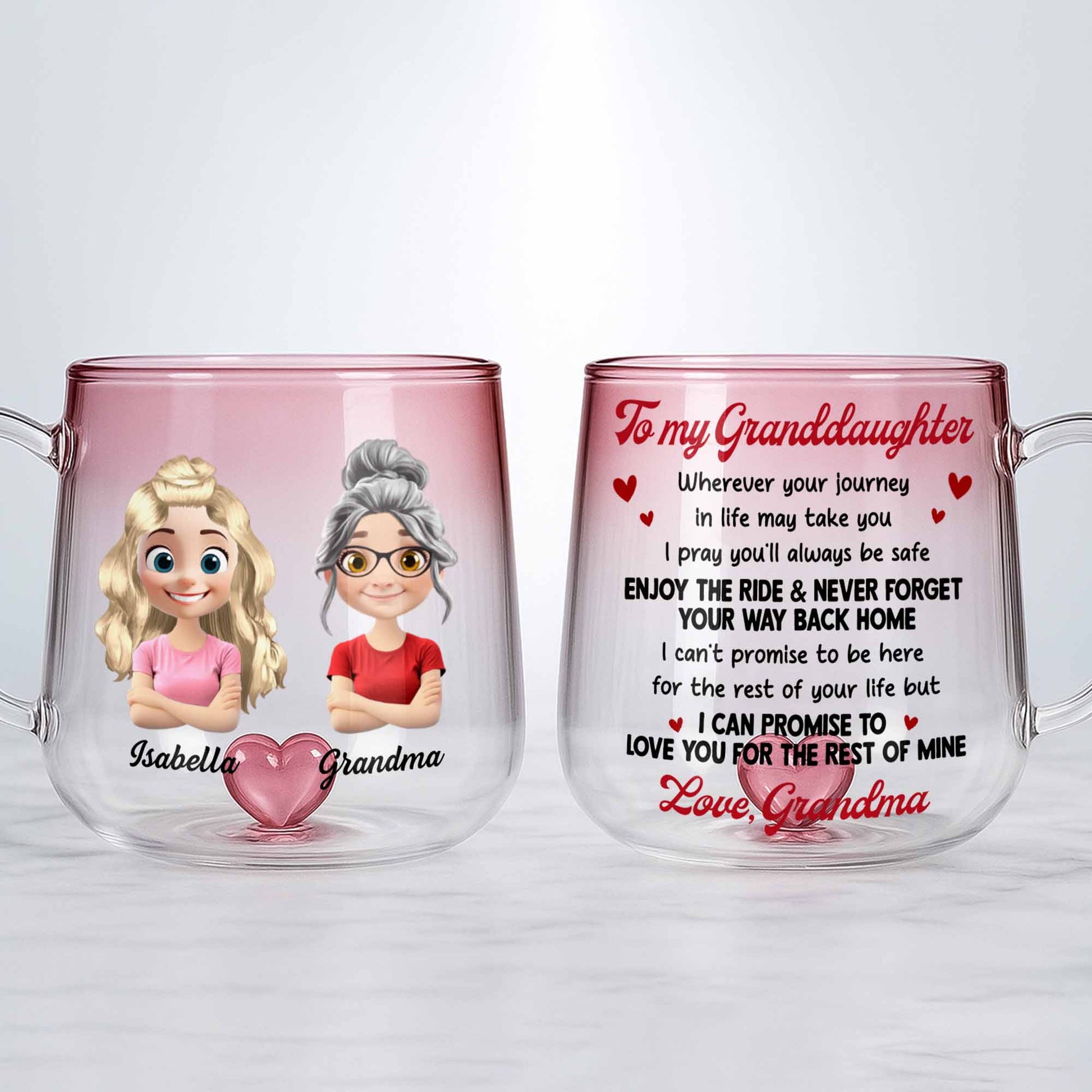 To My Granddaughter, Enjoy The Ride, Pink Glass Mug With Heart, Gift For Granddaughters