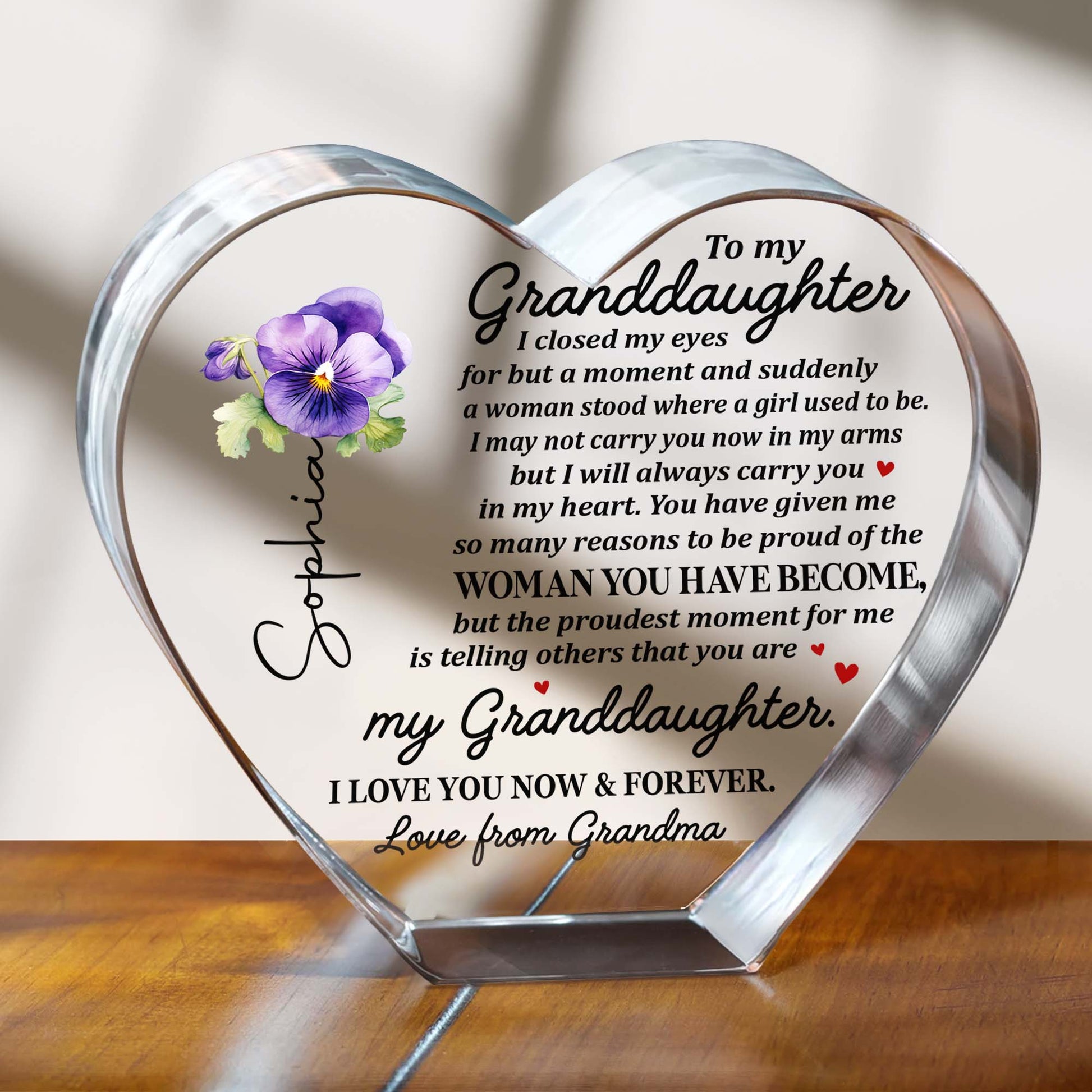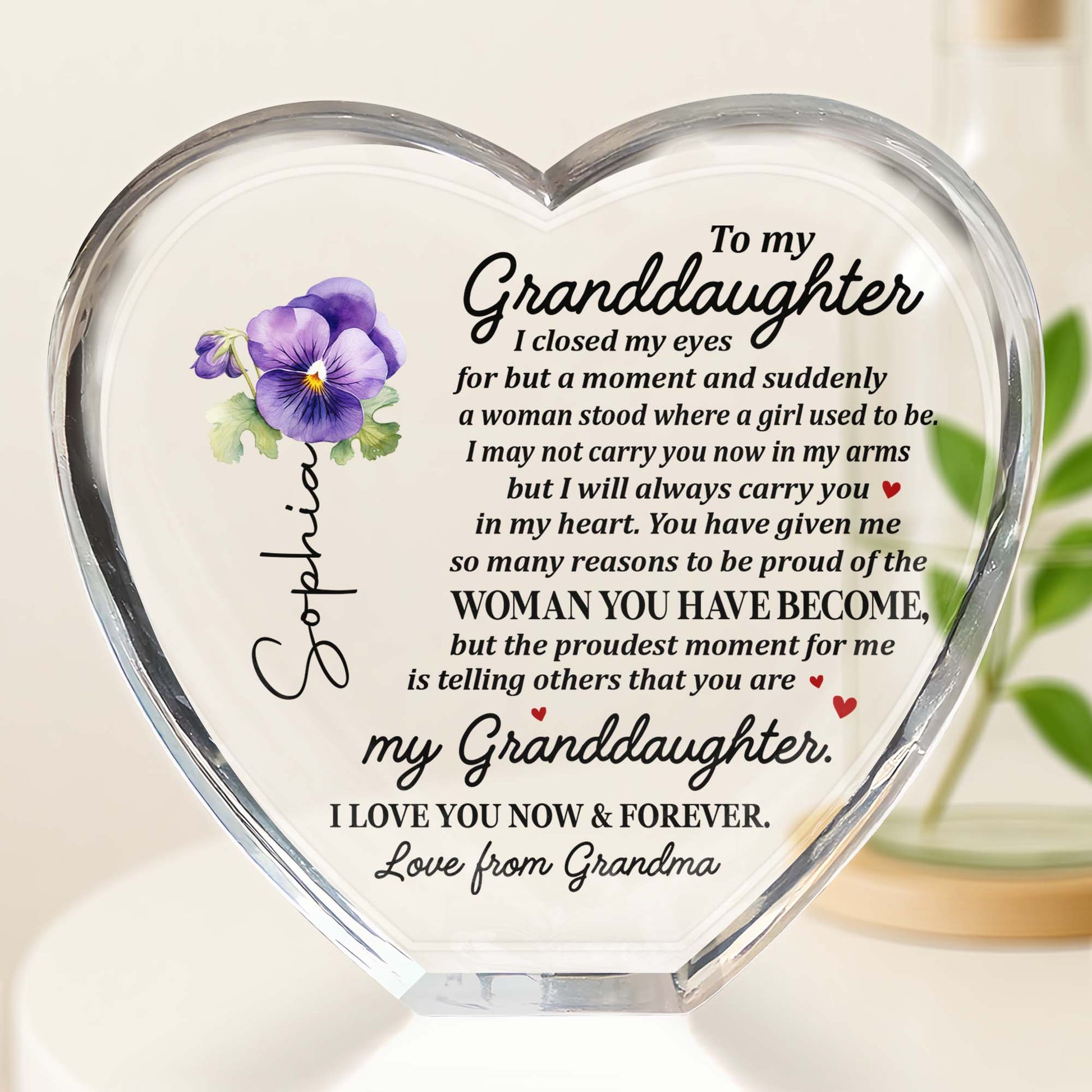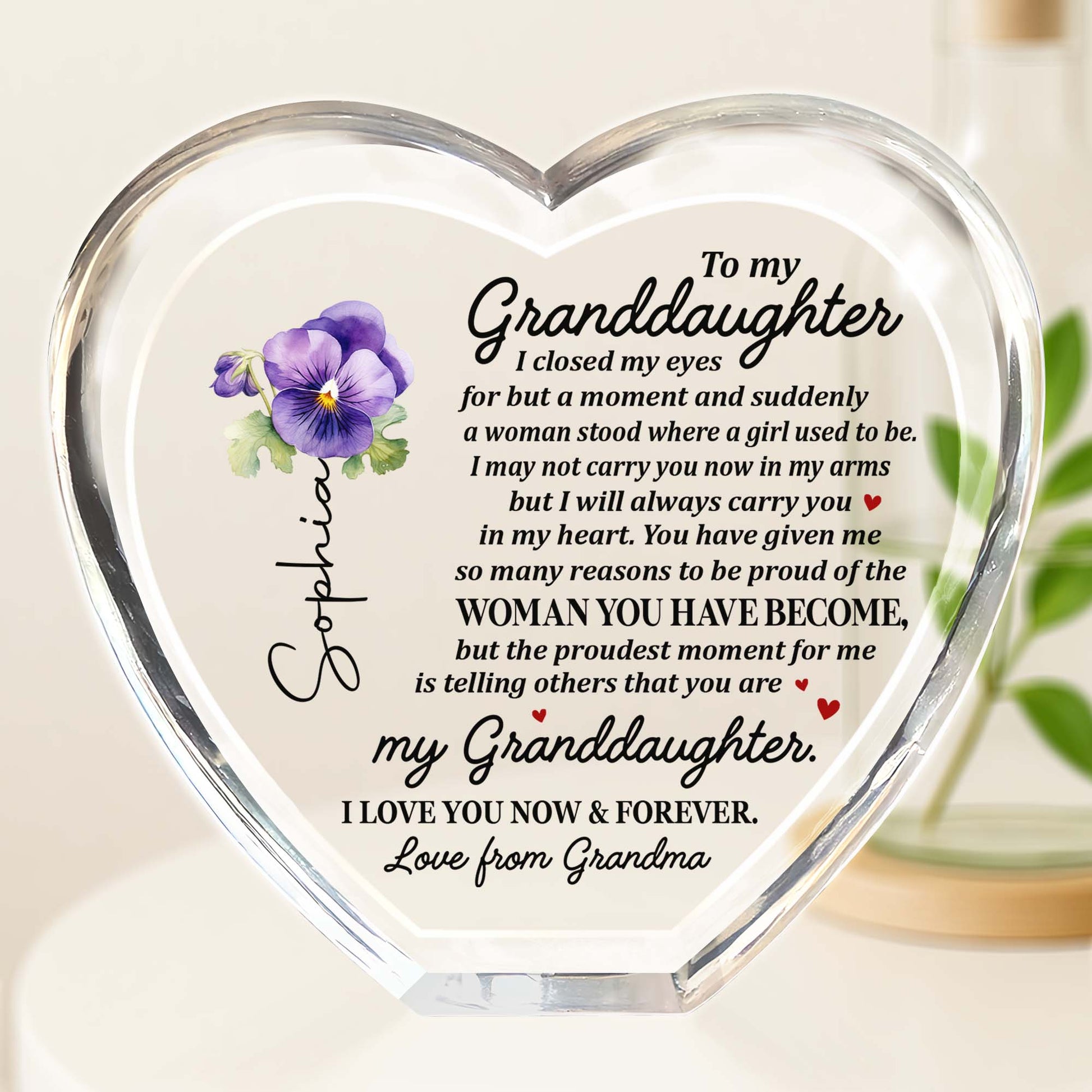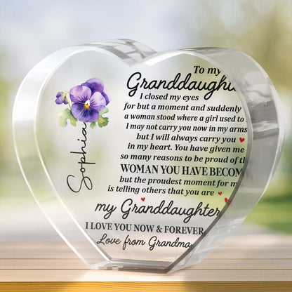 To My Granddaughter, I Closed My Eyes And Suddenly, Heart And Flowers - Personalized Crystal Heart - GDT021_CHE