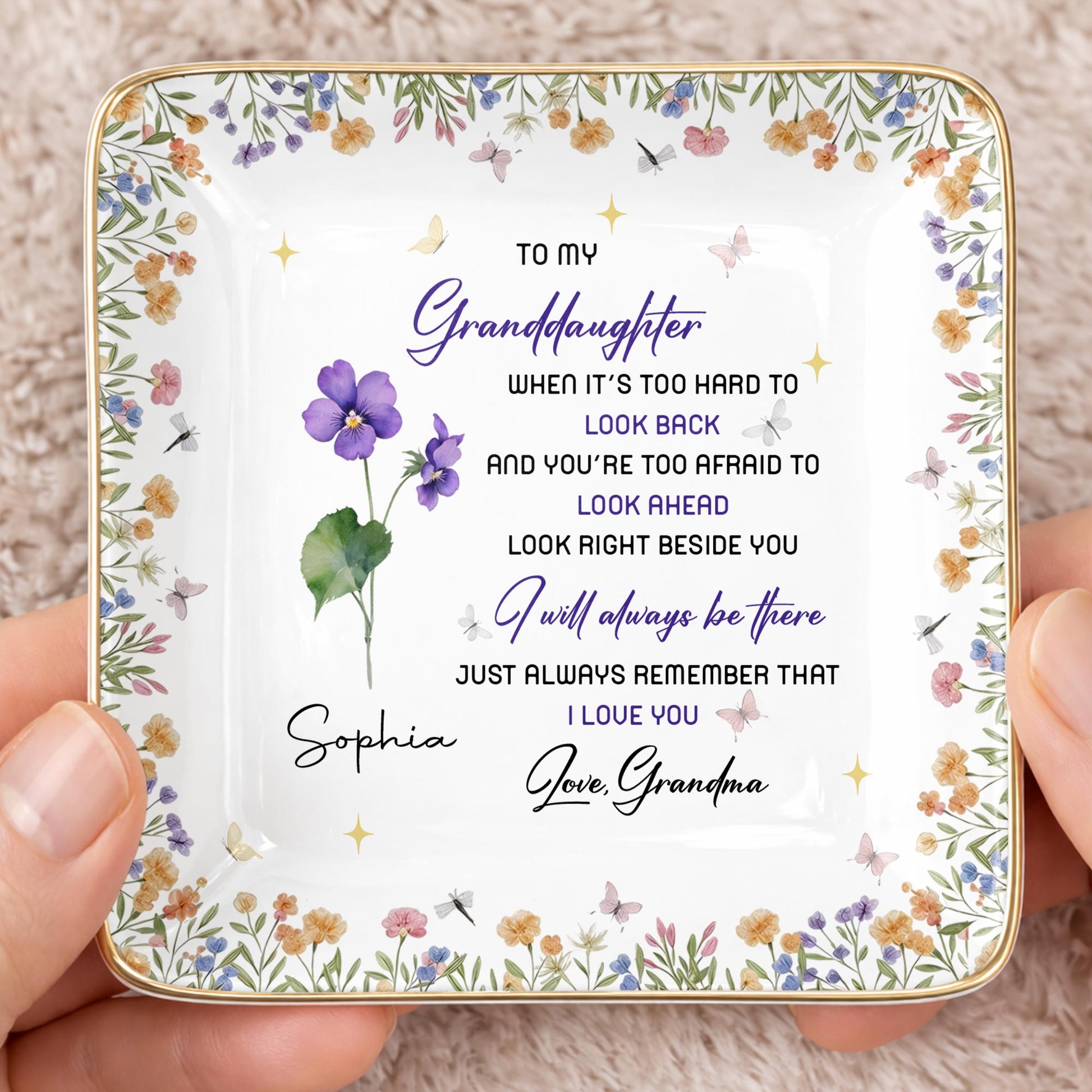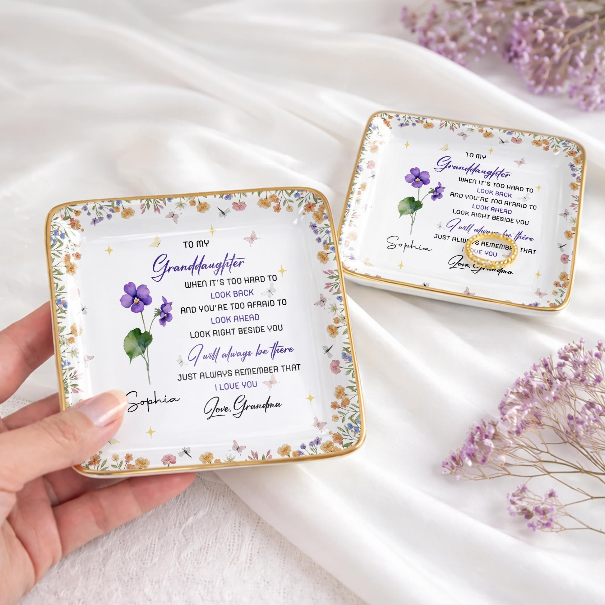 To My Granddaughter I Will Always Be There Floral Flowers - Personalized Custom Jewelry Dish, Ceramic Dish, Square Shape - GDT616_SCRF