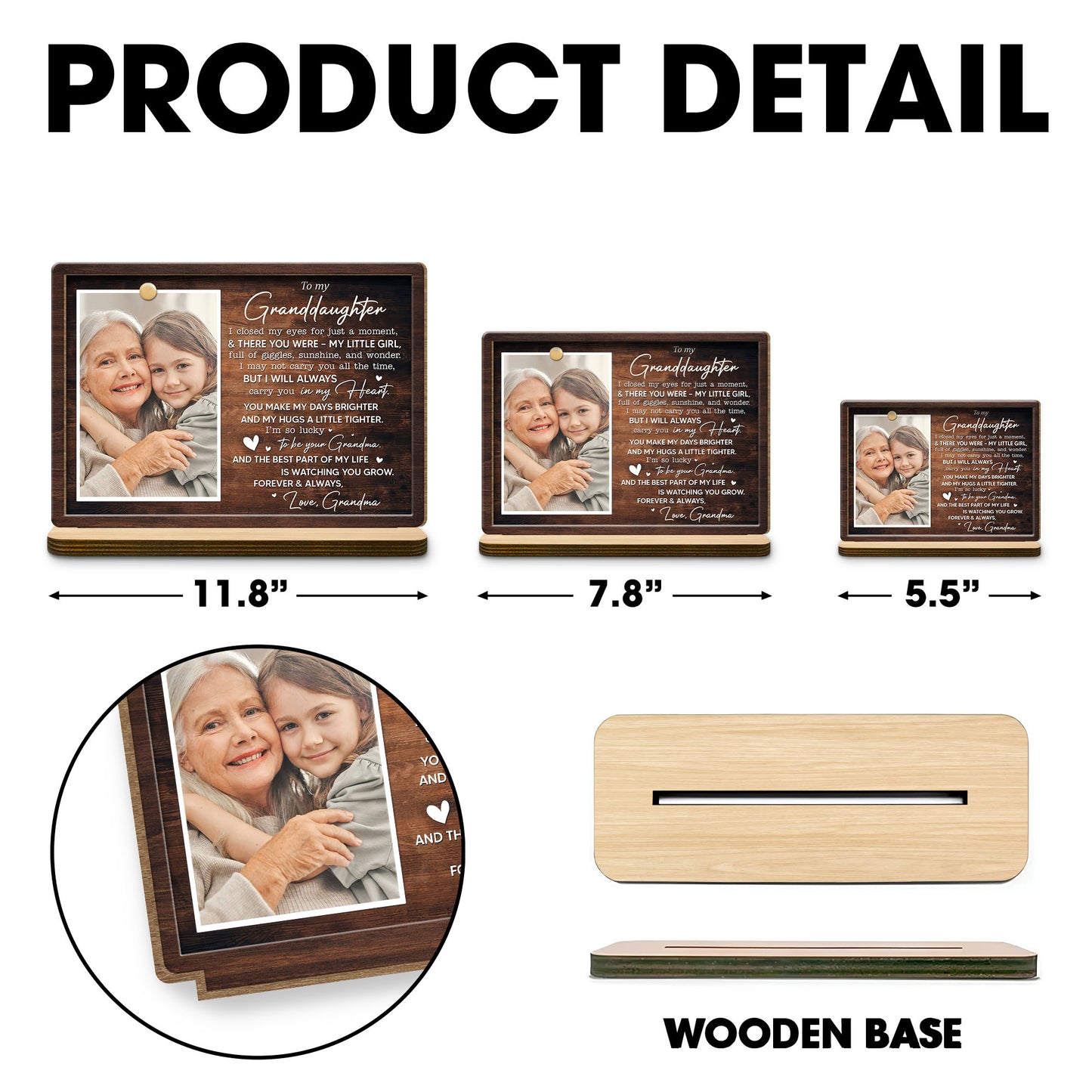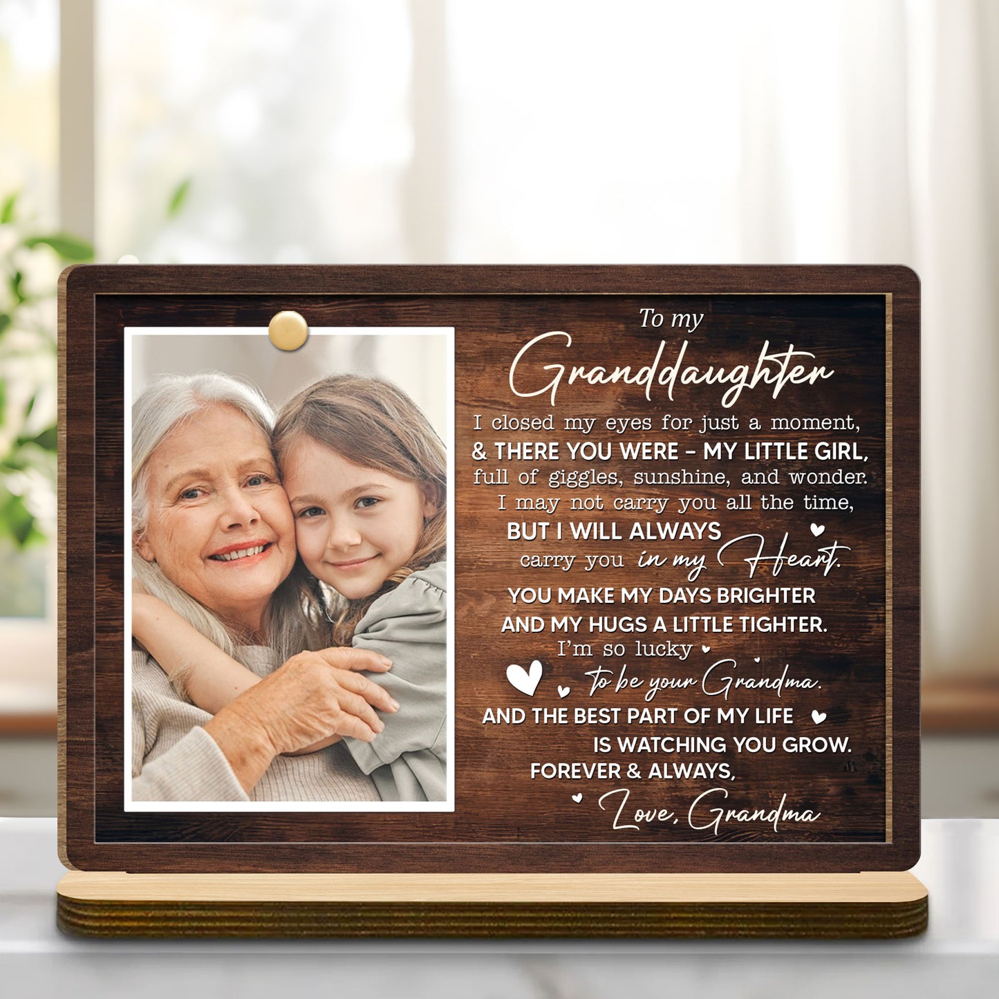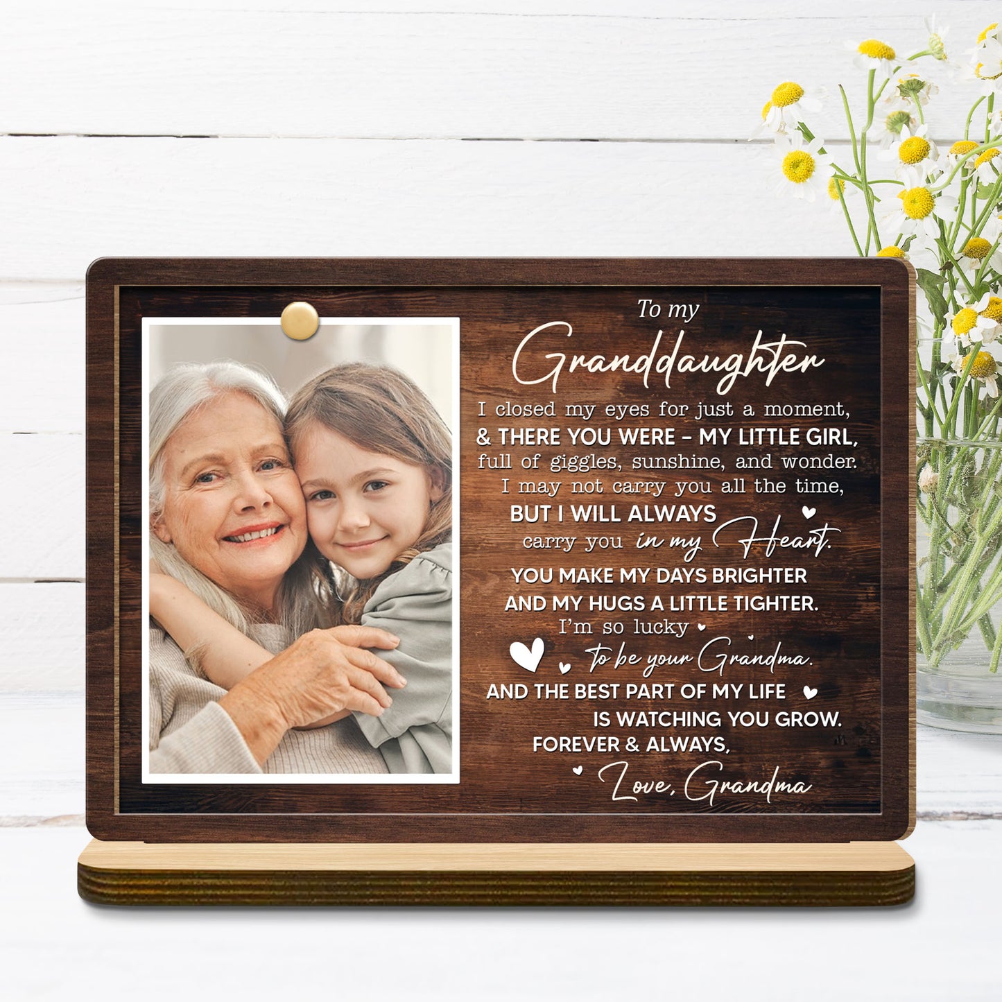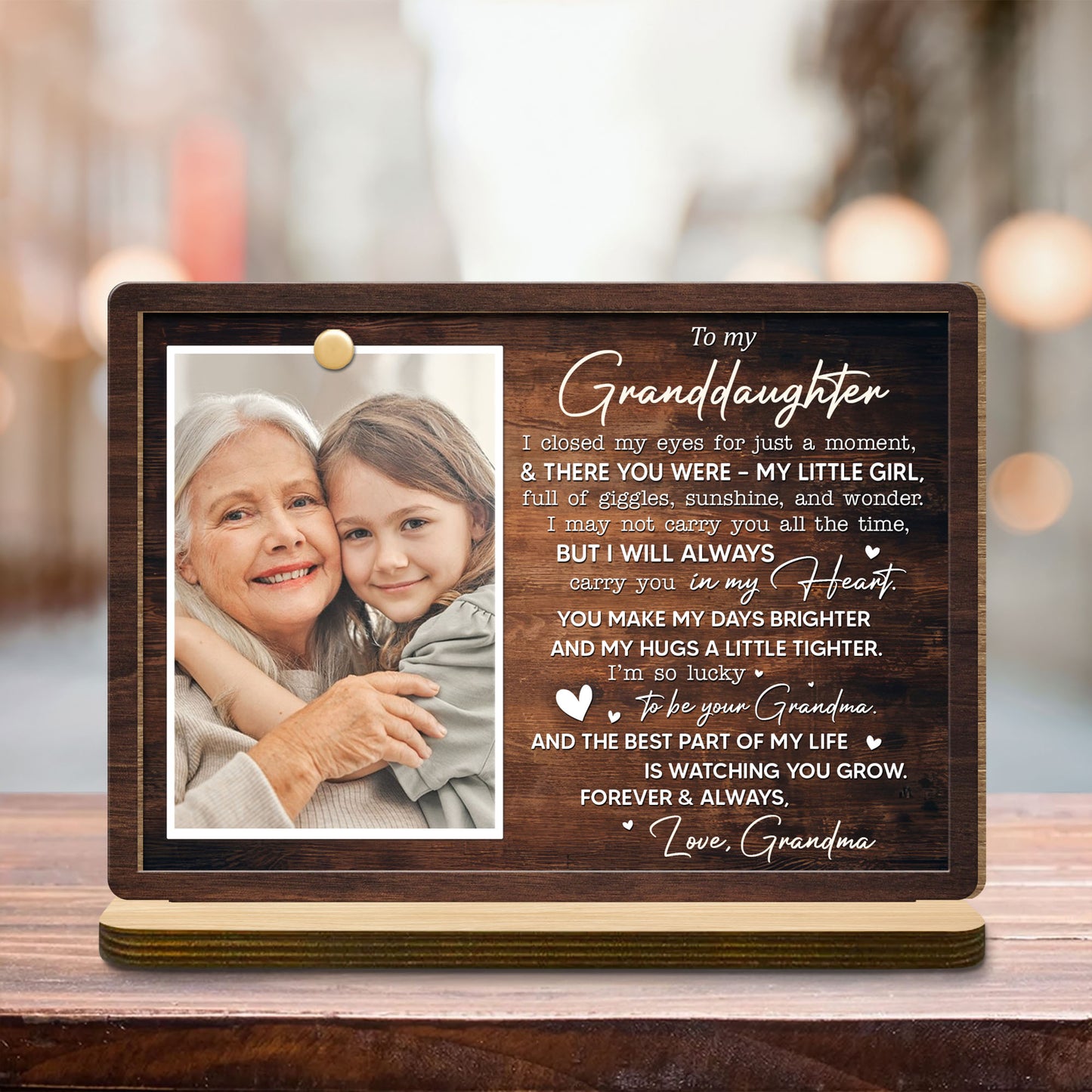 To My Granddaughter, Love Grandma Wood Plaque - Personalized Custom 2-Layer Wood Plaque With Flat Base - DAU174_WPLA