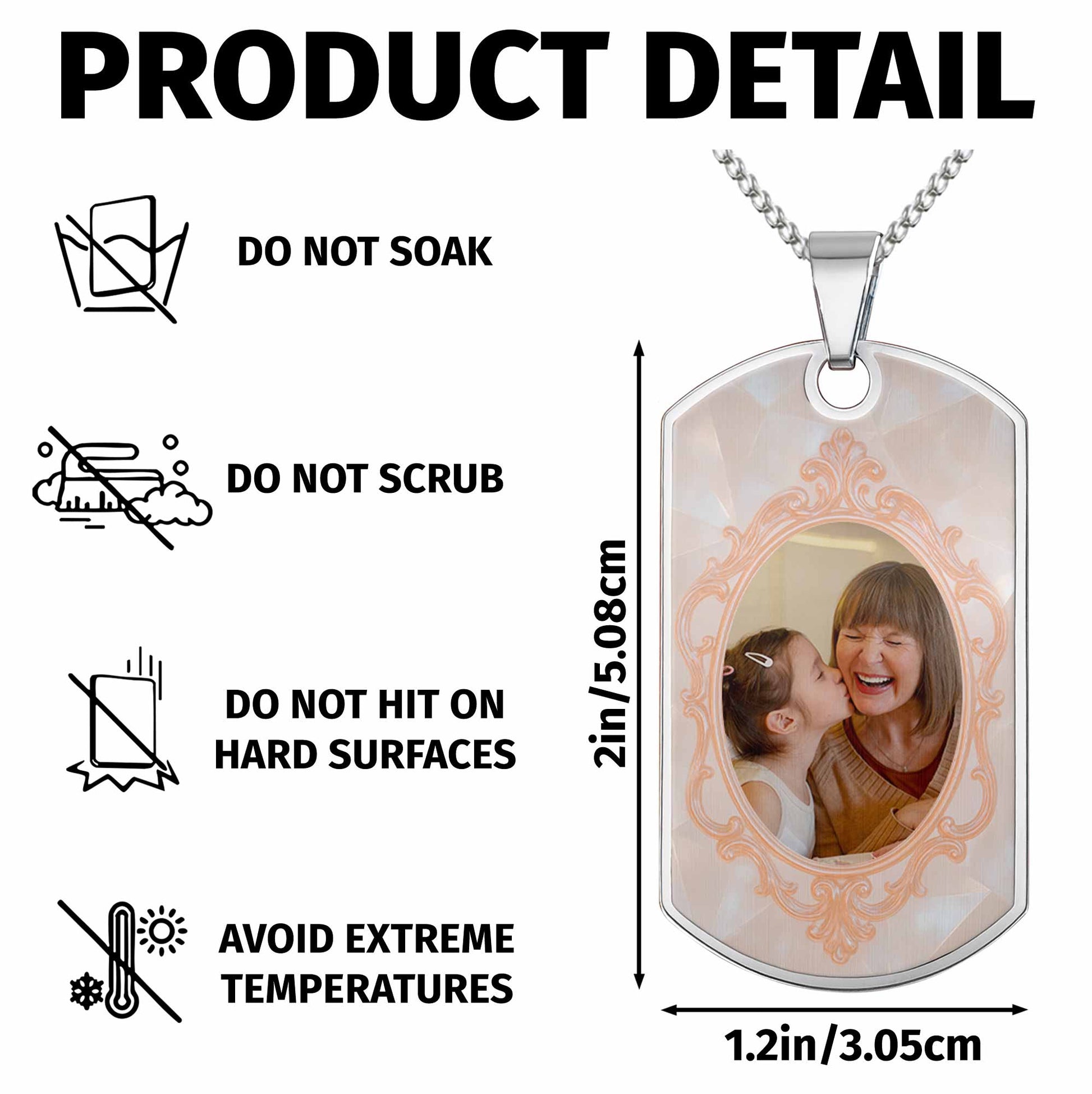 Create a keepsake you can wear every day with our Personalized Dog Tag Necklace. Made from stainless steel and finished with a protective layer over your image and text, this two-sided tag delivers crisp detail and everyday durability.