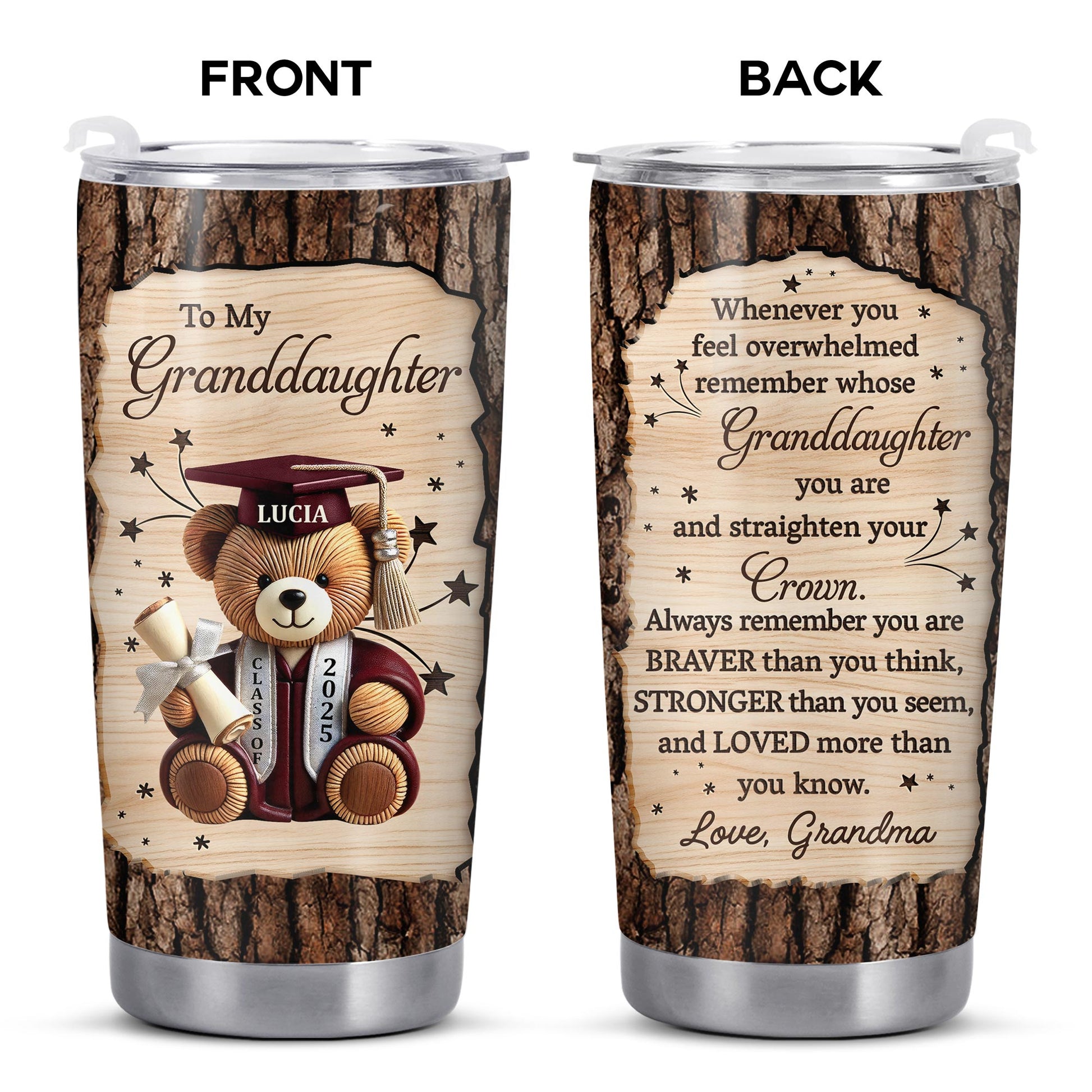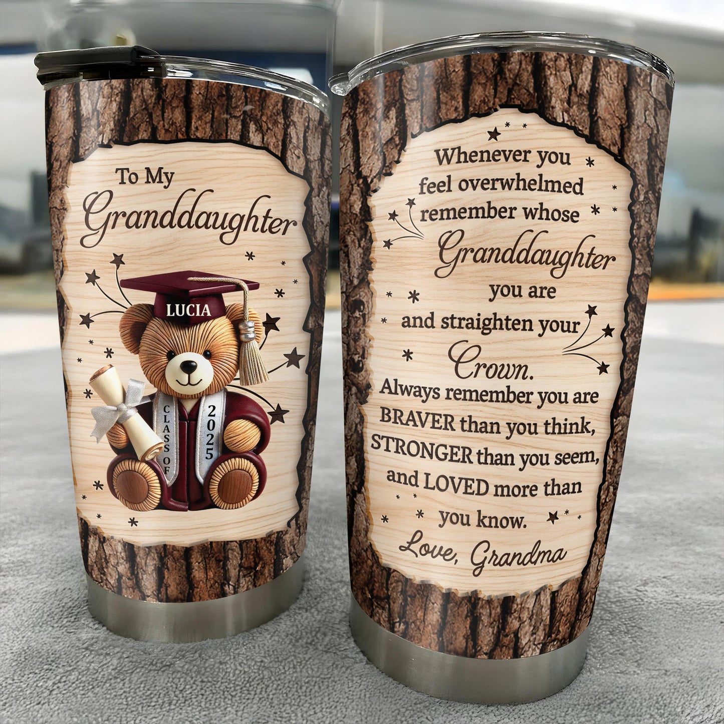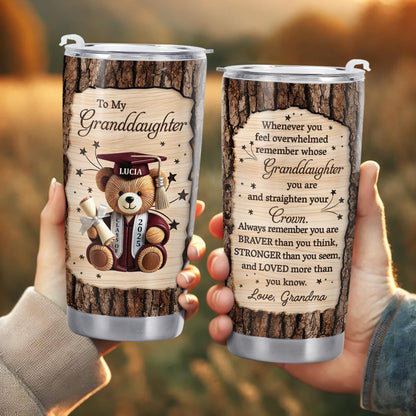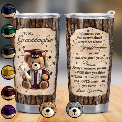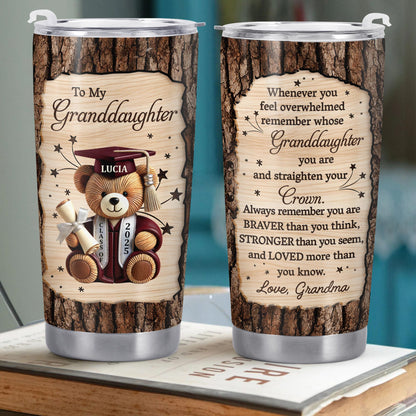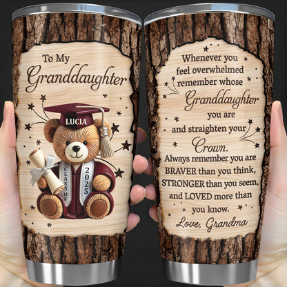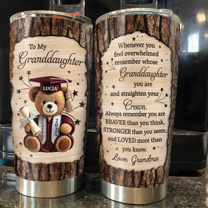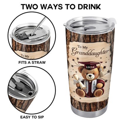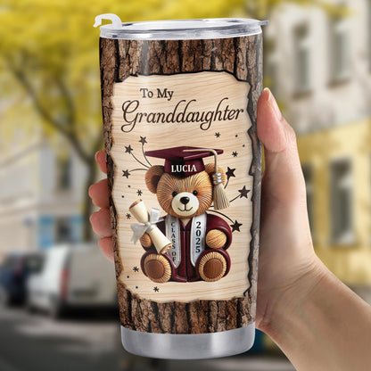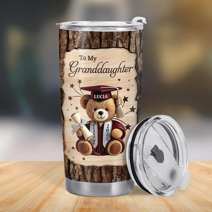 To My Granddaughter, Teddy Bear, Graduation Cap, Diploma, Personalized Custom Stainless Steel Tumbler 20oz 30oz, Gift For Granddaughters