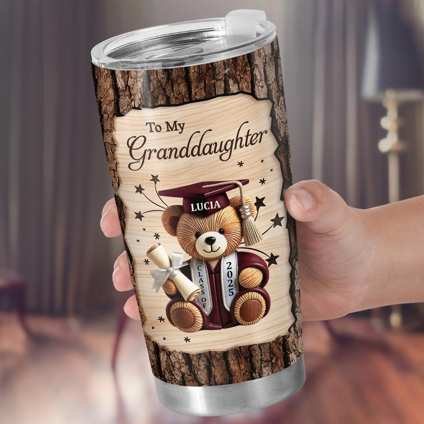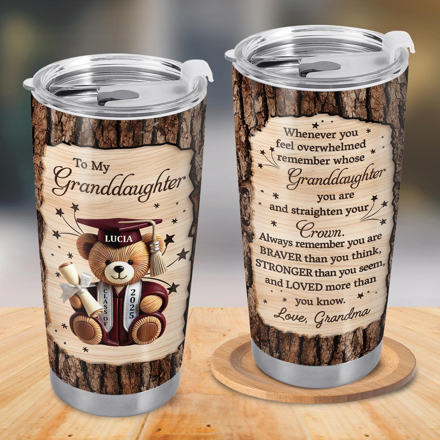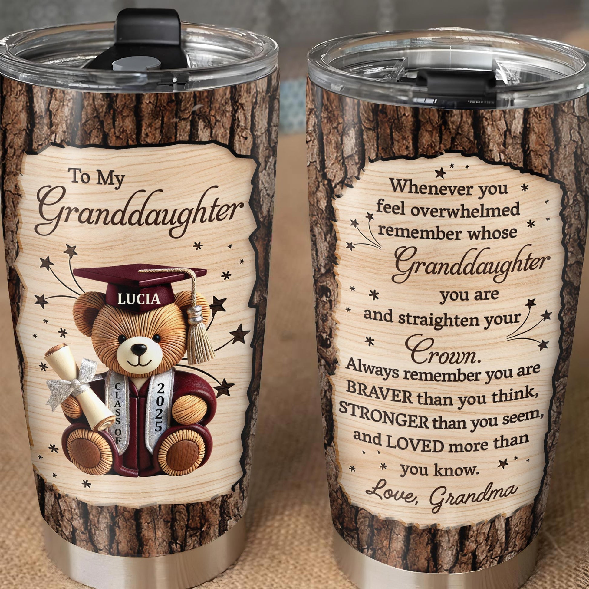 To My Granddaughter, Teddy Bear, Graduation Cap, Diploma, Personalized Custom Stainless Steel Tumbler 20oz 30oz, Gift For Granddaughters
