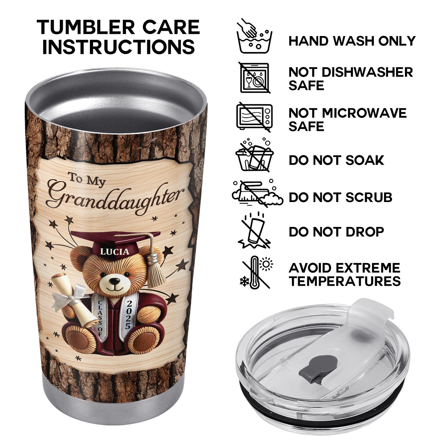To My Granddaughter, Teddy Bear, Graduation Cap, Diploma - Personalized Custom Stainless Steel Tumbler 20oz 30oz - GRAD319_TB
