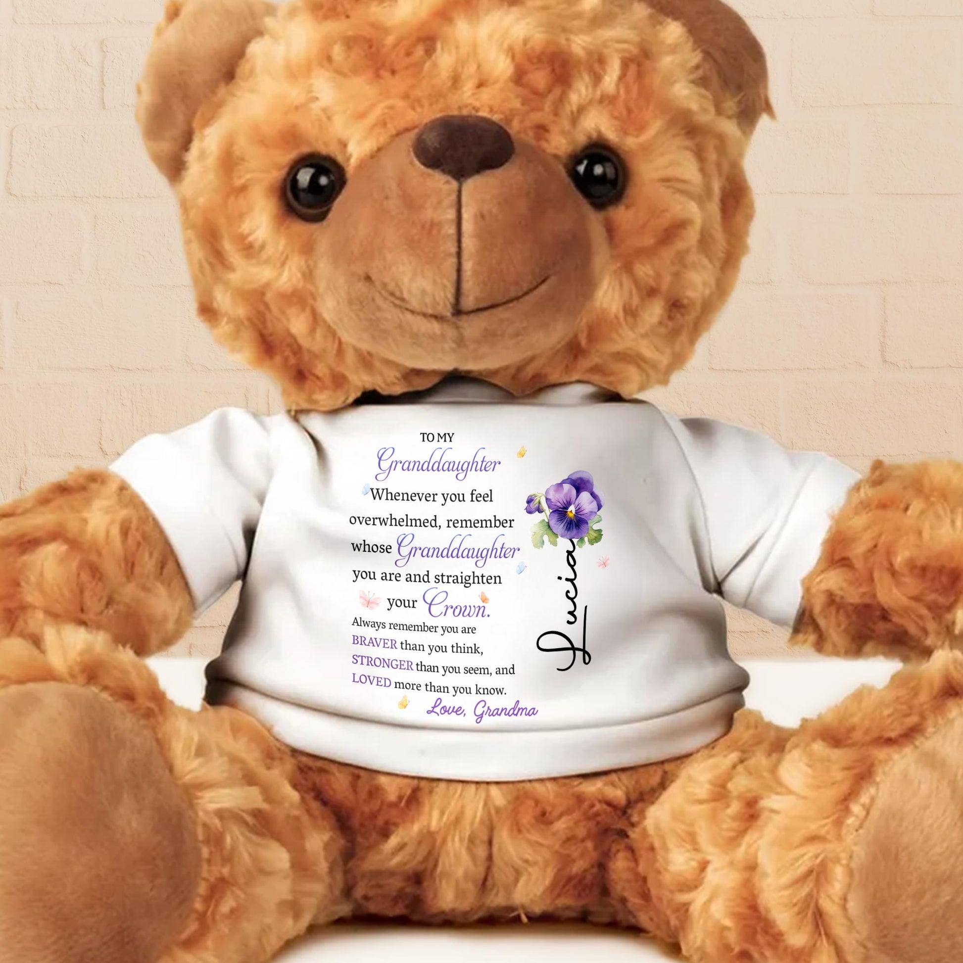 To My Granddaughter, Whenever You Feel Overwhelmed Remember Whose Granddaughter You Are, Crown And Flower, Personalized Custom Cuddle Bear, Gift For Granddaughters