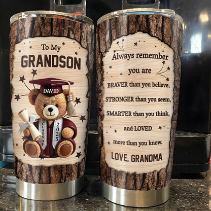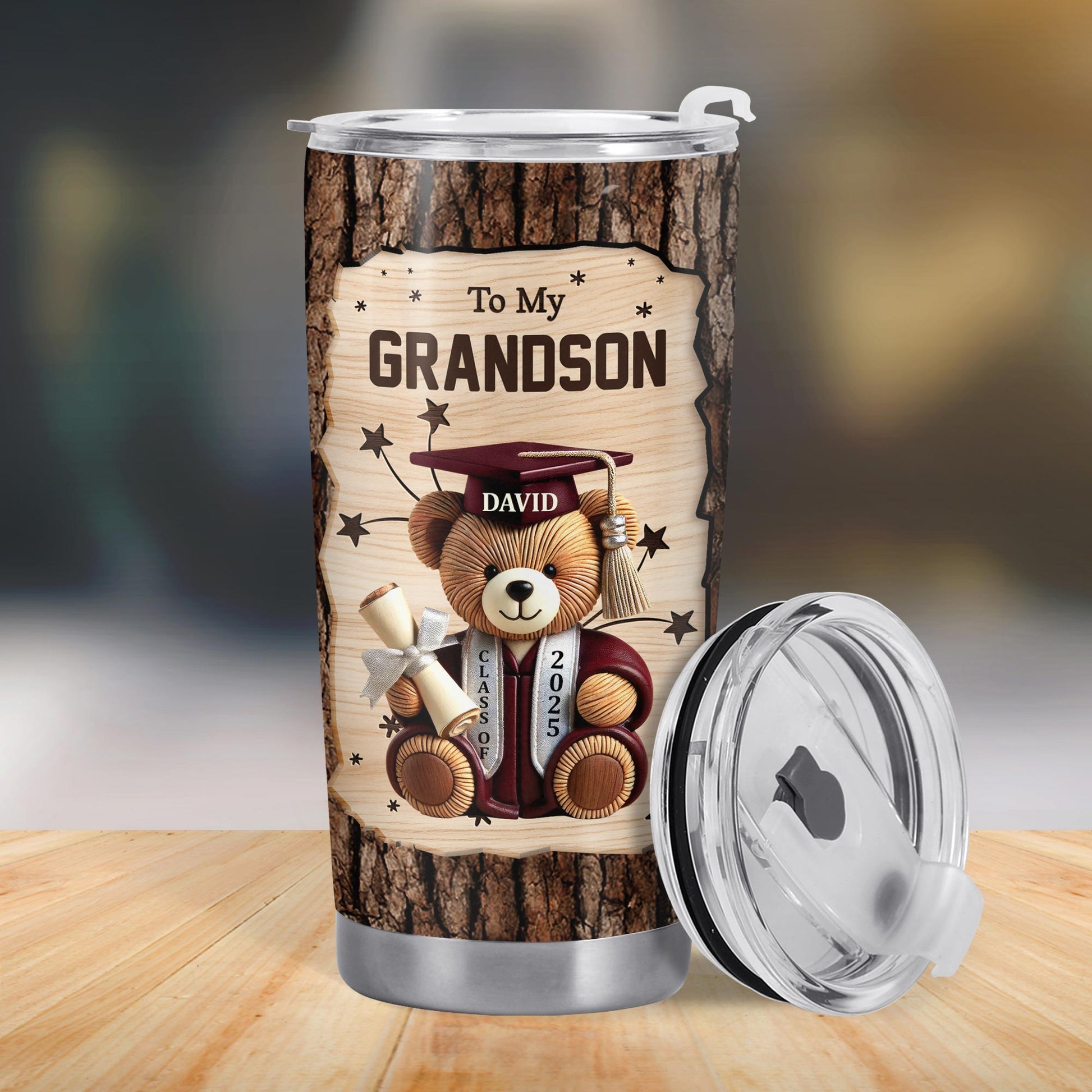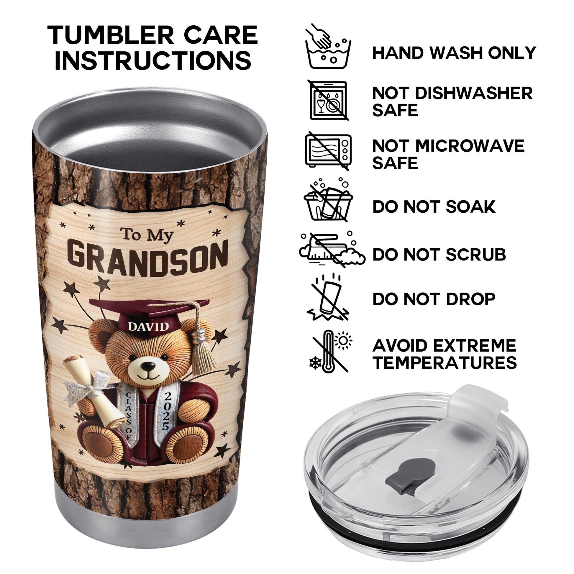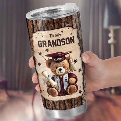 To My Grandson, Teddy Bear With Graduation Cap And Diploma, Personalized Custom Stainless Steel Tumbler 20oz 30oz, Gift For Grandsons