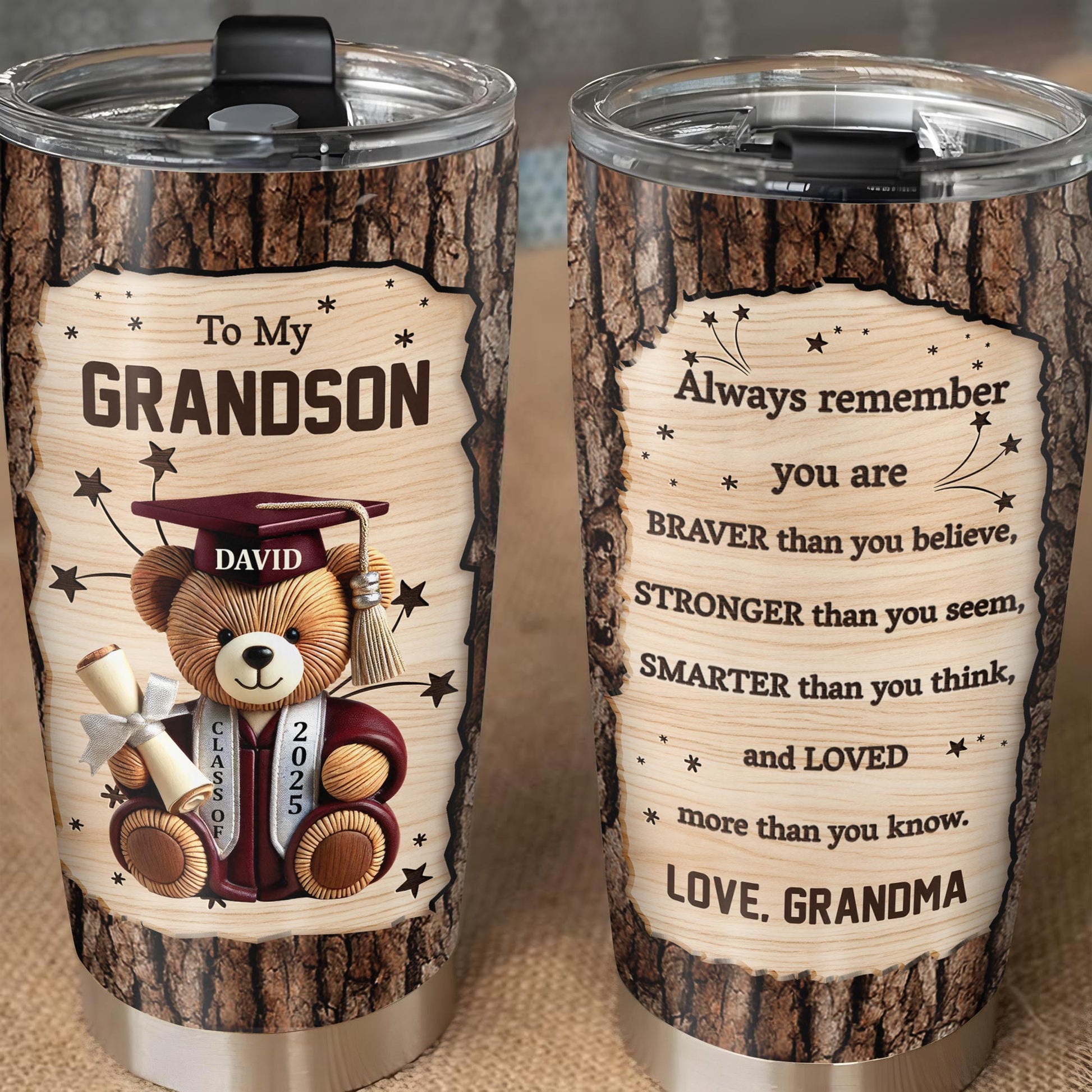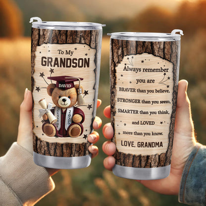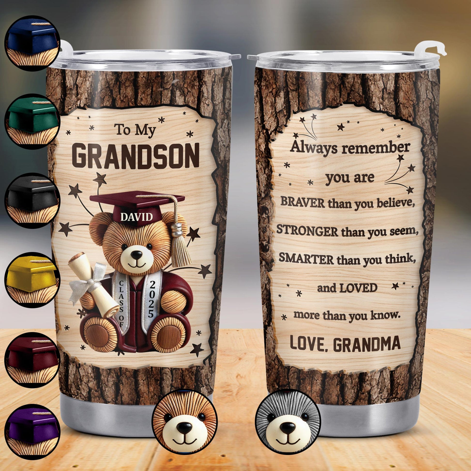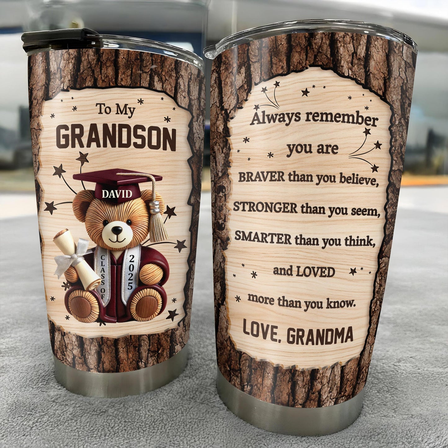 To My Grandson, Teddy Bear With Graduation Cap And Diploma, Personalized Custom Stainless Steel Tumbler 20oz 30oz, Gift For Grandsons