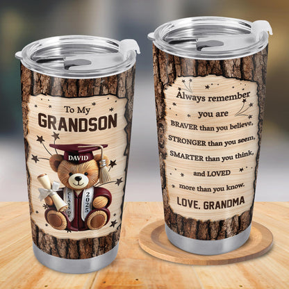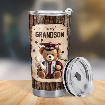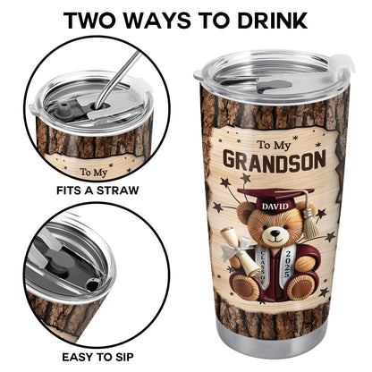To My Grandson, Teddy Bear With Graduation Cap And Diploma - Personalized Custom Stainless Steel Tumbler 20oz 30oz - GRAD320_TB