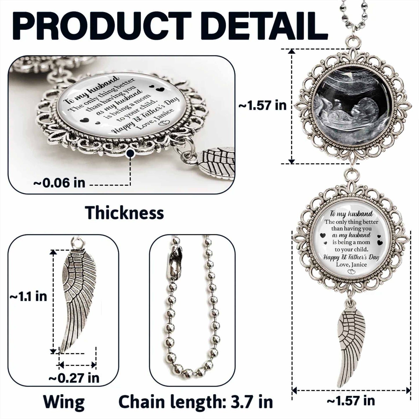 To My Husband, Being A Mom To Your Child, Angel Wing and Pendant Charm, Personalized Hanging Ornament With Angel Wing, Pendant Charm, Gift For Husbands and Fathers