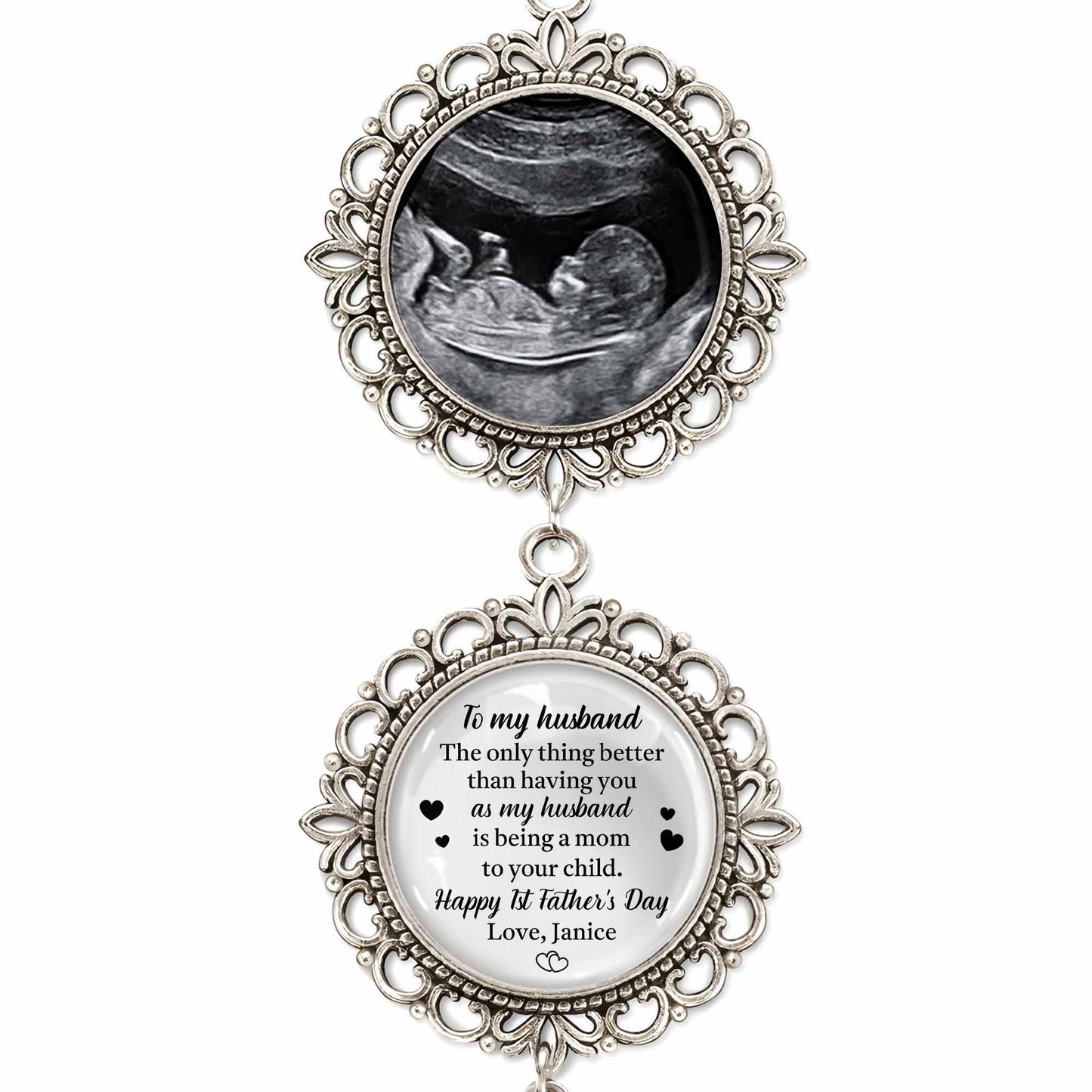 Message: To my husband, The only thing better than having you as my husband is being a mom to your child. Happy 1st Father's Day, Love, Janice
