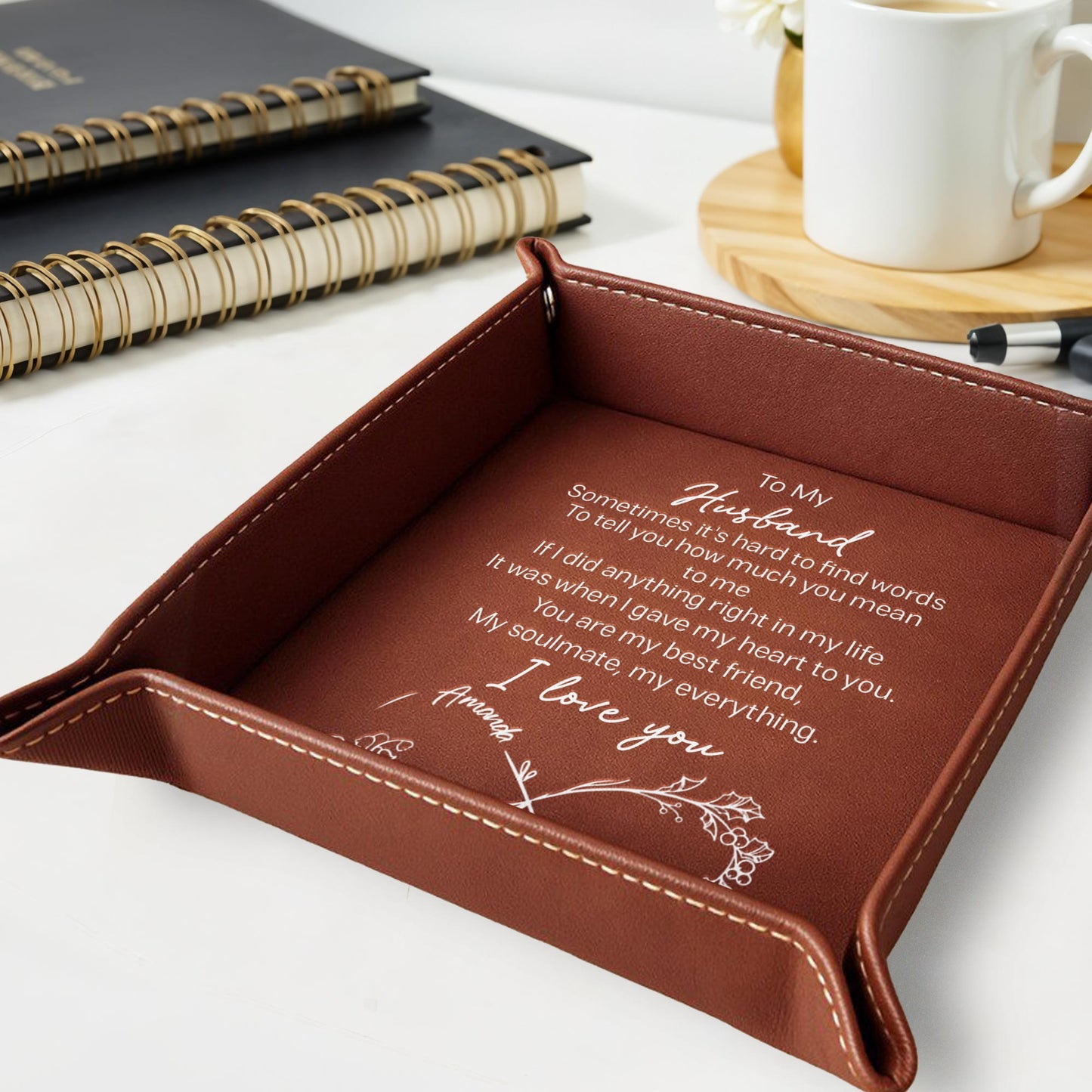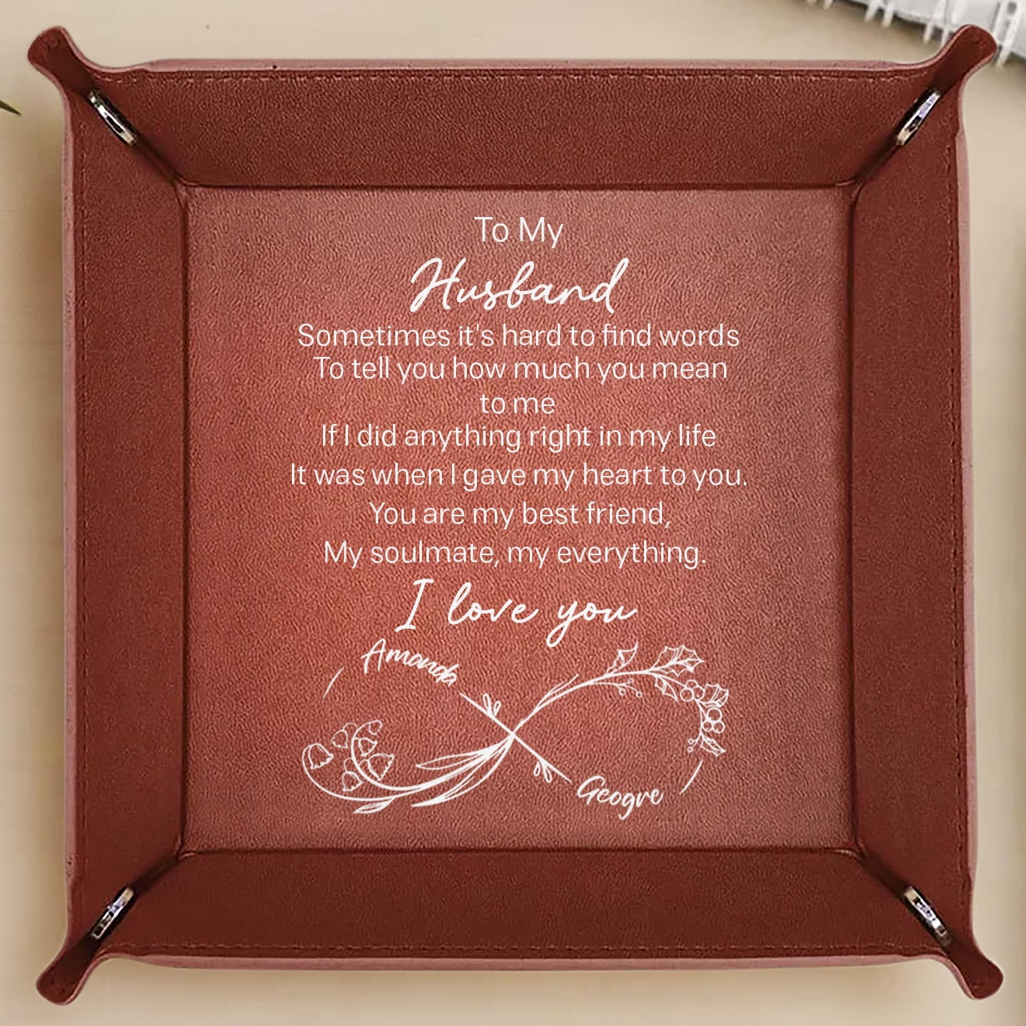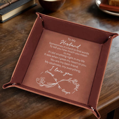 To My Husband, Heart And Roses Expression, Personalized Leather Tray, Gift For Spouse