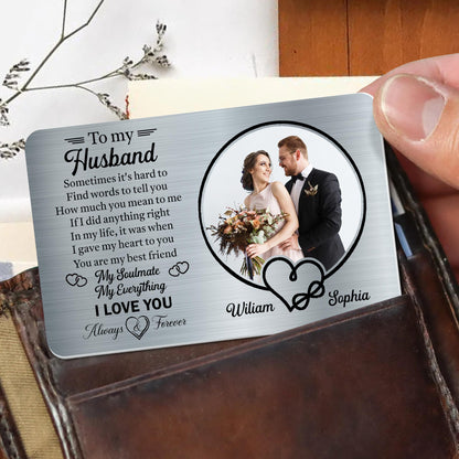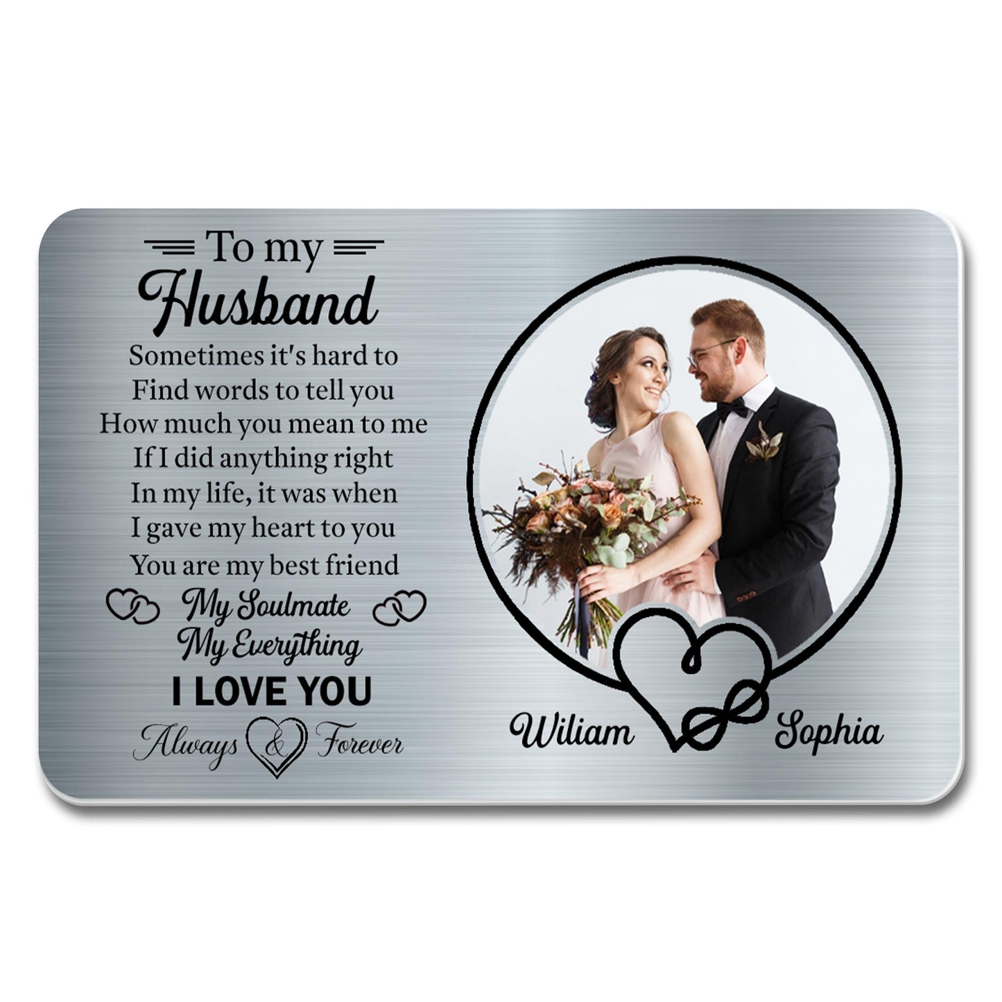 To My Husband, Sometimes It's Hard To Find Words, Personalized Aluminum Wallet Card, Gift For Husband
