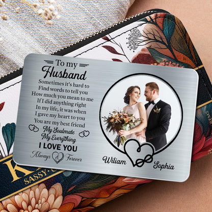 To My Husband, Sometimes It's Hard To Find Words, Hearts and Wedding Photo - Personalized Aluminum Wallet Card - HSB015_ALCA