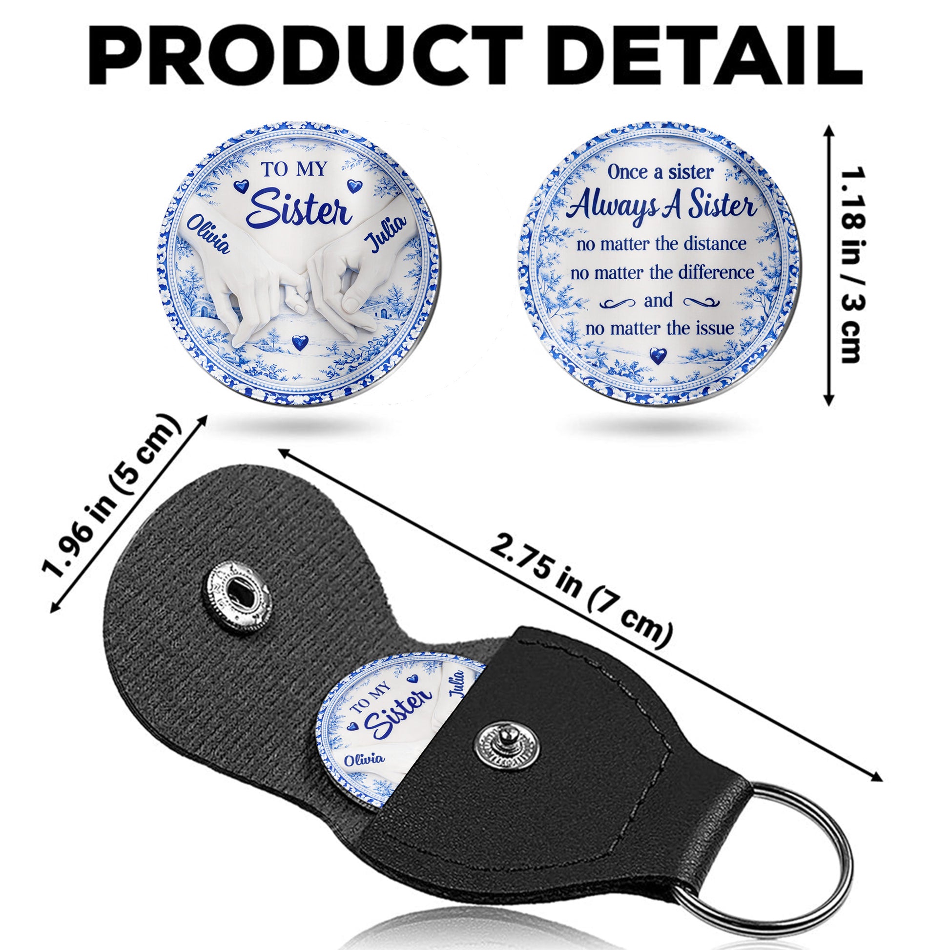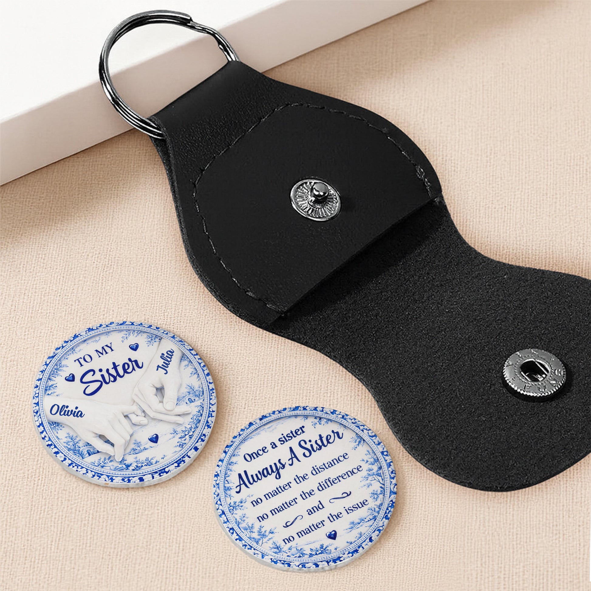 Send comfort they can carry anywhere with our Pocket Hug. This palm-sized keepsake pairs a stainless steel token with a PU leather sleeve, customized on both sides—perfect for pockets, wallets, or bags.