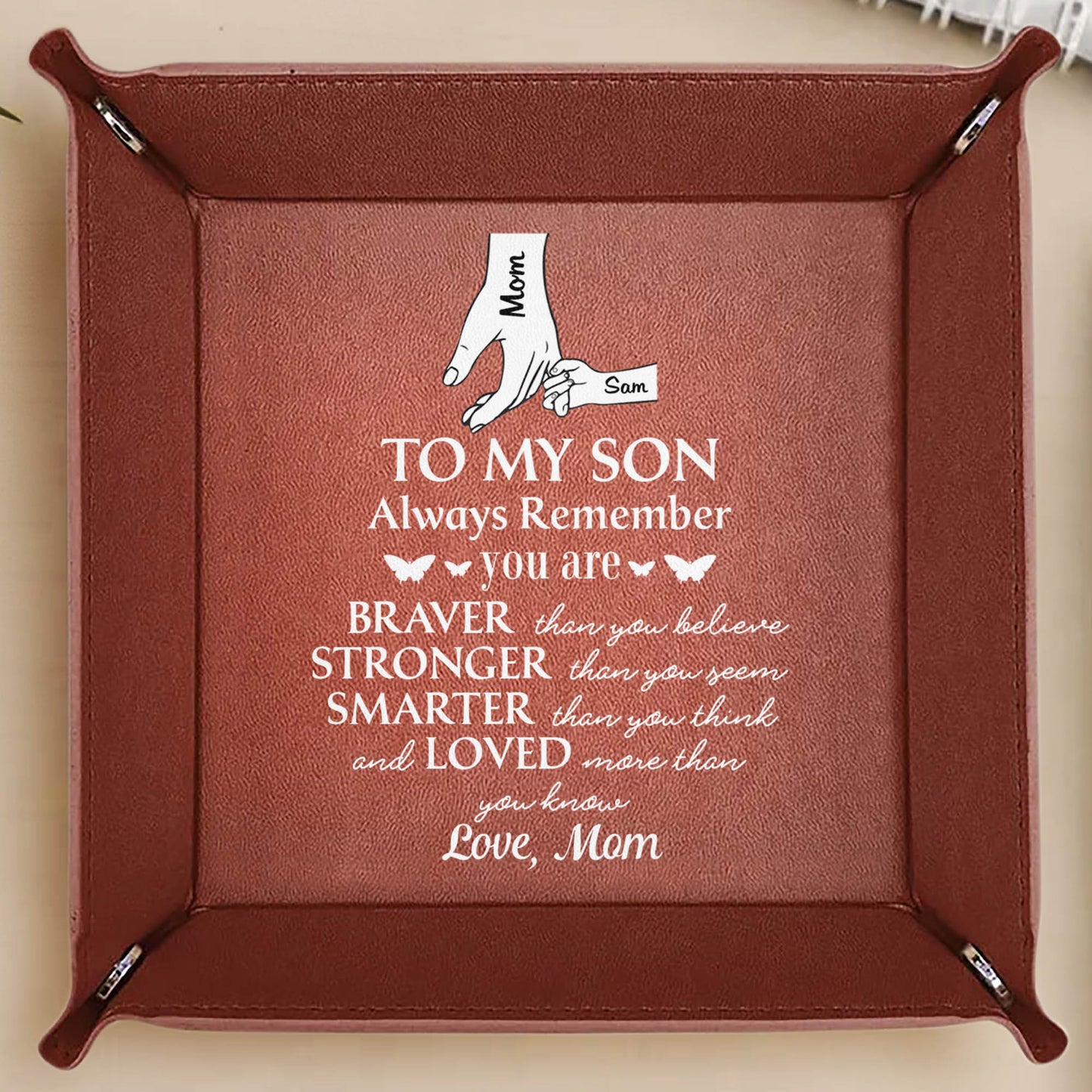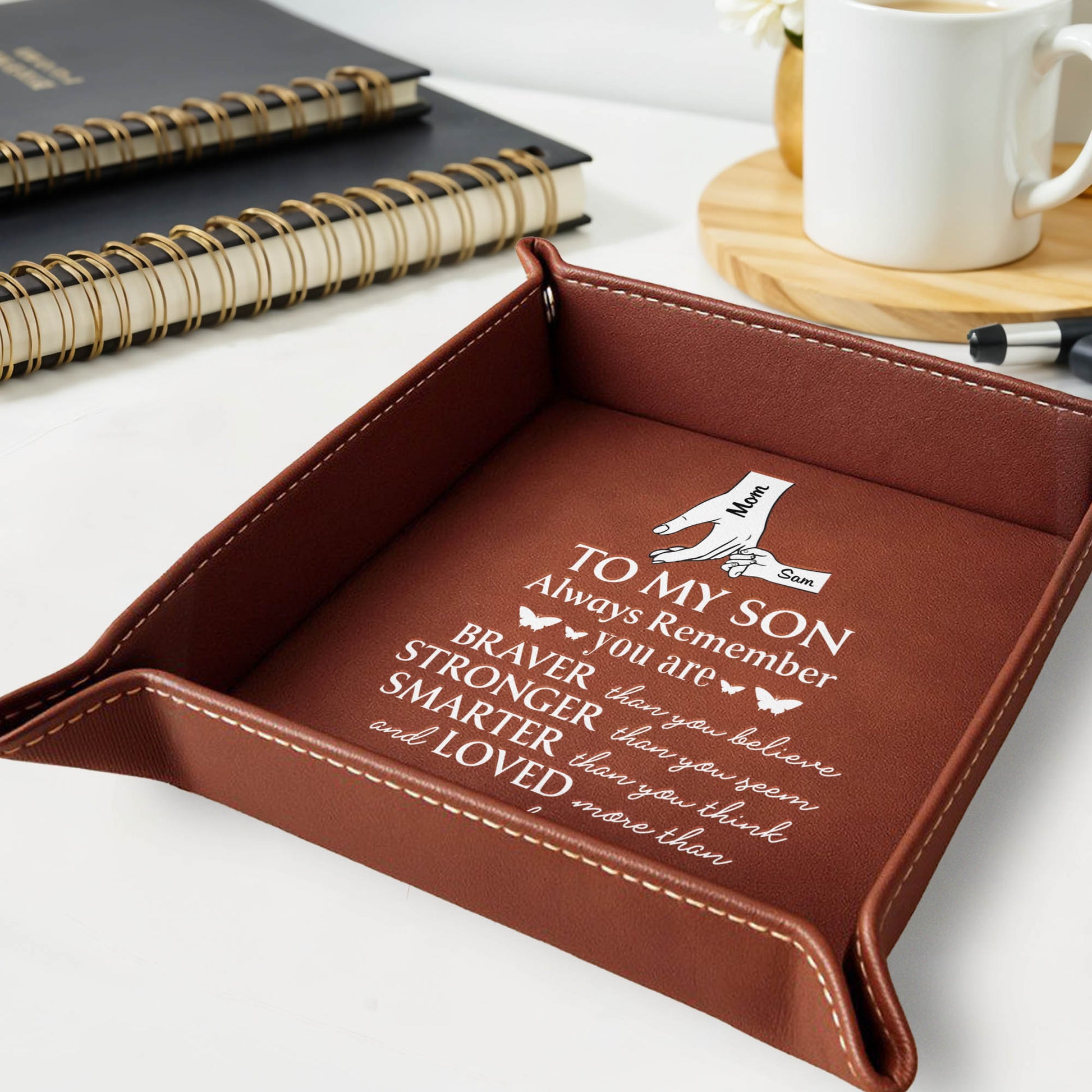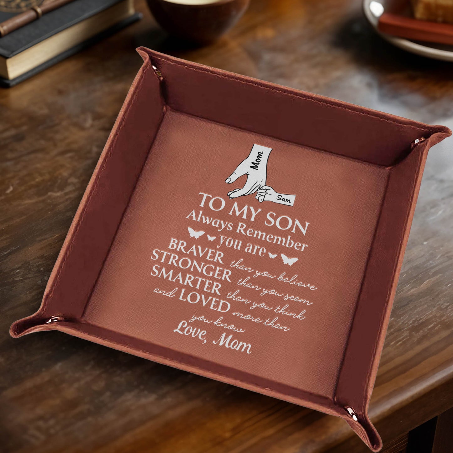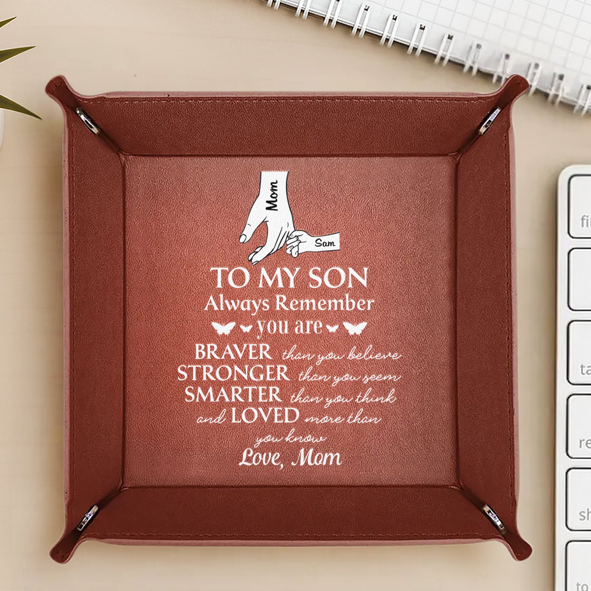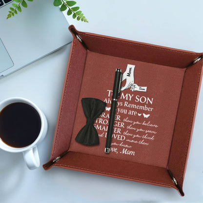 To My Son Always Remember, Hands and Hearts - Personalized Leather Valet Tray - SON051_LTRAY