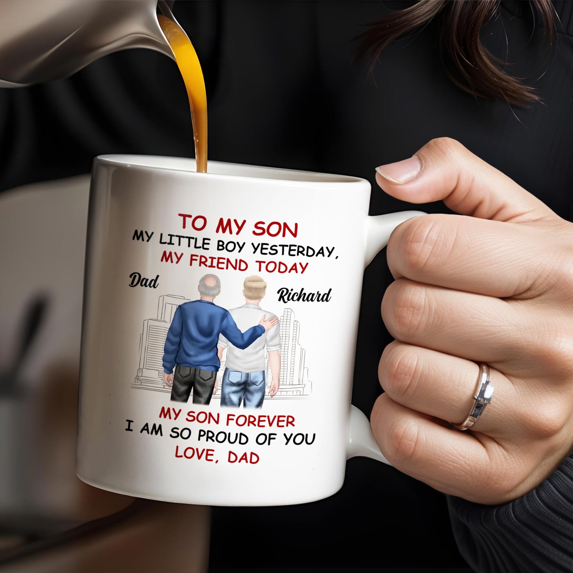 To My Son My Little Boy Yesterday, My Friend Today, Personalized Custom Coffee Mug, Gift For Sons