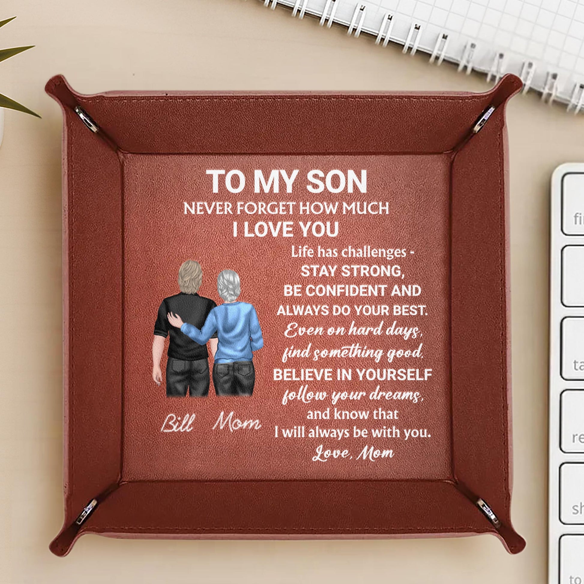 To My Son, Never Forget How Much I Love You, Personalized Leather Valet Tray, Gift For Son