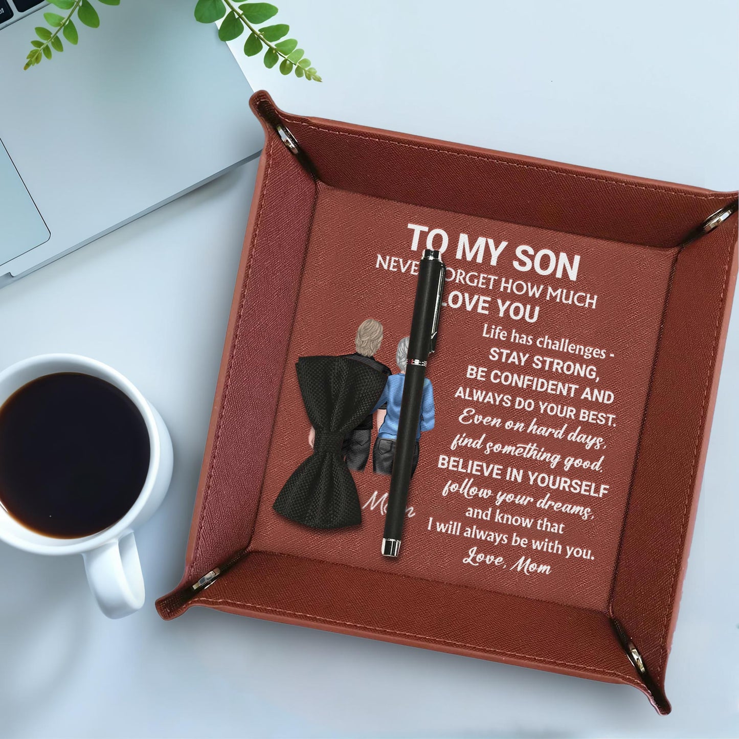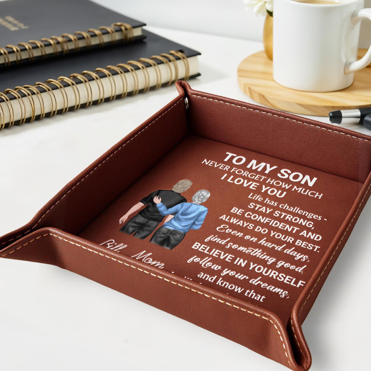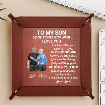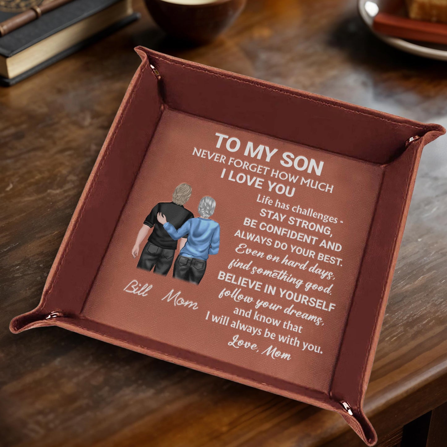 To My Son, Never Forget How Much I Love You - Personalized Leather Valet Tray - SON050_LTRAY