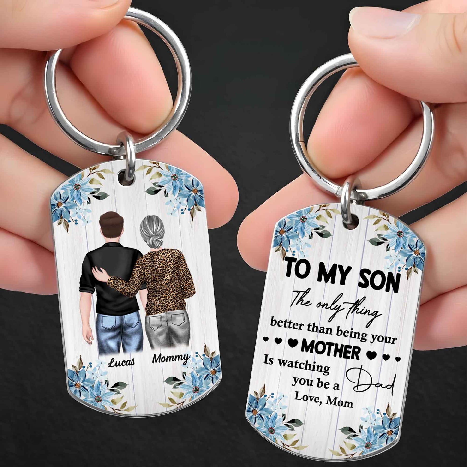 To My Son, The Only Thing Better Than Being Your Mother, Flowers and People, Personalized Stainless Steel Keychain, Gift For Sons and Dads