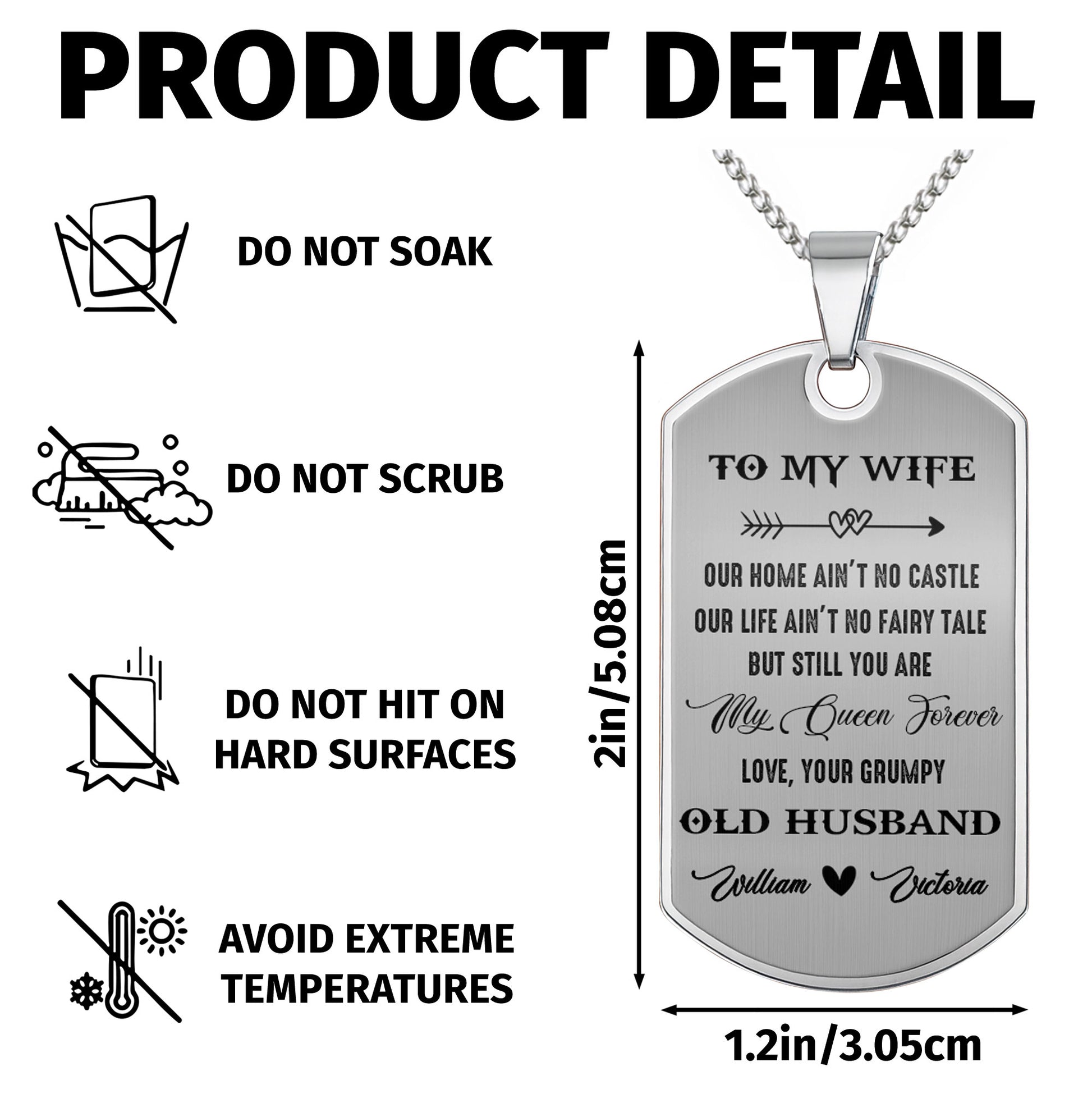 To My Wife You Are My Queen Forever Heart Arrow,Custom Dog Tag Necklace,Gift For Wife