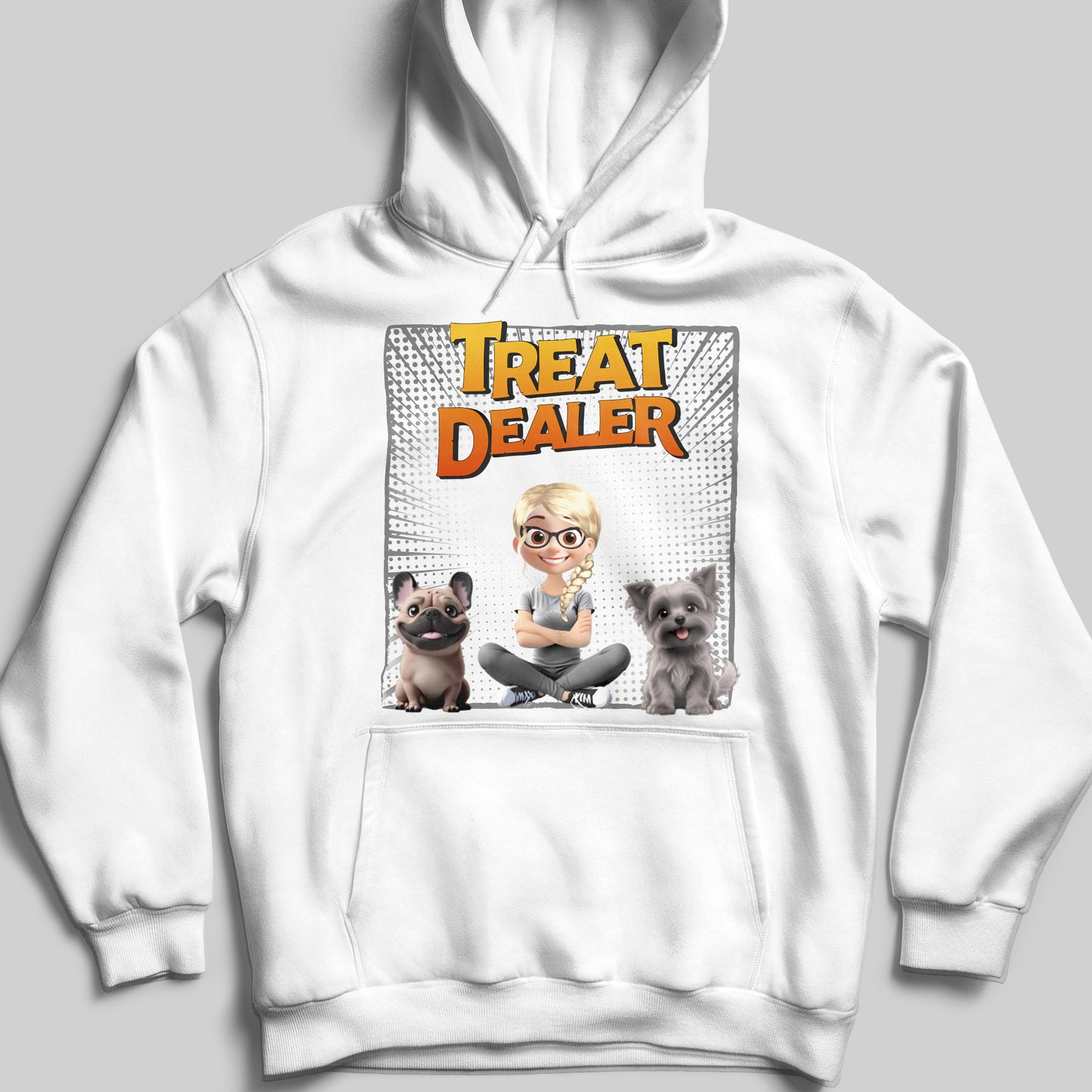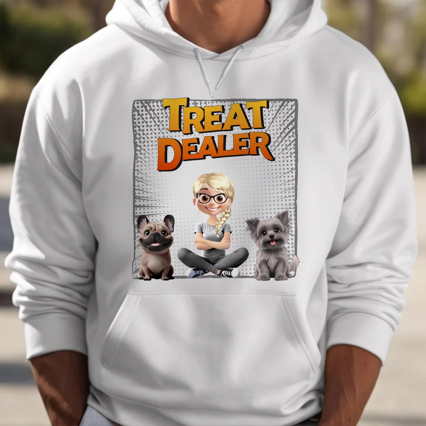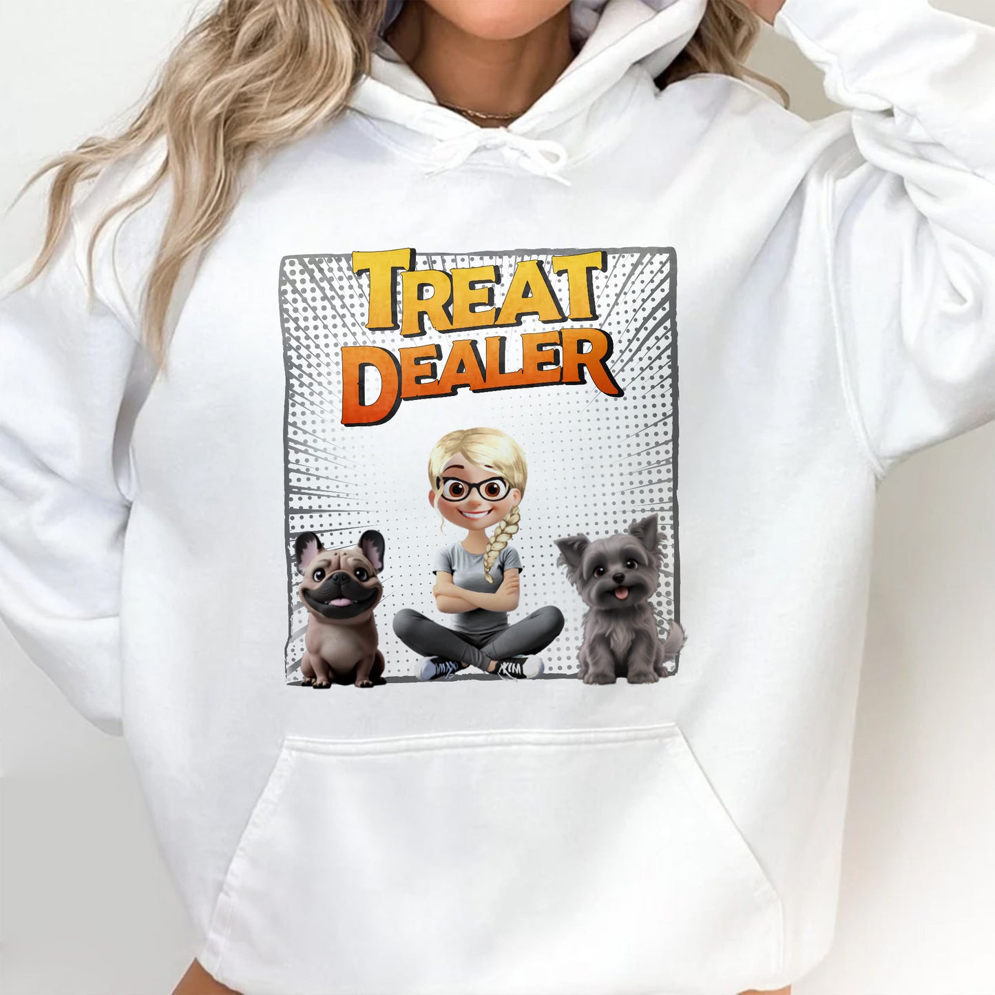 Treat Dealer With Cartoon Girl And Dogs - Personalized Custom Unisex T-shirt, Hoodie - DOG020_WBAS