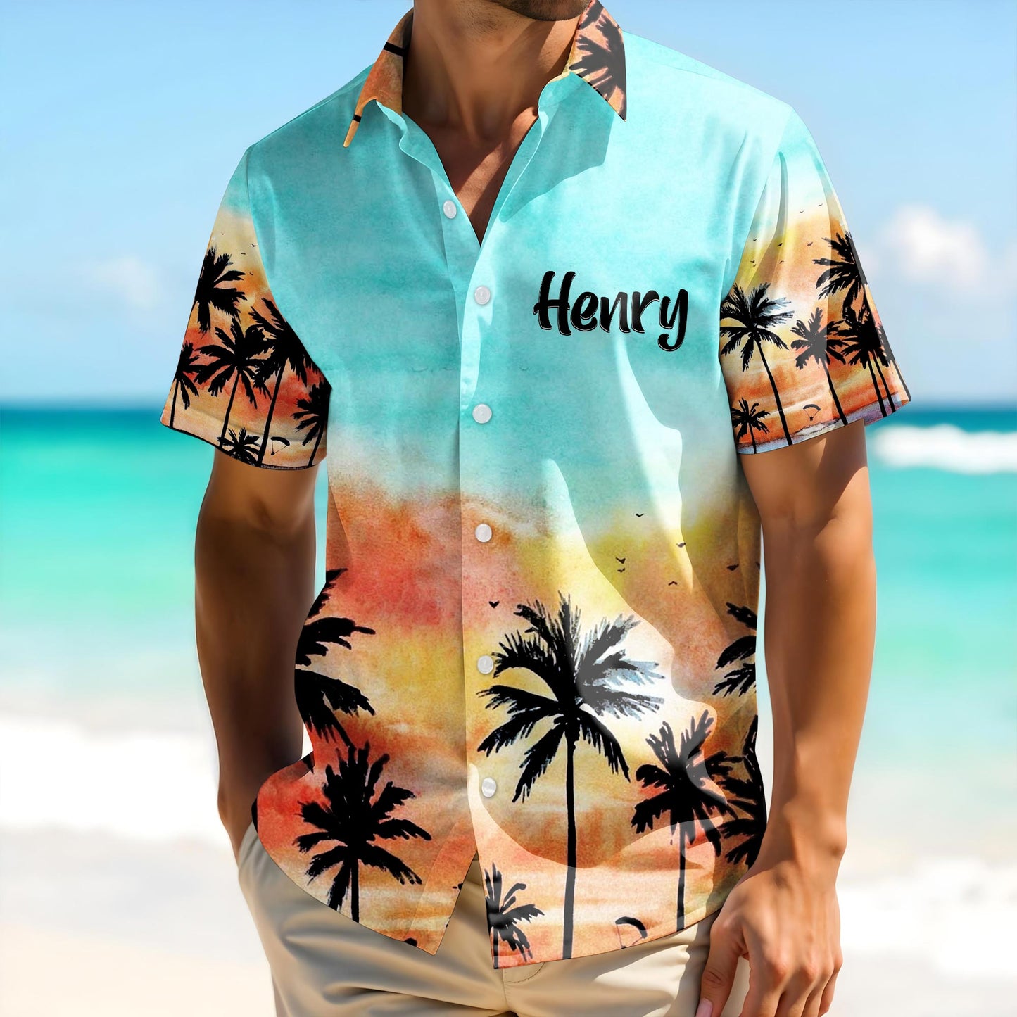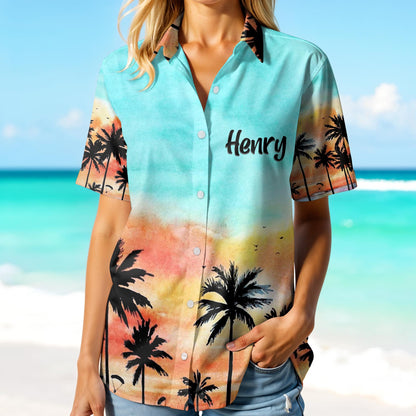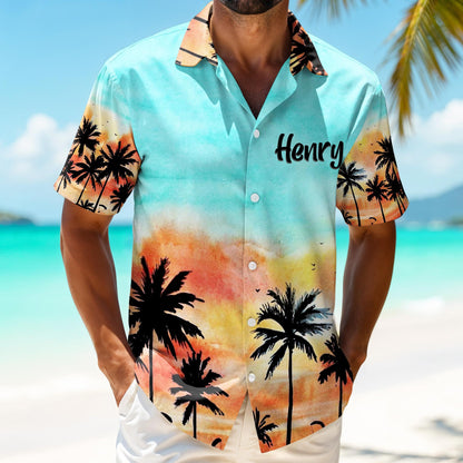 Tropical Palm Trees Sunset Design, Personalized Hawaiian Shirt, Gift For Travel And Beach Lovers