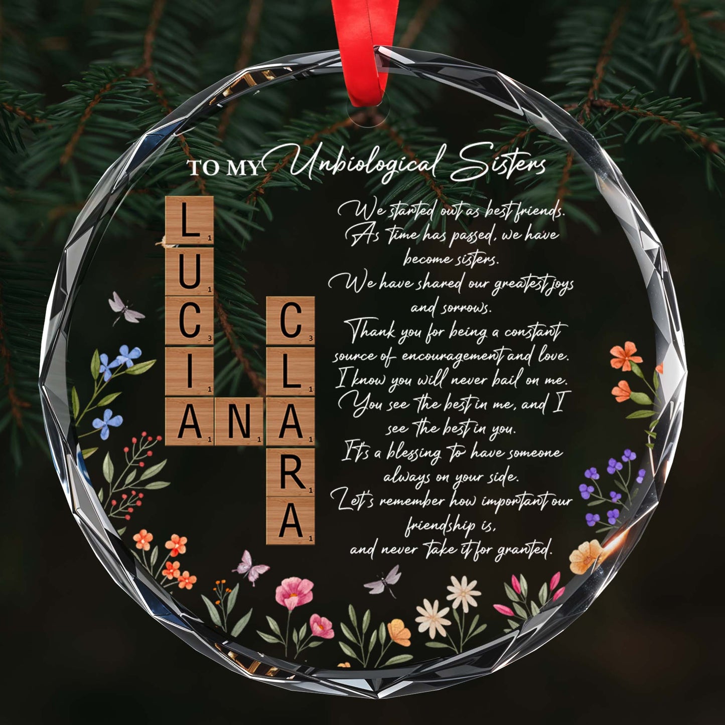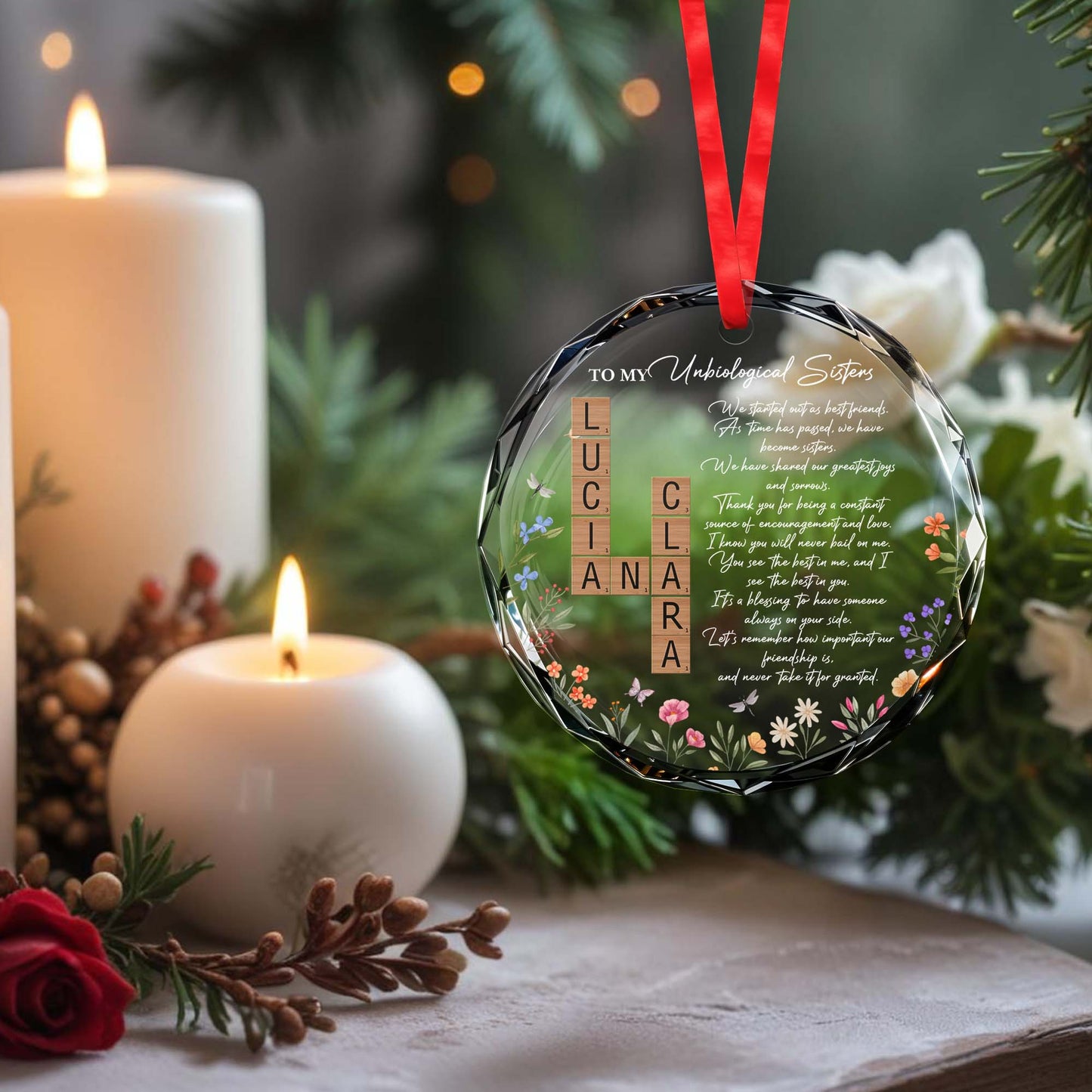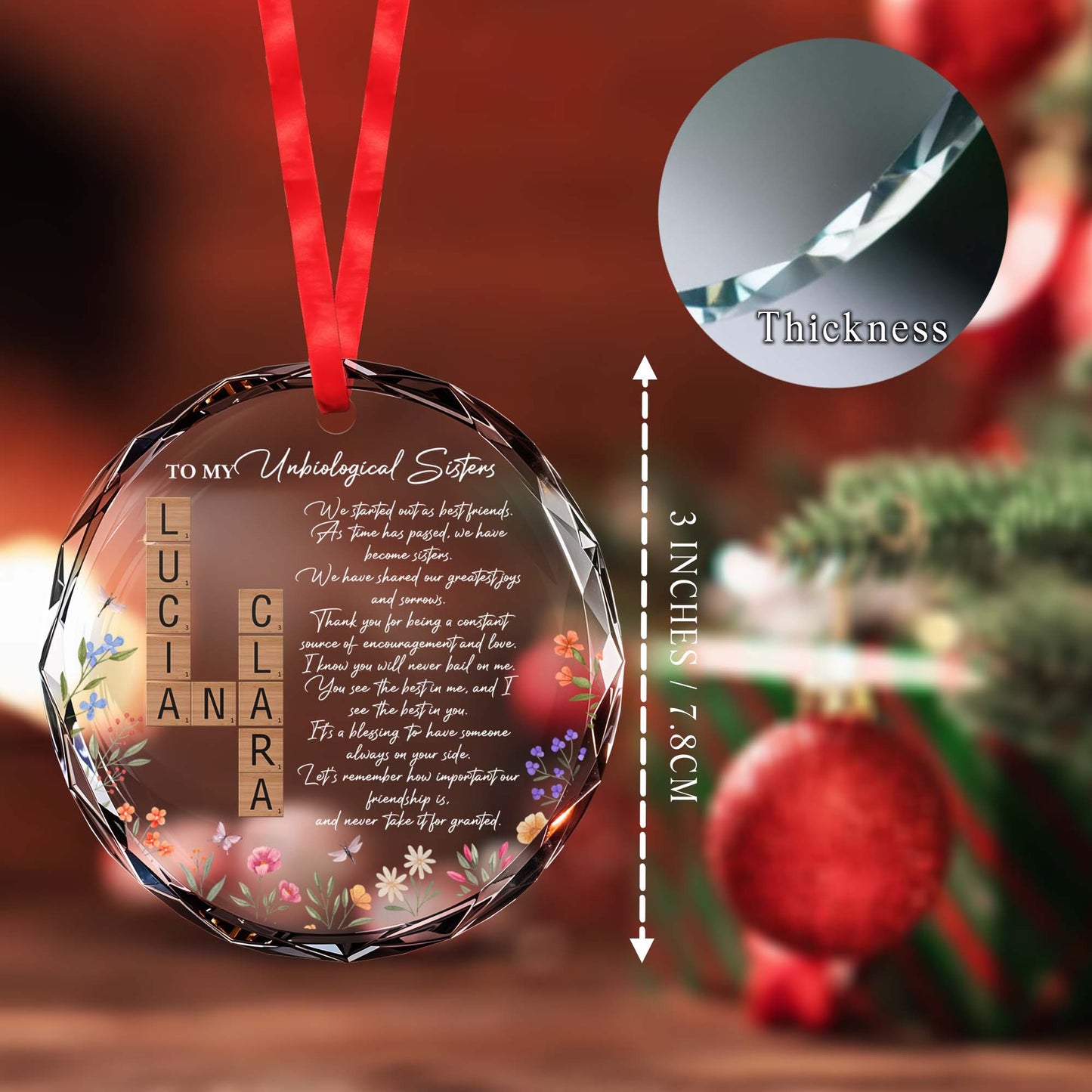 Unbiological Sisters Bond, Encouragement and Love - Personalized Custom Circle Glass Ornament - BST079_CGOR