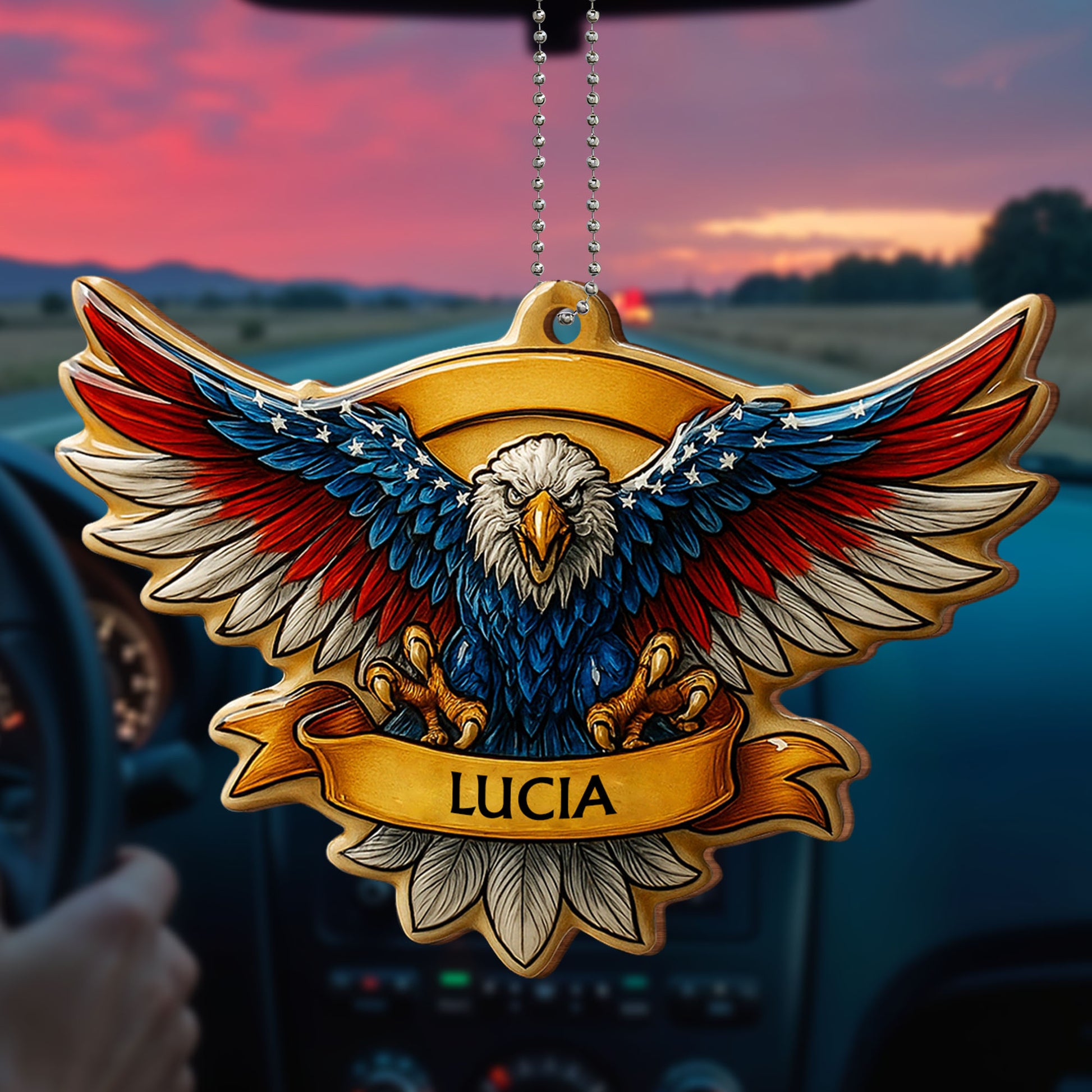 United States Bald Eagle With Flag Wings - Personalized Custom Wood Ornament, Car Hanging Ornament - INDE002_WCA