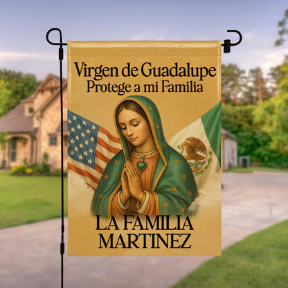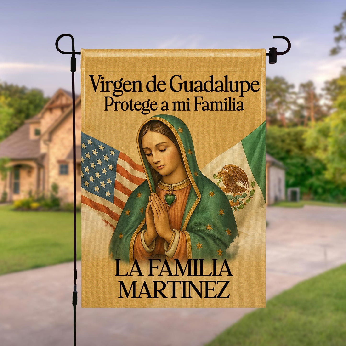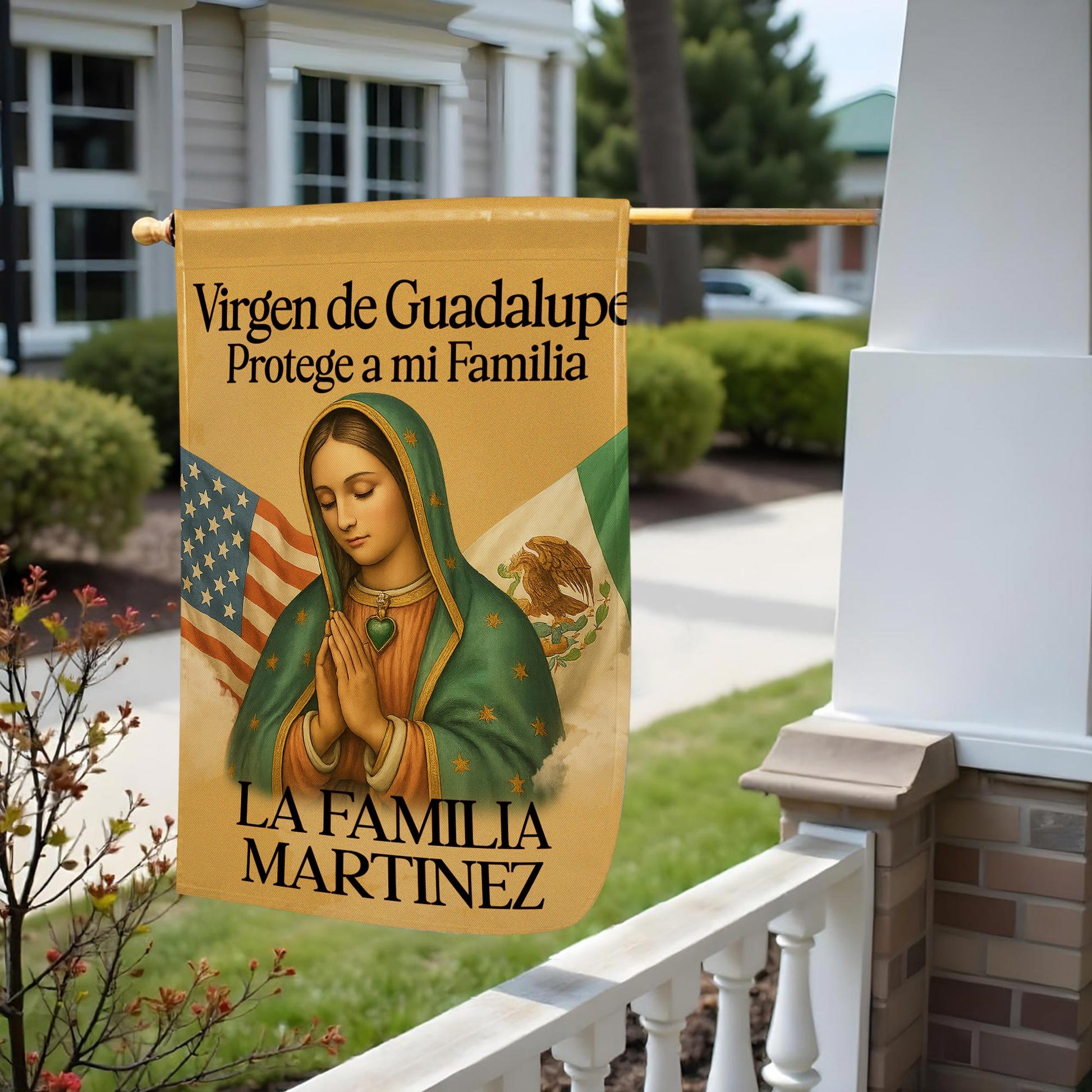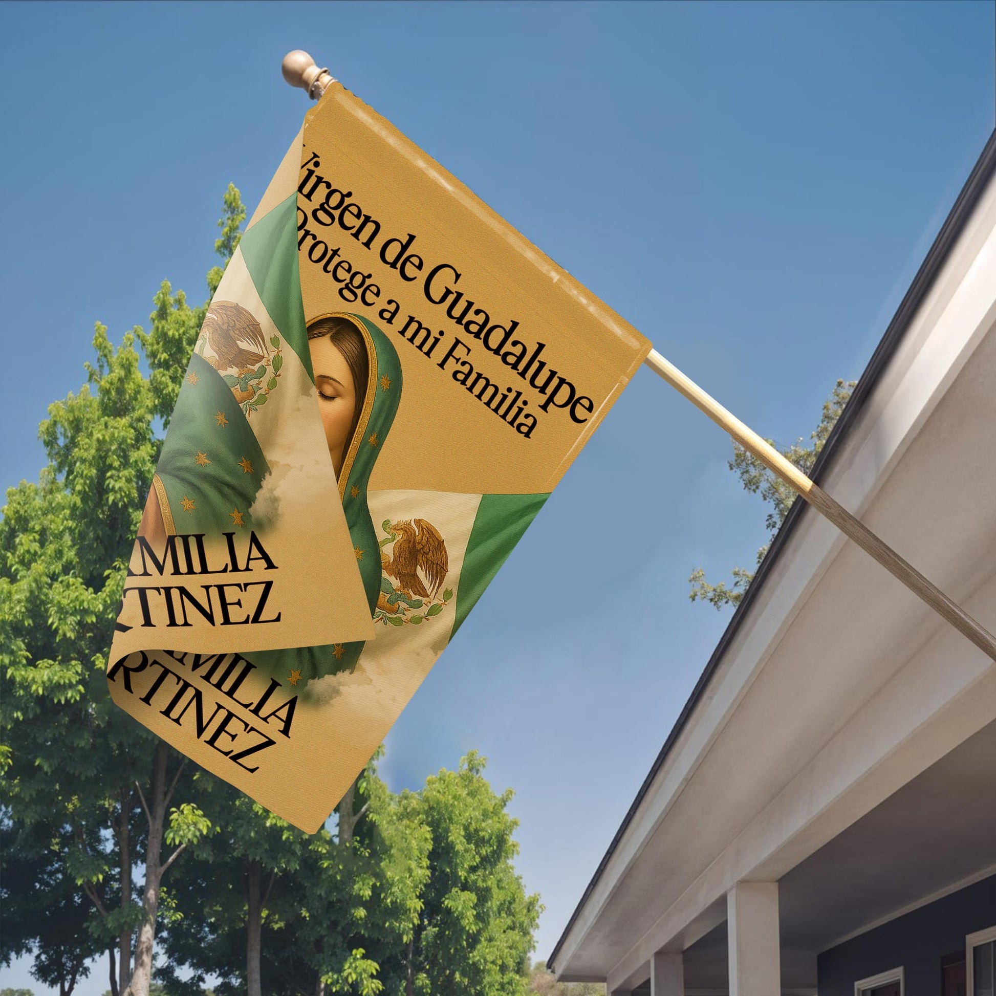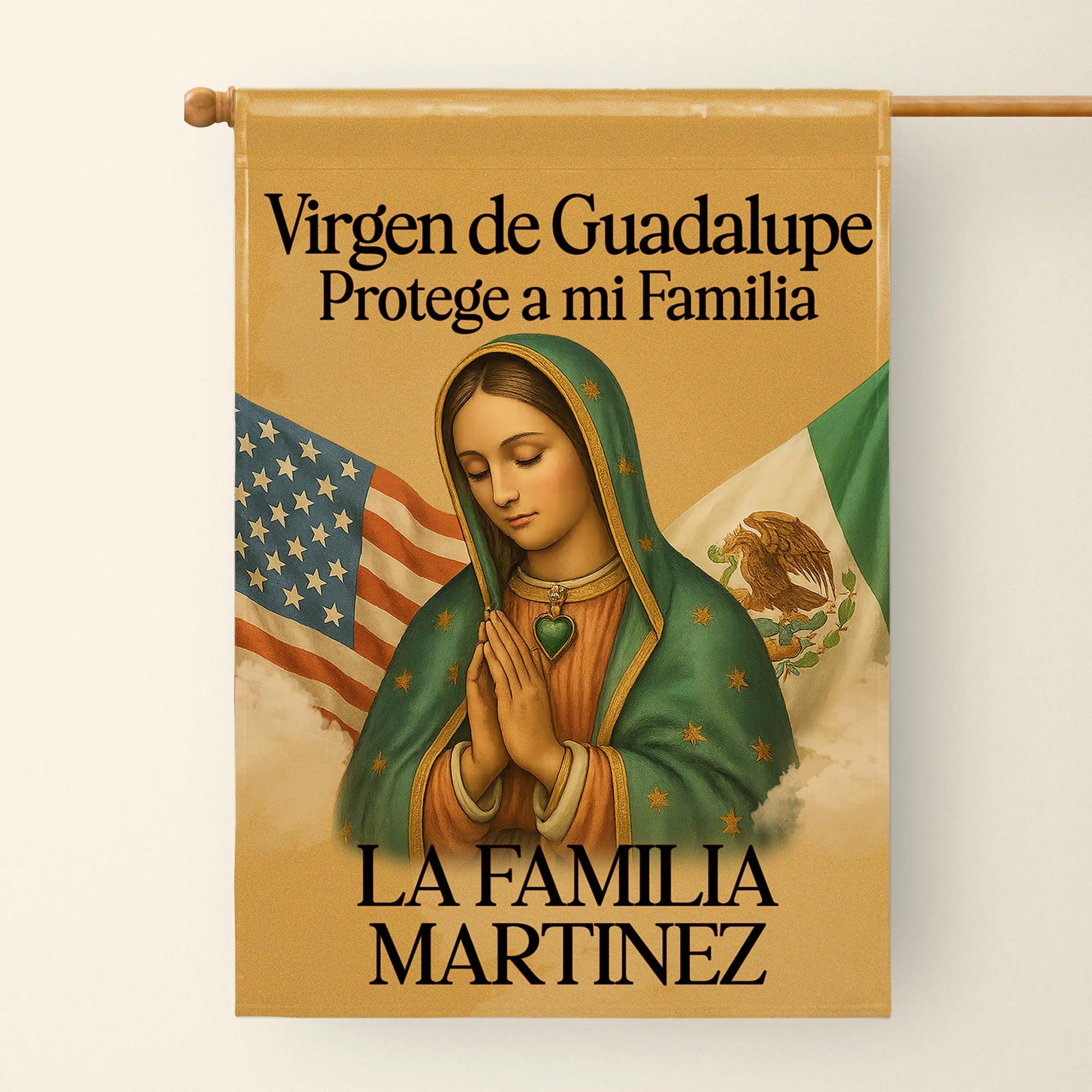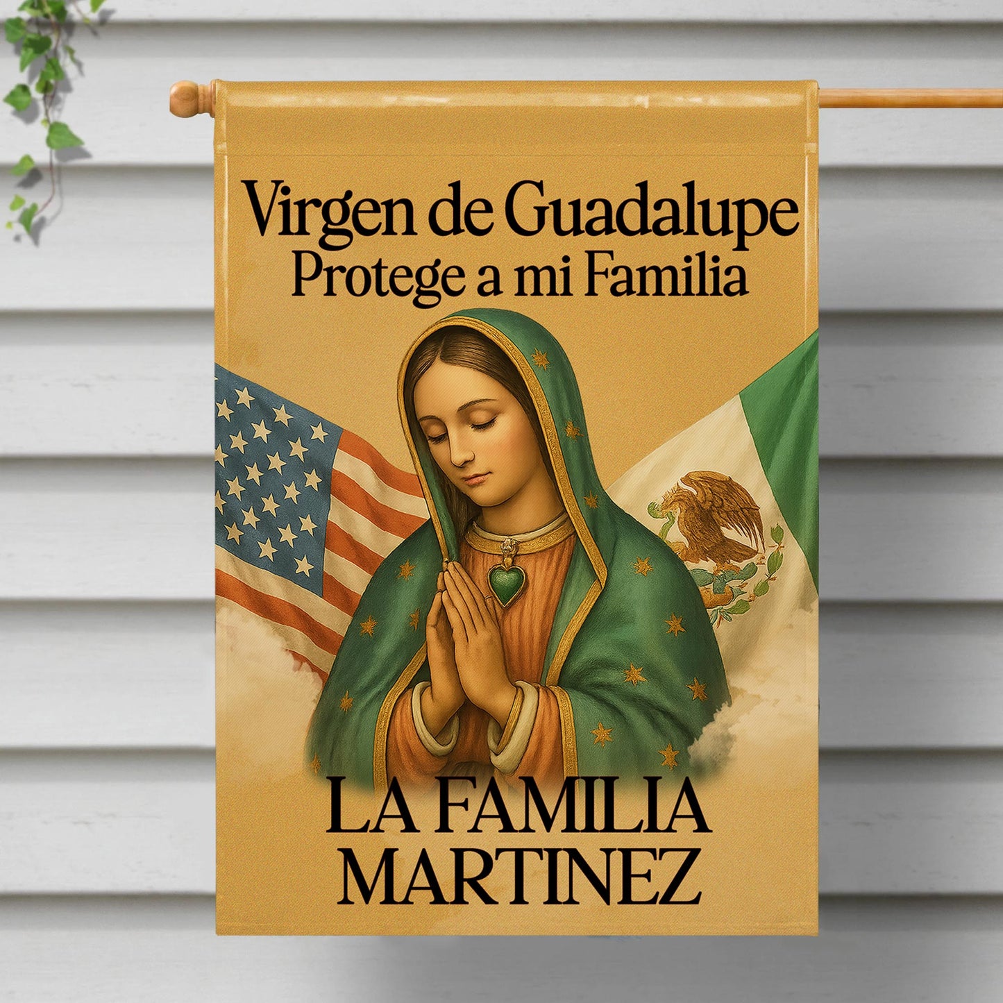 Virgen De Guadalupe Protege A Mi Familia, Personalized Flag, Gift For Religious Family