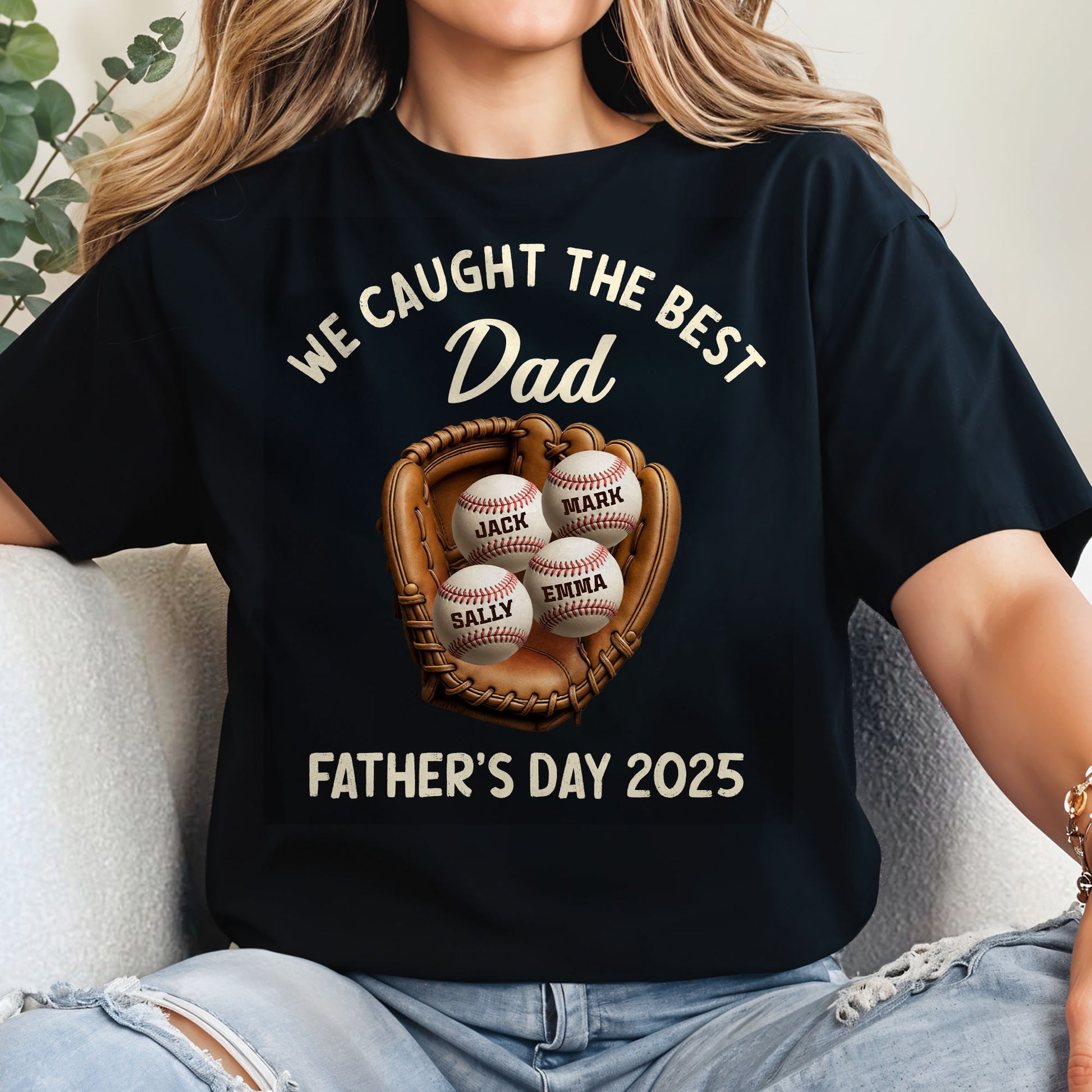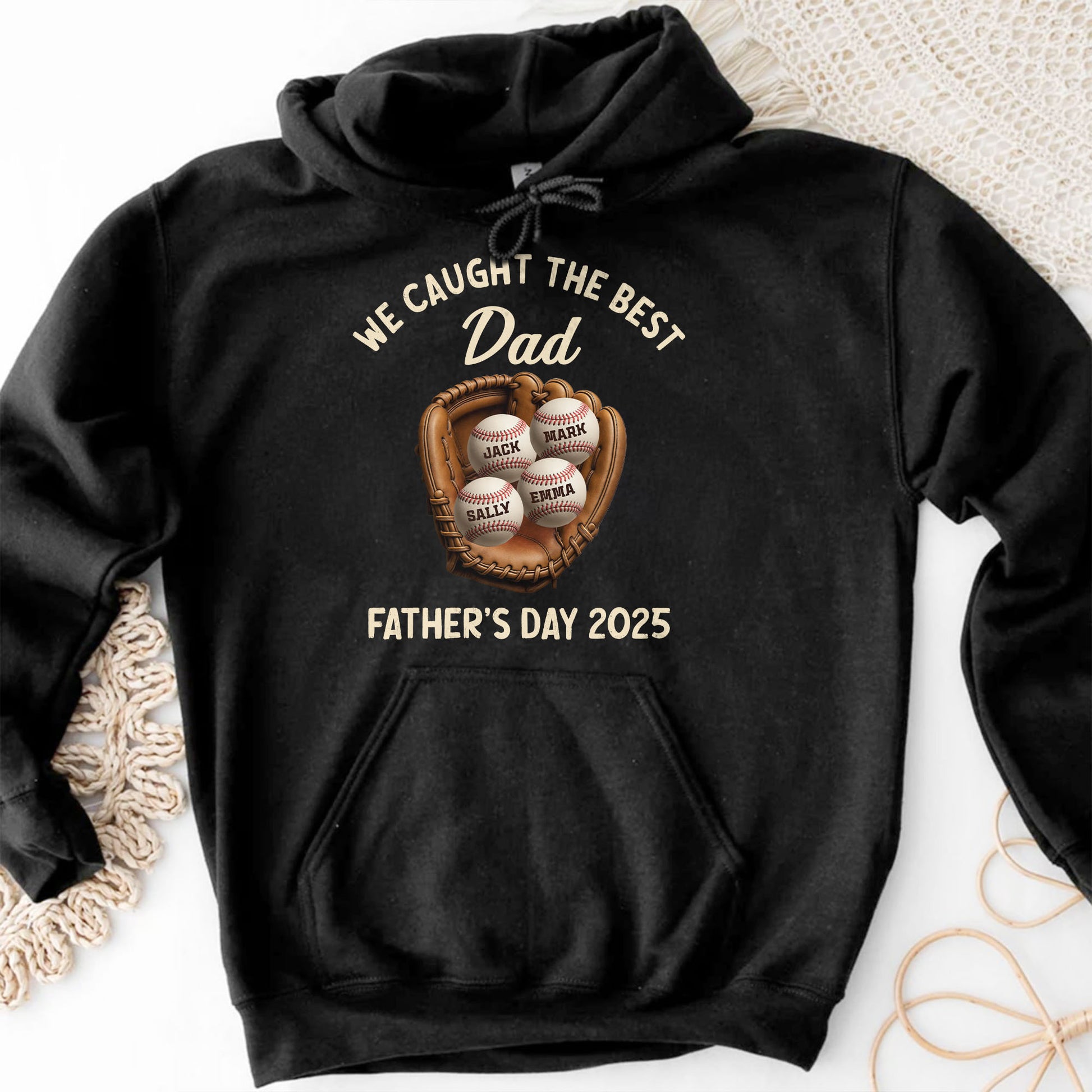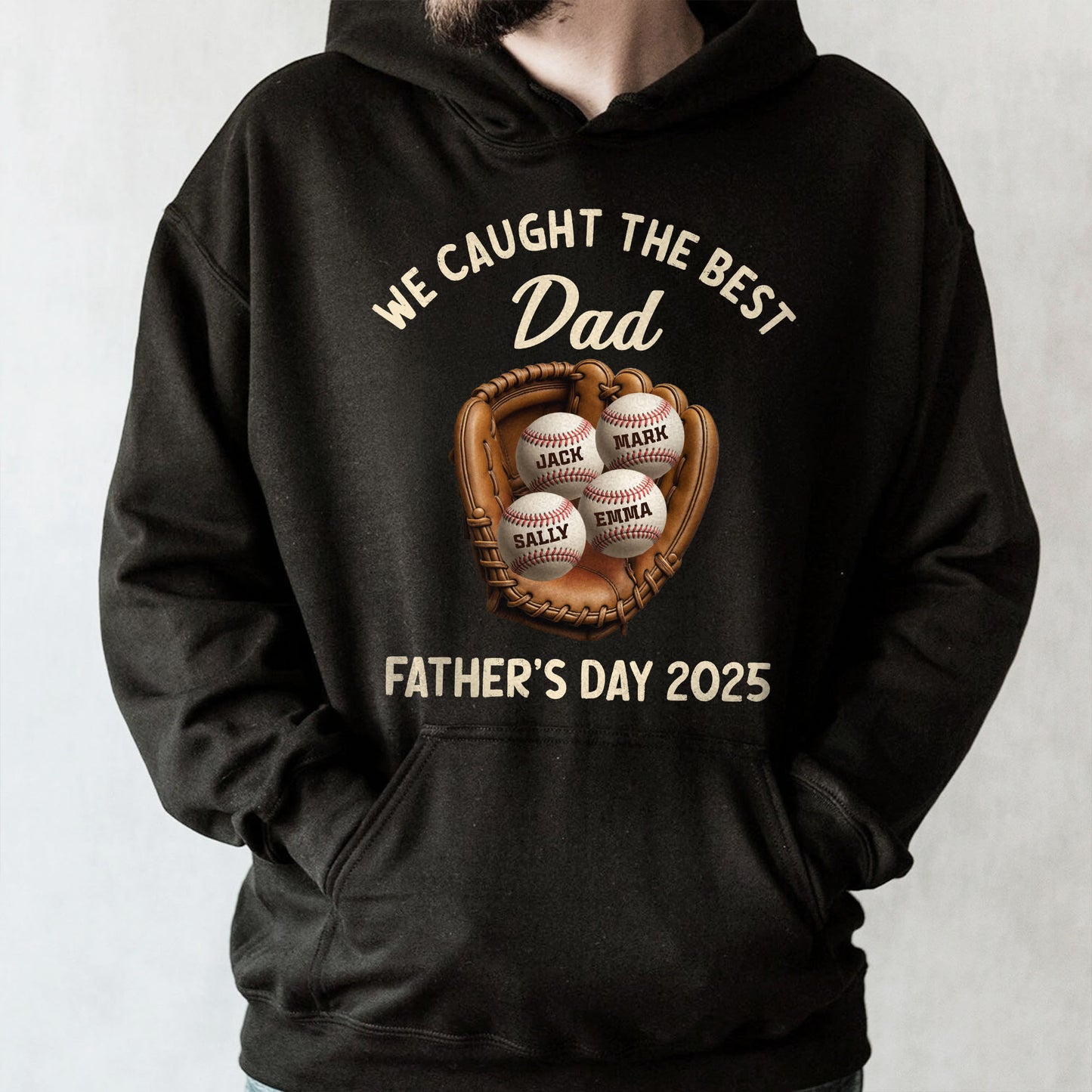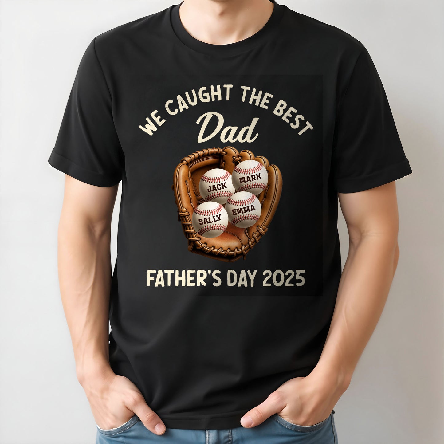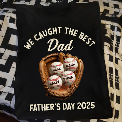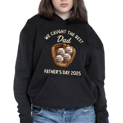 We Caught The Best Dad Father's Day 2025, Baseball And Glove - Personalized Custom Unisex T-shirt, Hoodie - SPORT002_BBAS