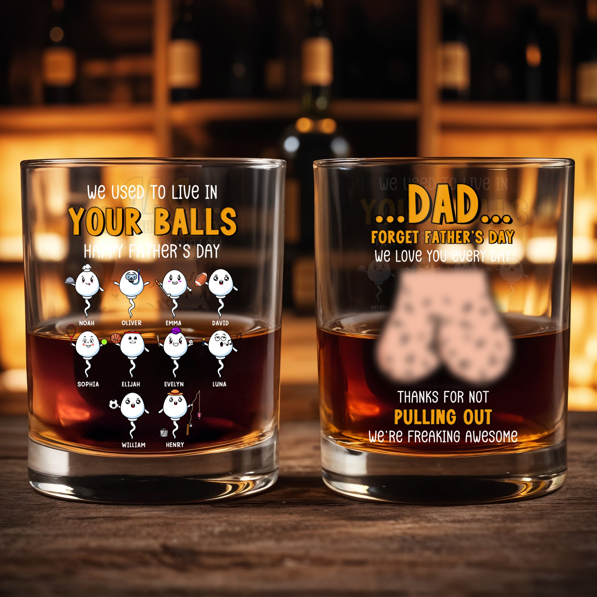 We Used To Live In Your Balls, Happy Father's Day, Personalized Custom Whiskey Glass, Gift For Dads
