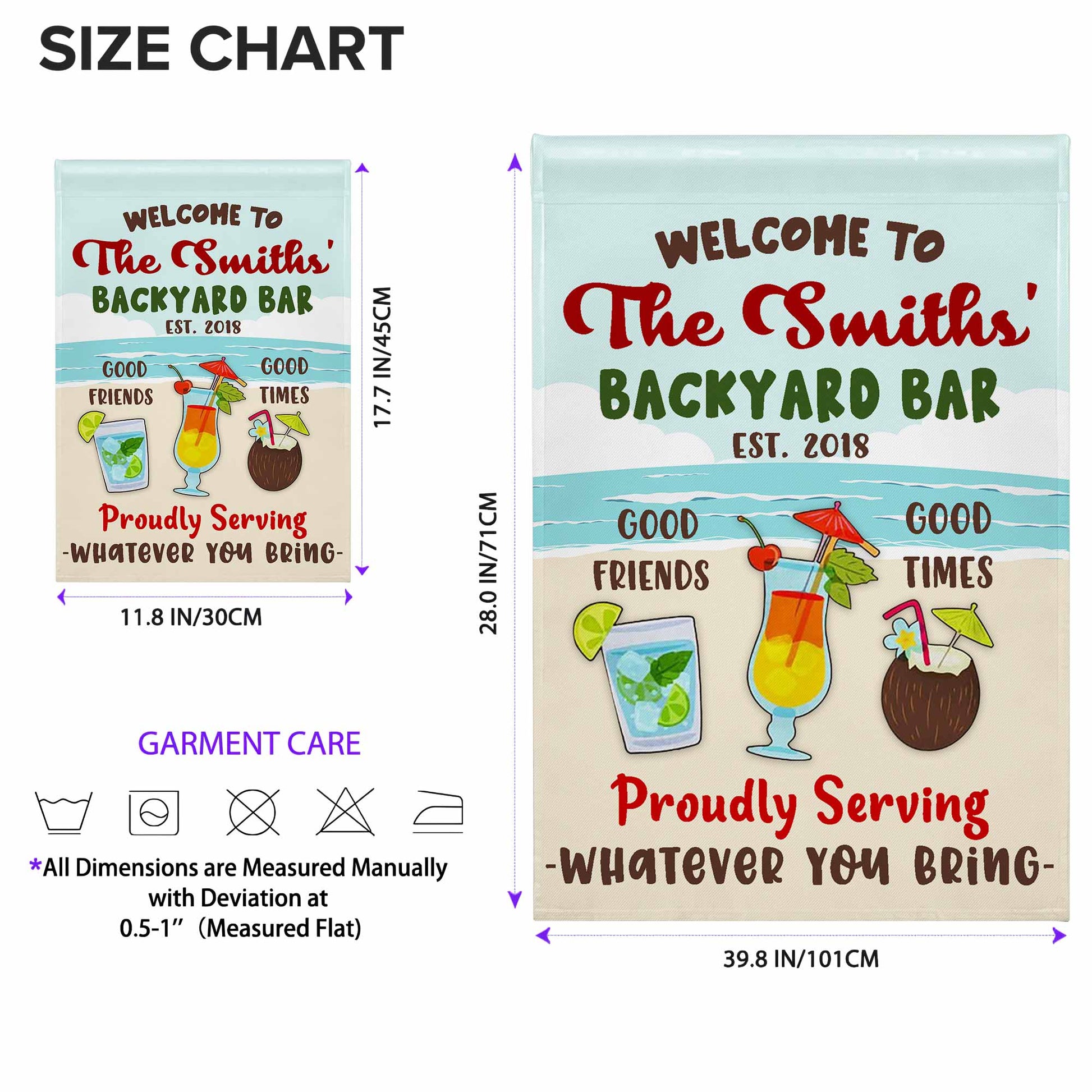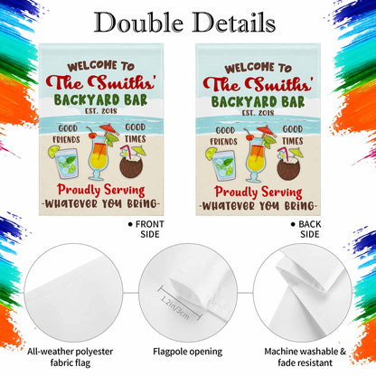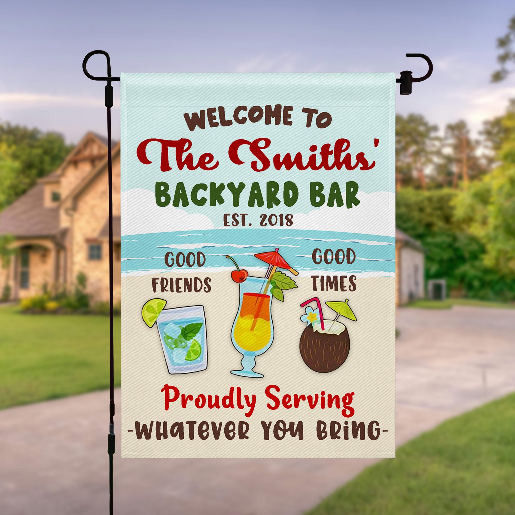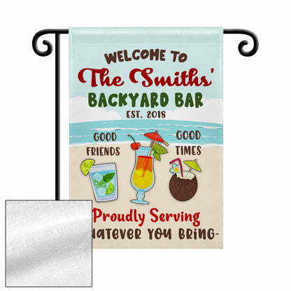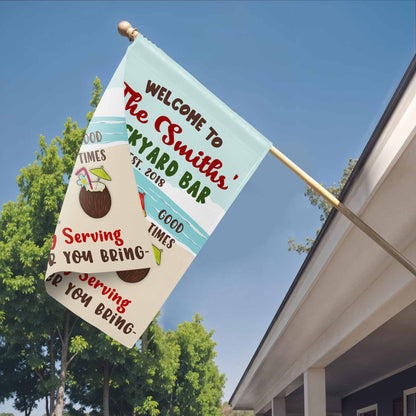 Welcome To The Backyard Bar, Proudly Serving Whatever You Bring - Personalized Flag - FAM414_GAF