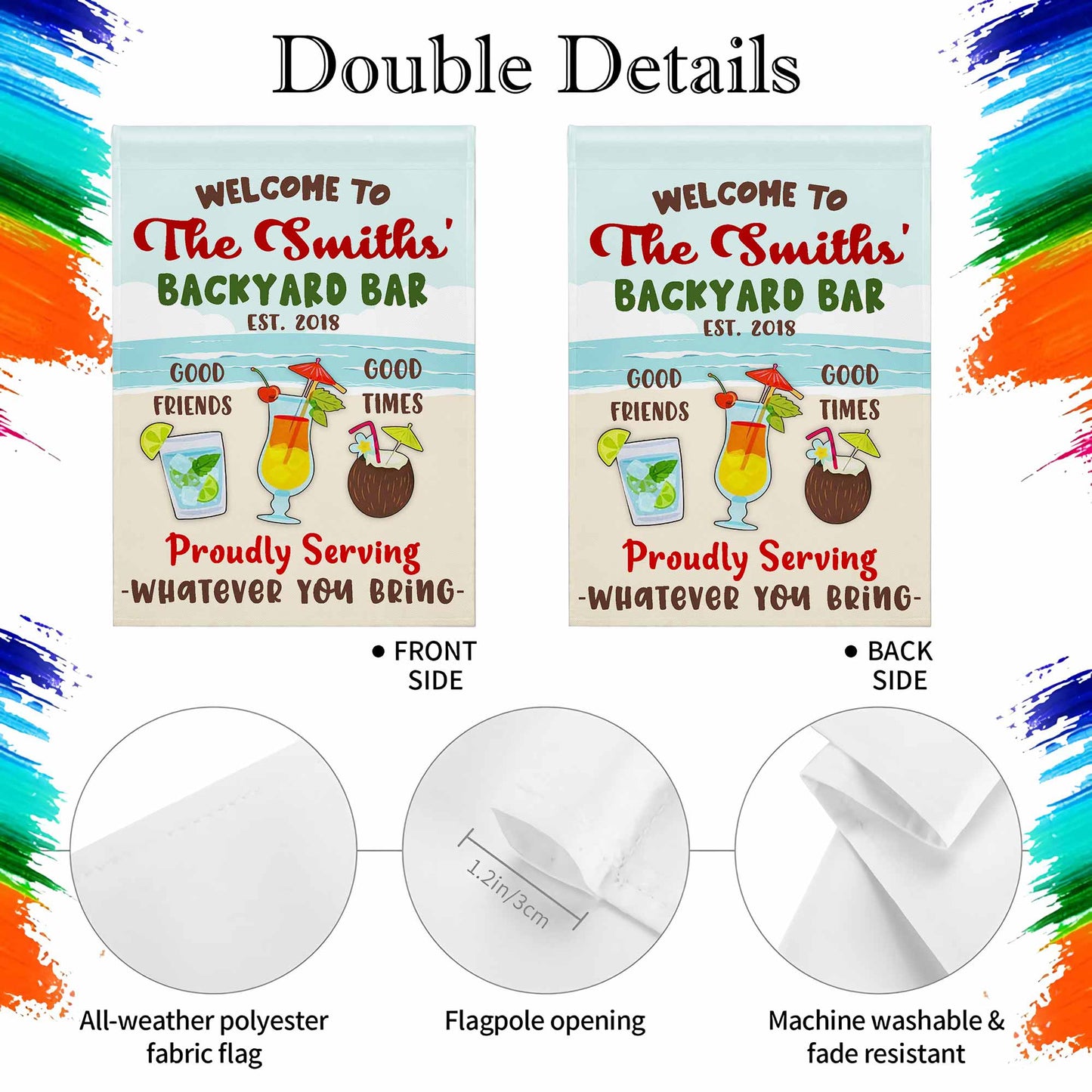 Welcome To The Backyard Bar, Personalized Flag, Gift For Homeowners and Hosts