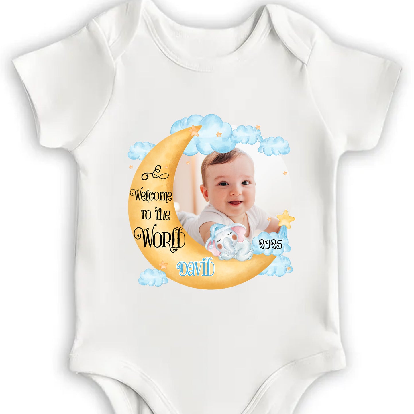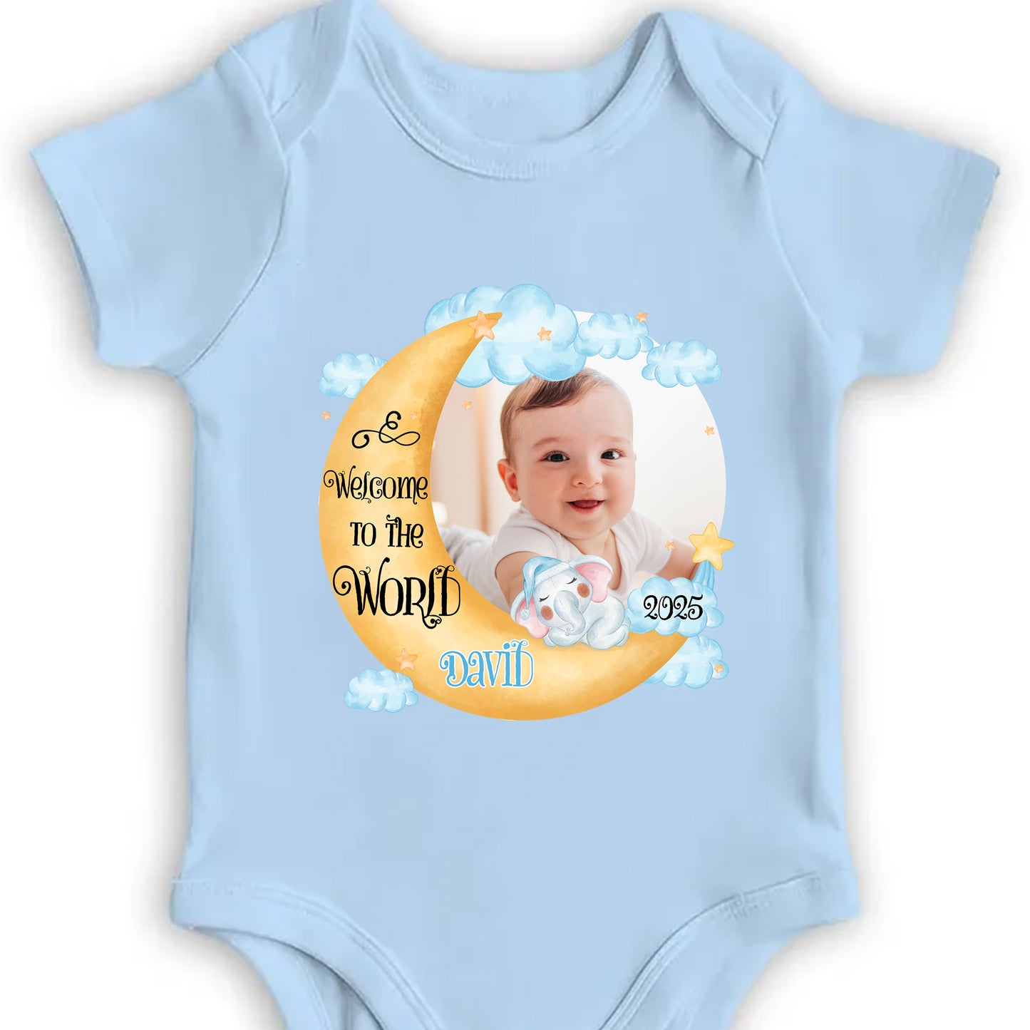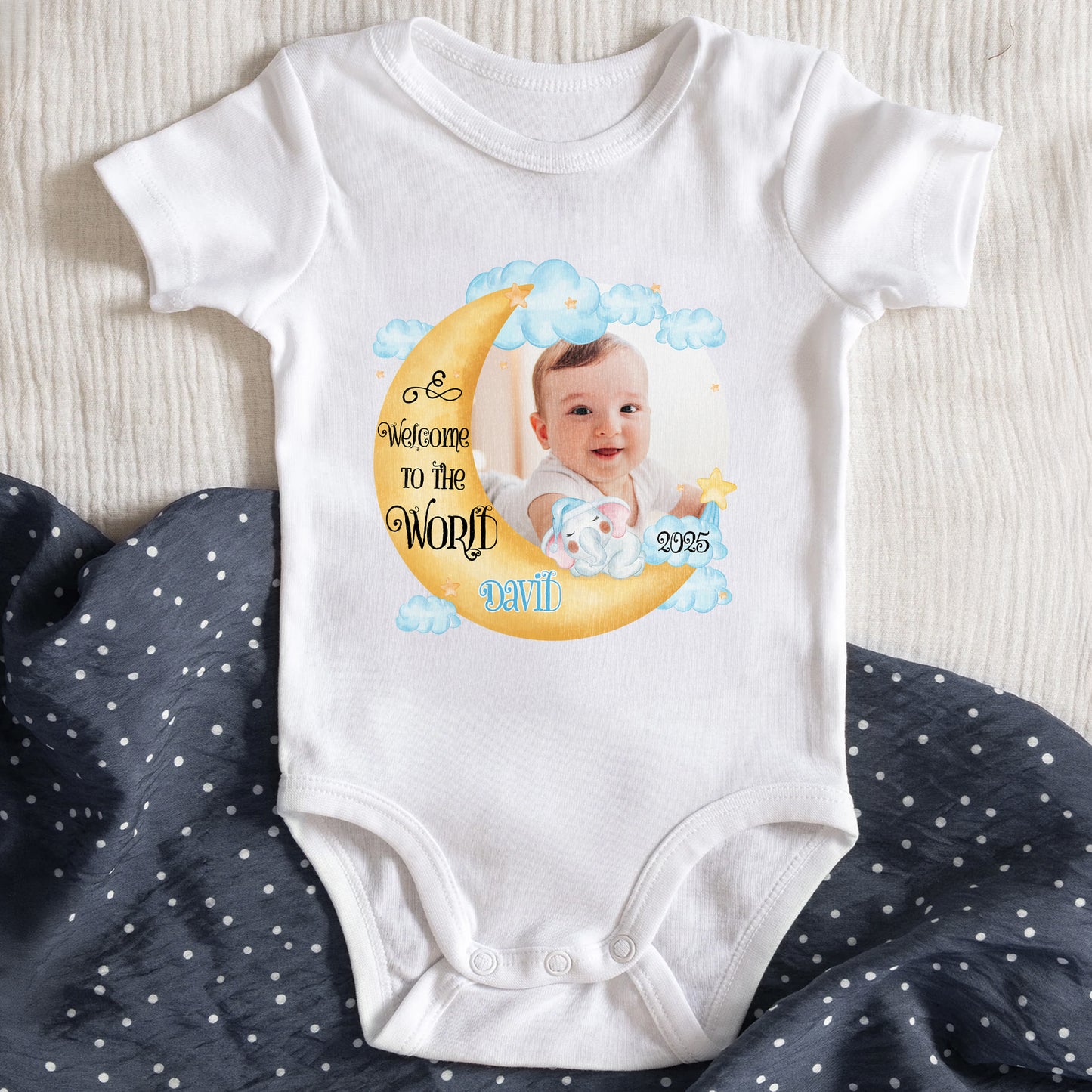 Welcome To The World, Moon Clouds And Stars, Personalized Custom Baby Onesie, Gift For Newborns