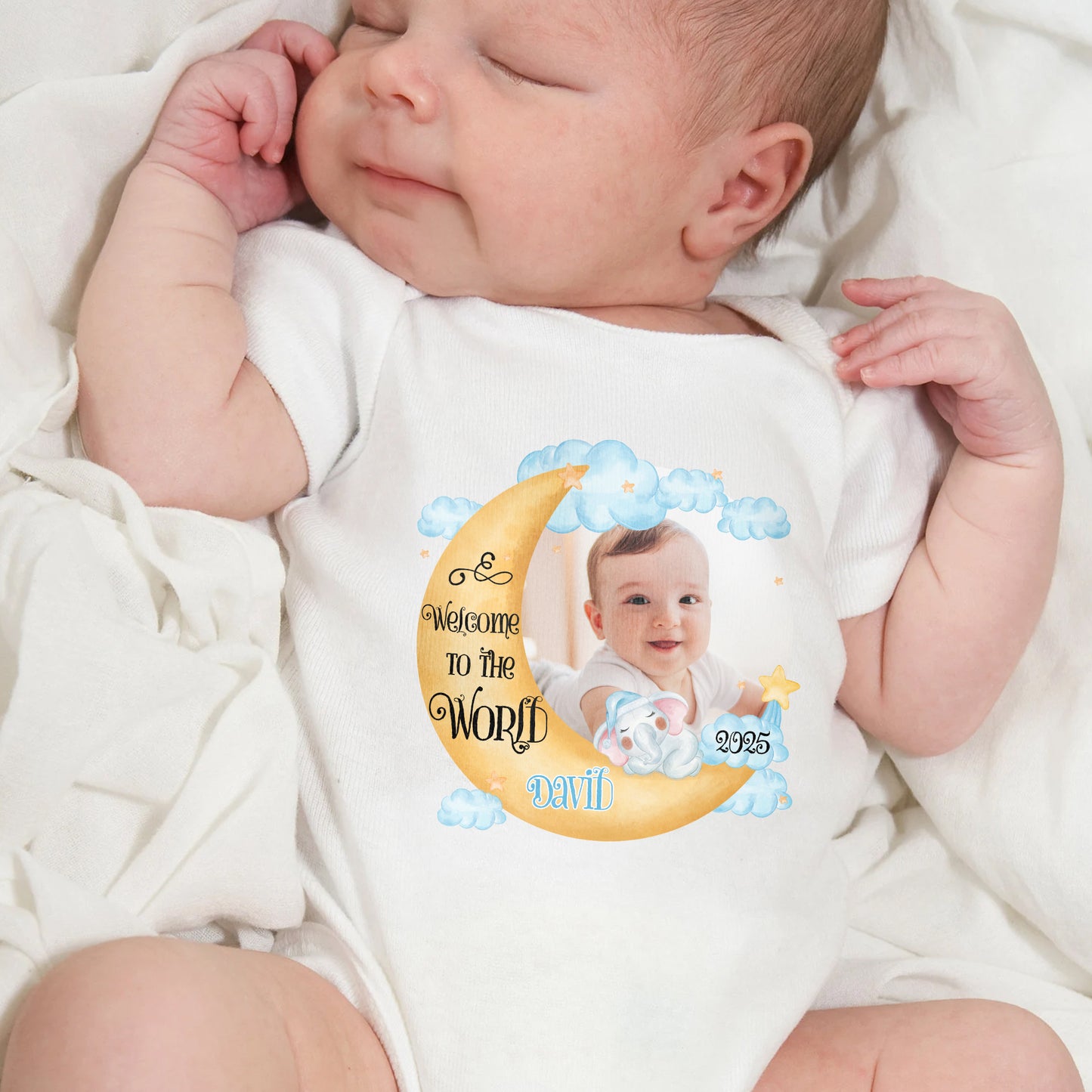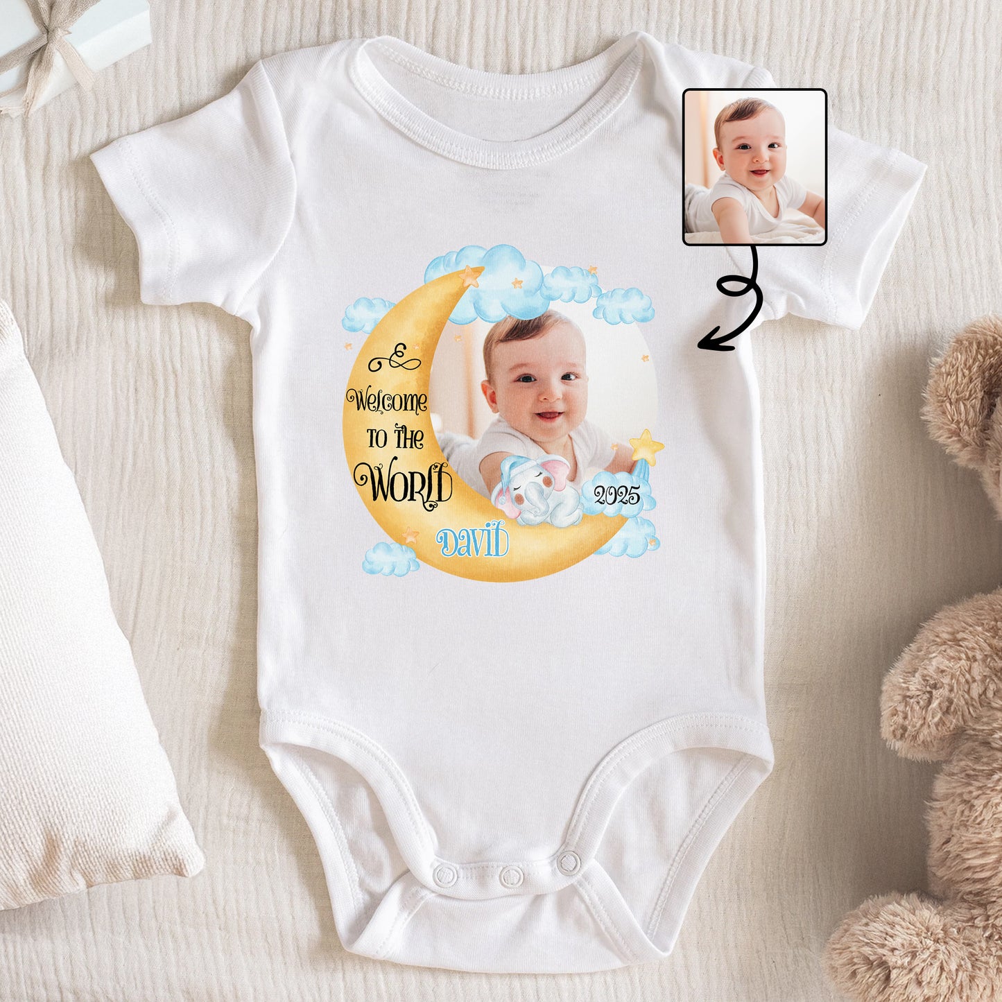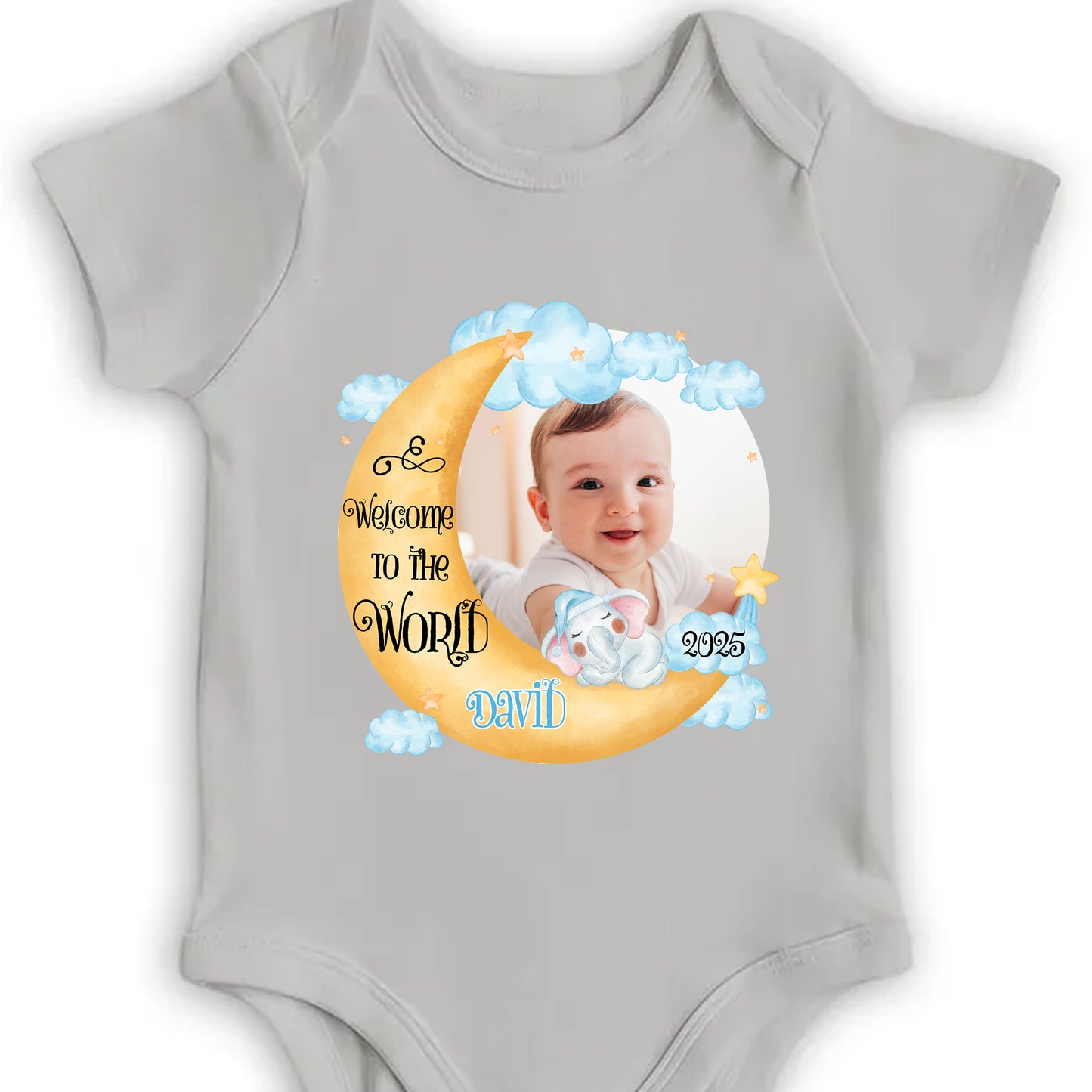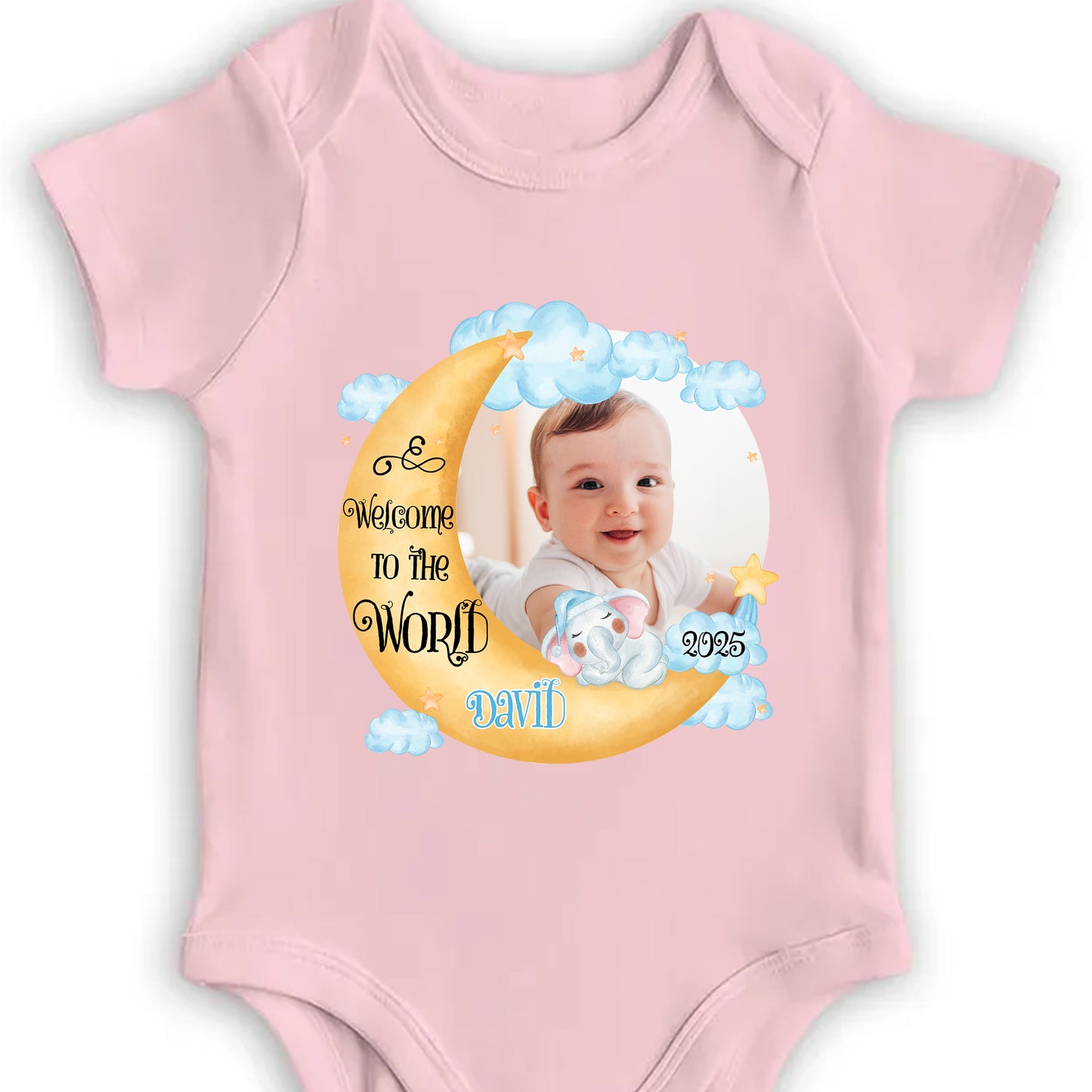 Welcome To The World, Moon Clouds And Stars, Personalized Custom Baby Onesie, Gift For Newborns