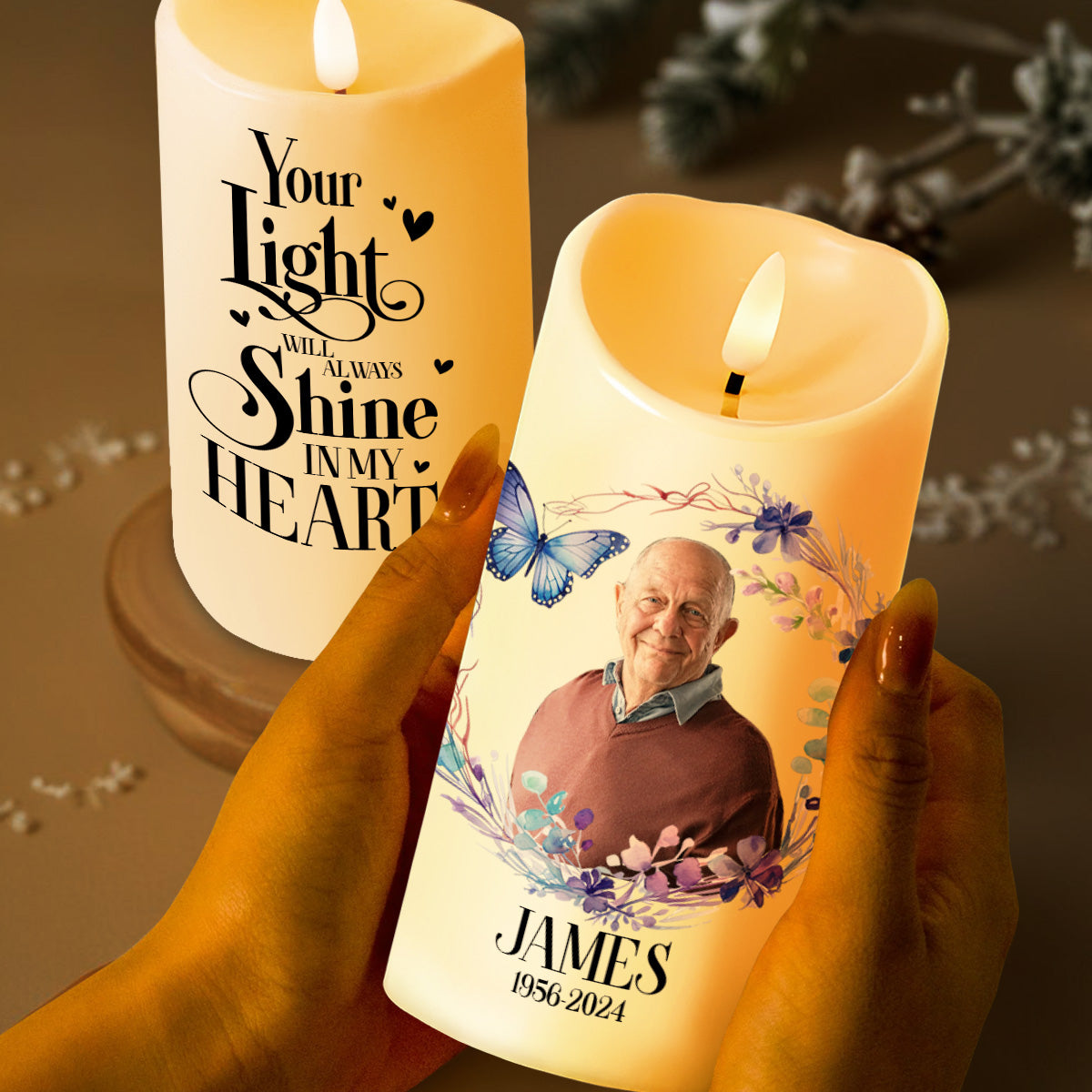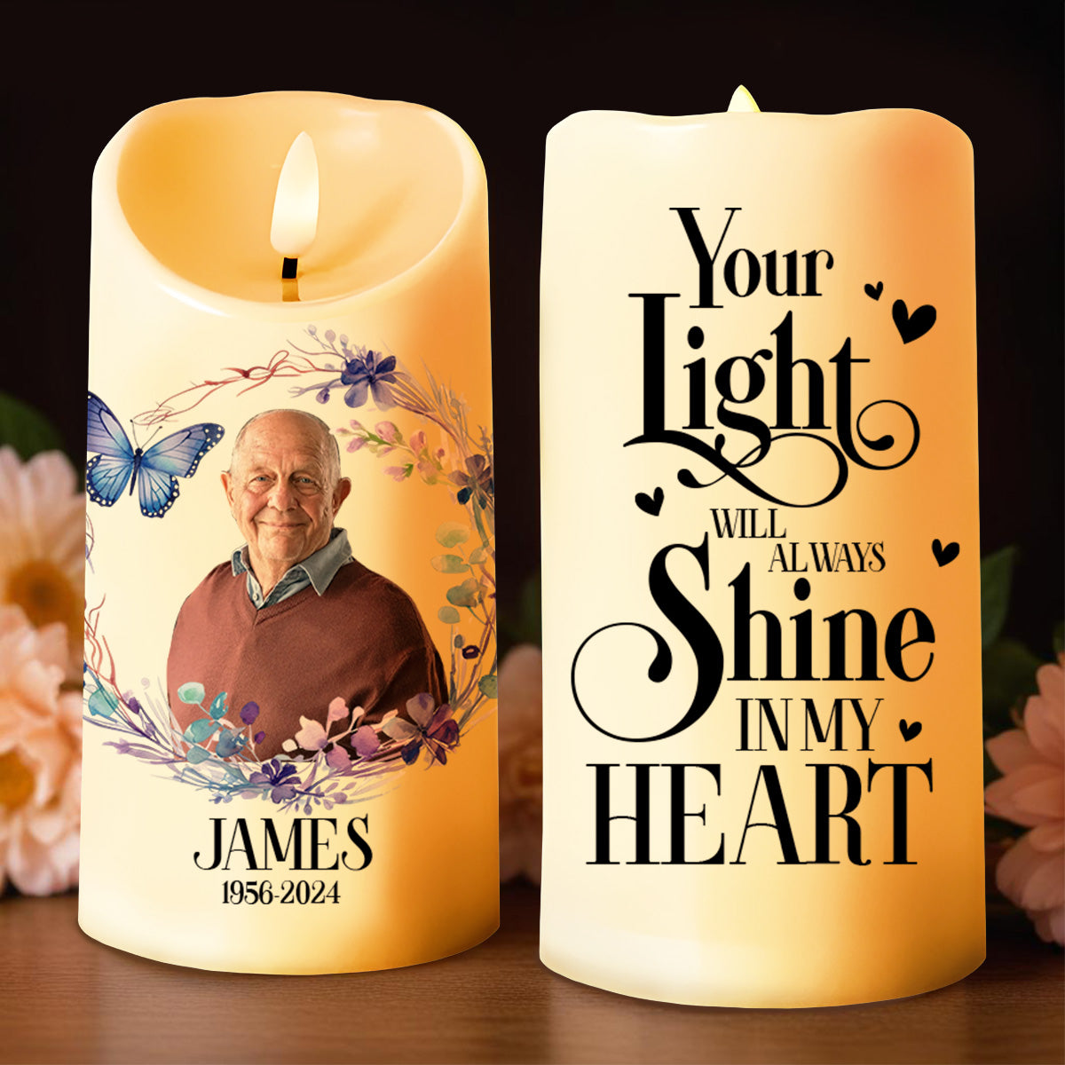 Your Light Will Always Shine - Personalized Custom LED Candle - Gift For Family And Memorial